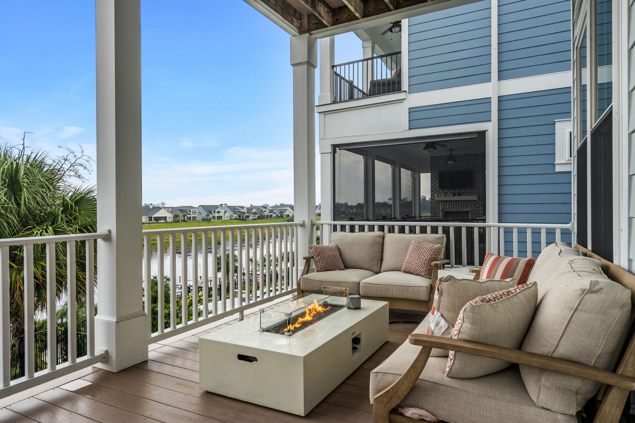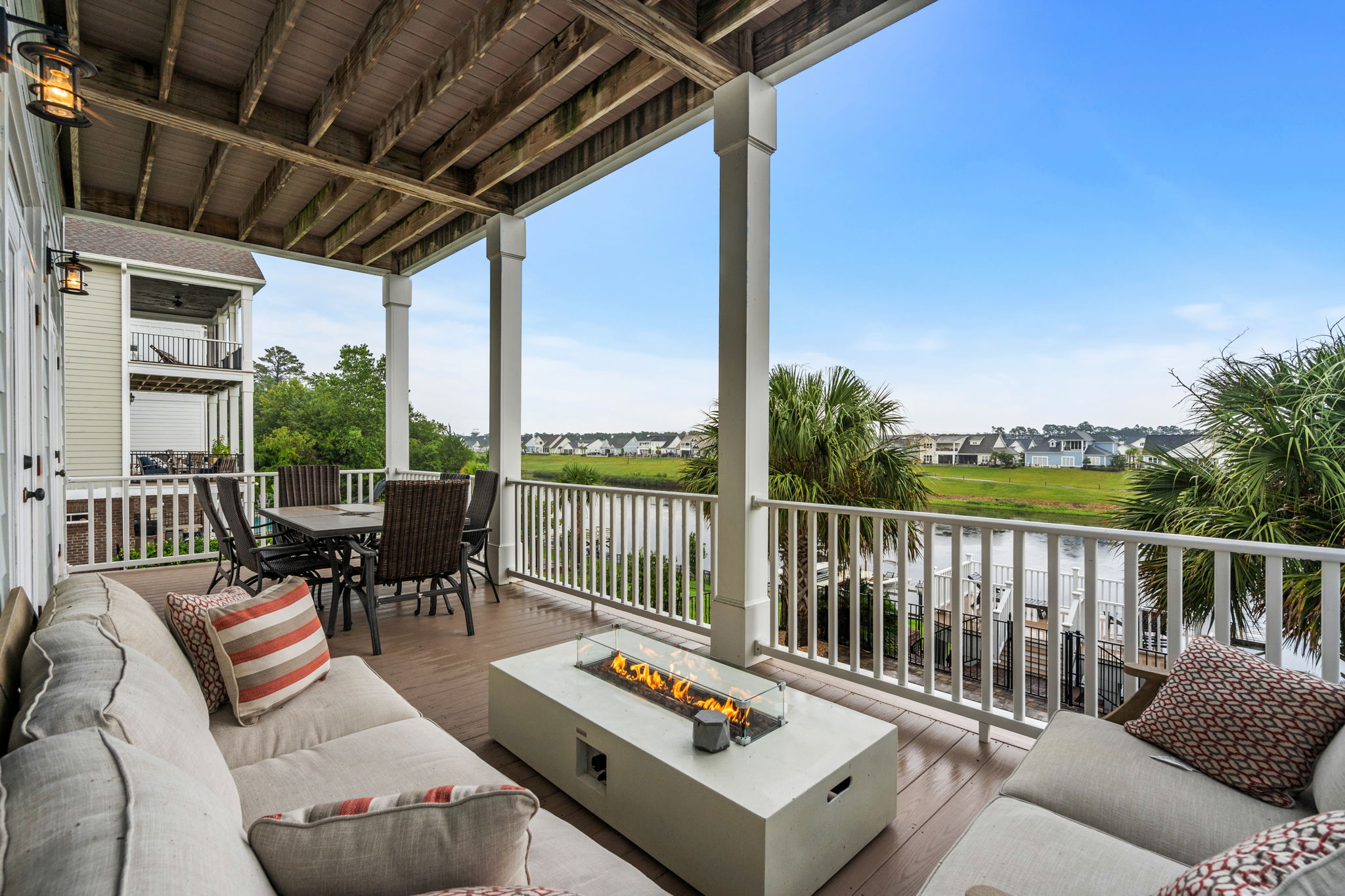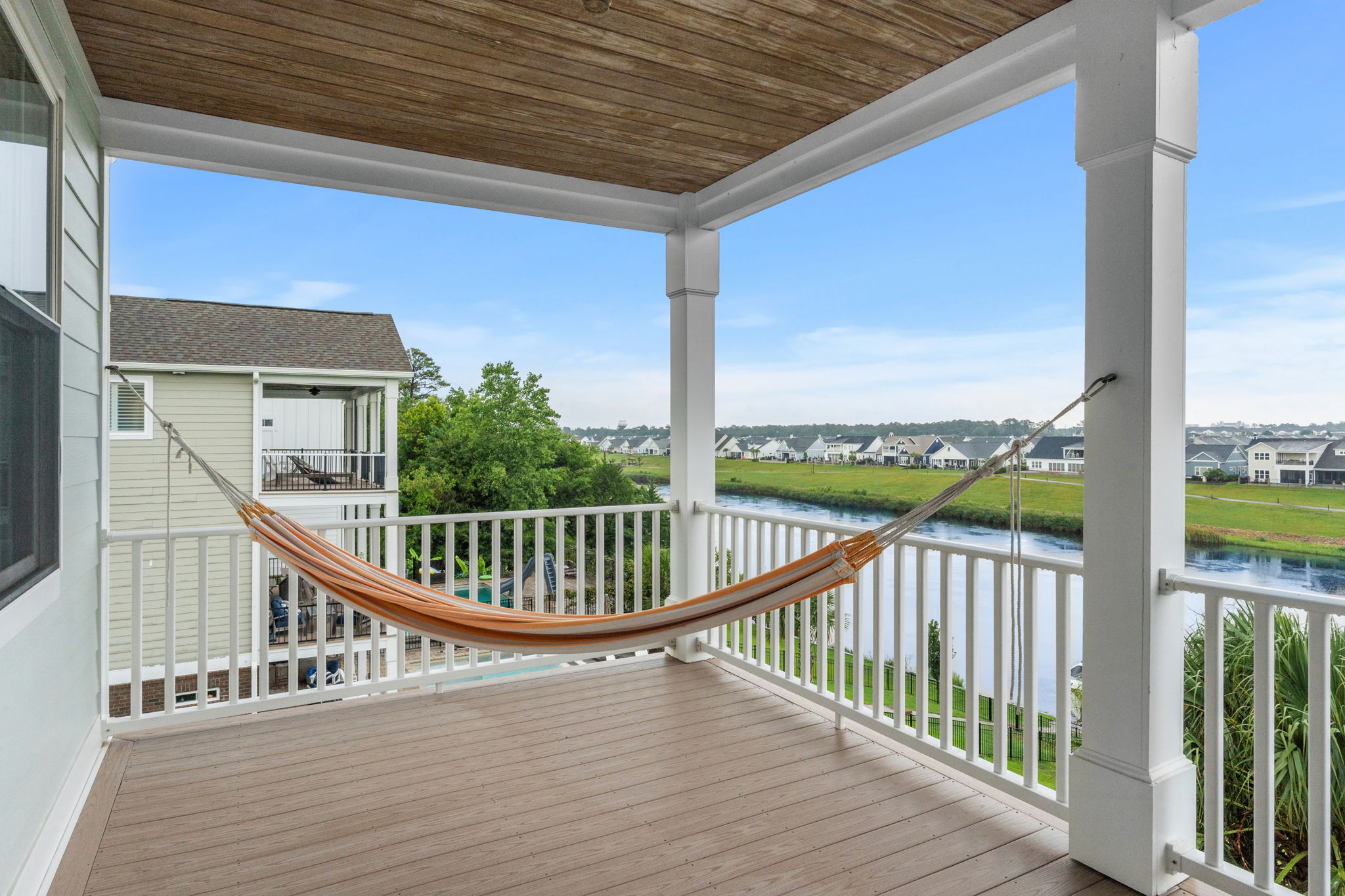 Private covered porch overlooking the Waterway
