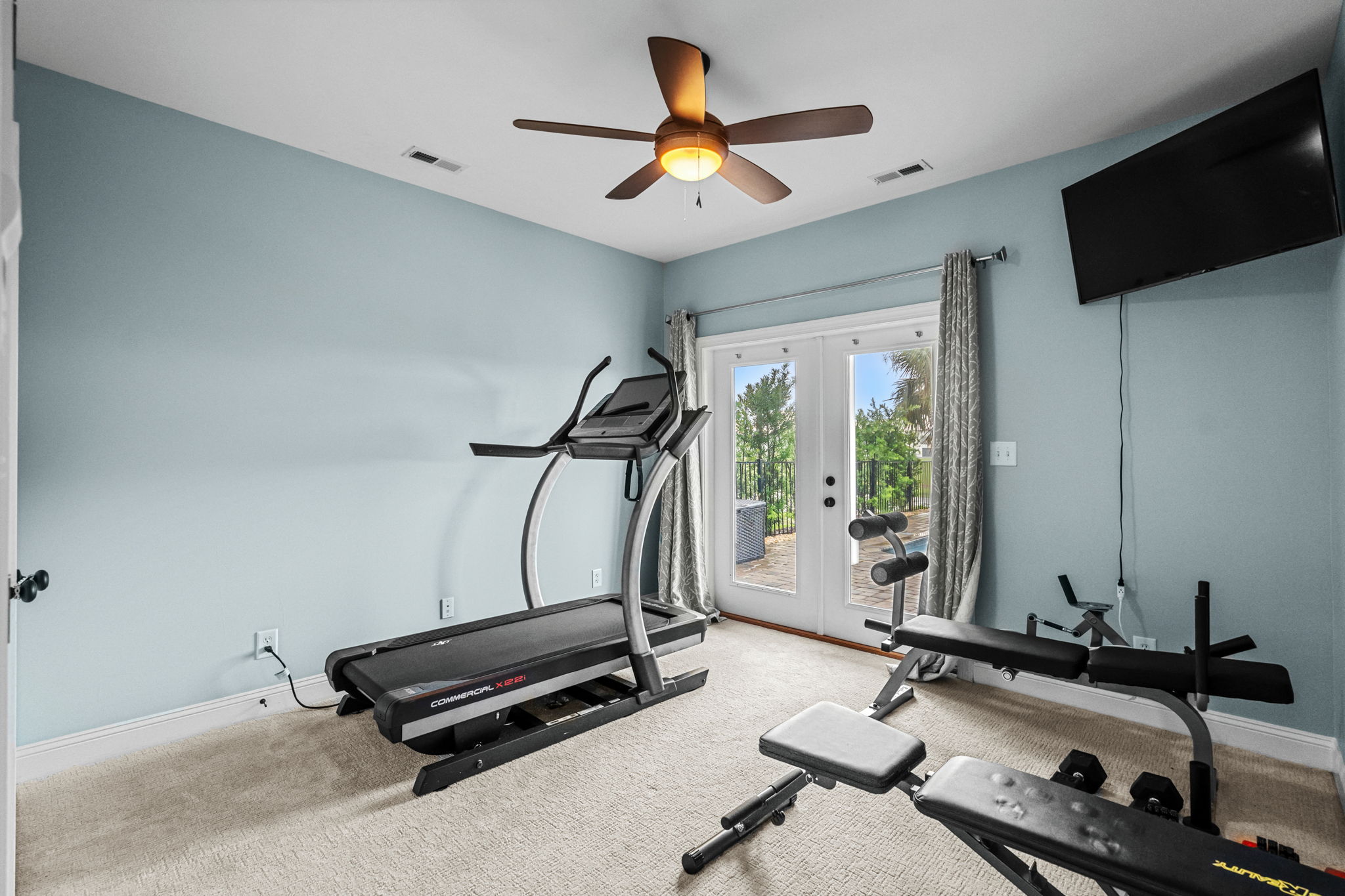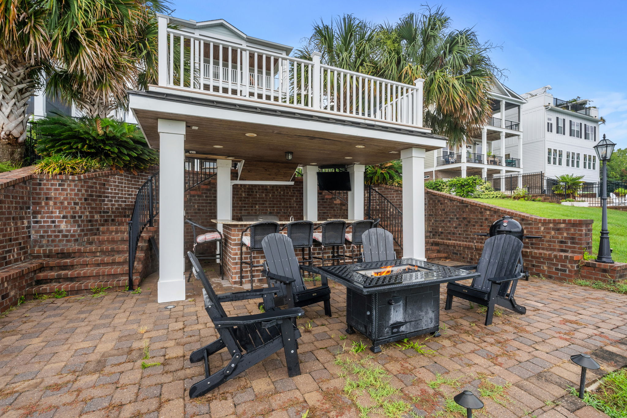 This level functions like its own entertainment zone, with easy flow straight out to the pool and patio.