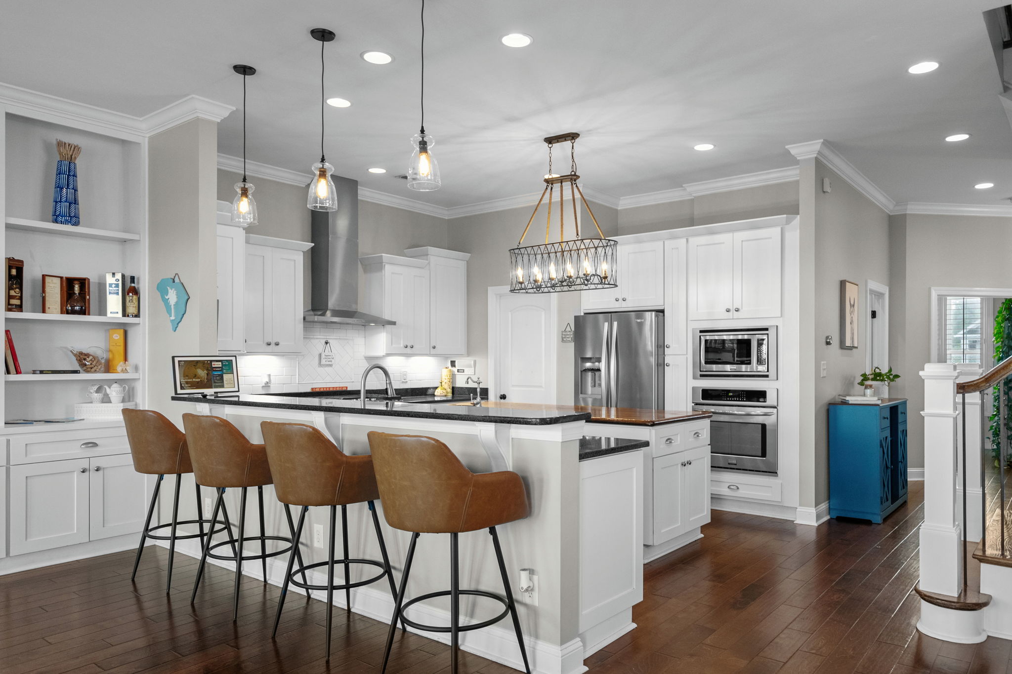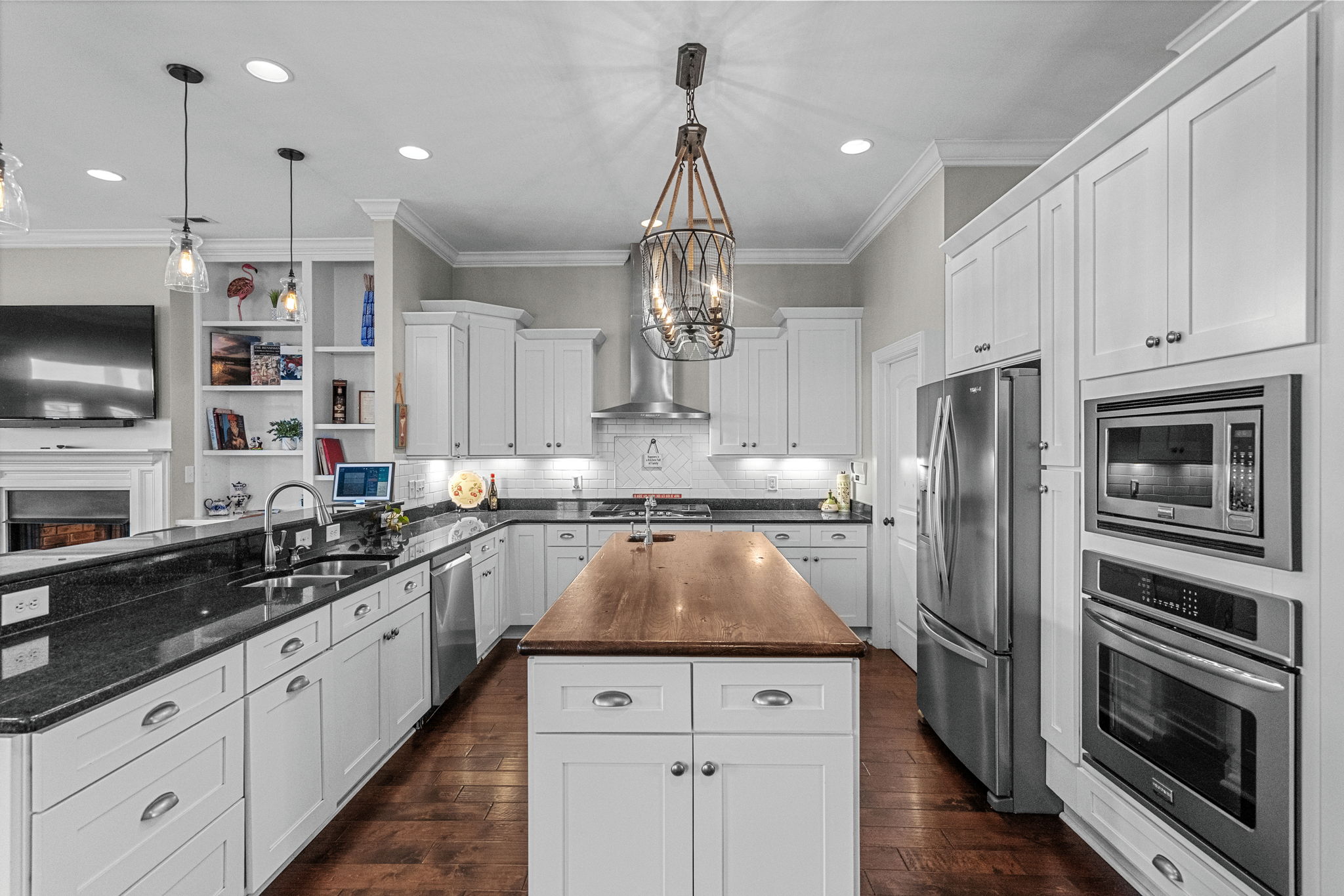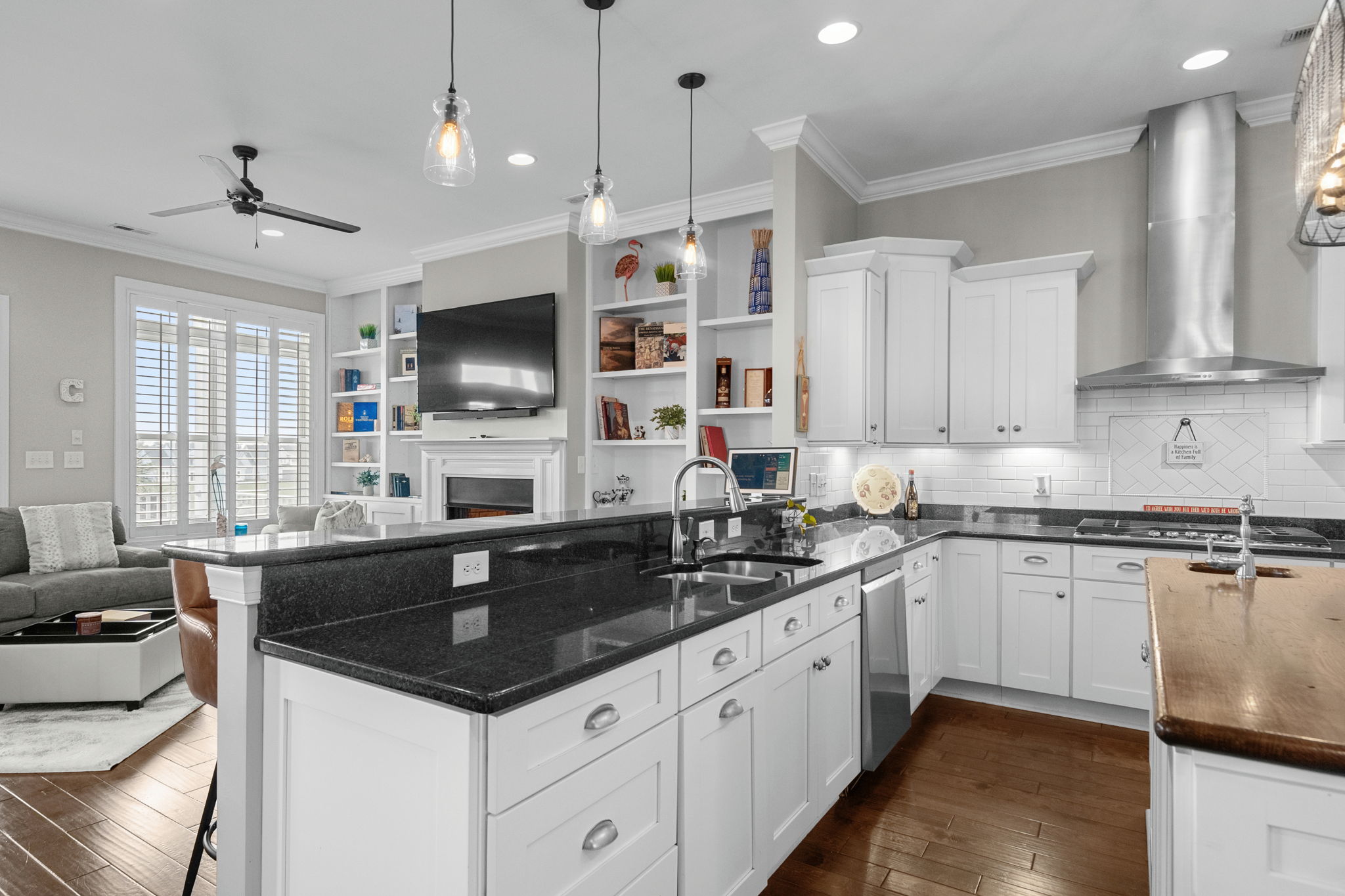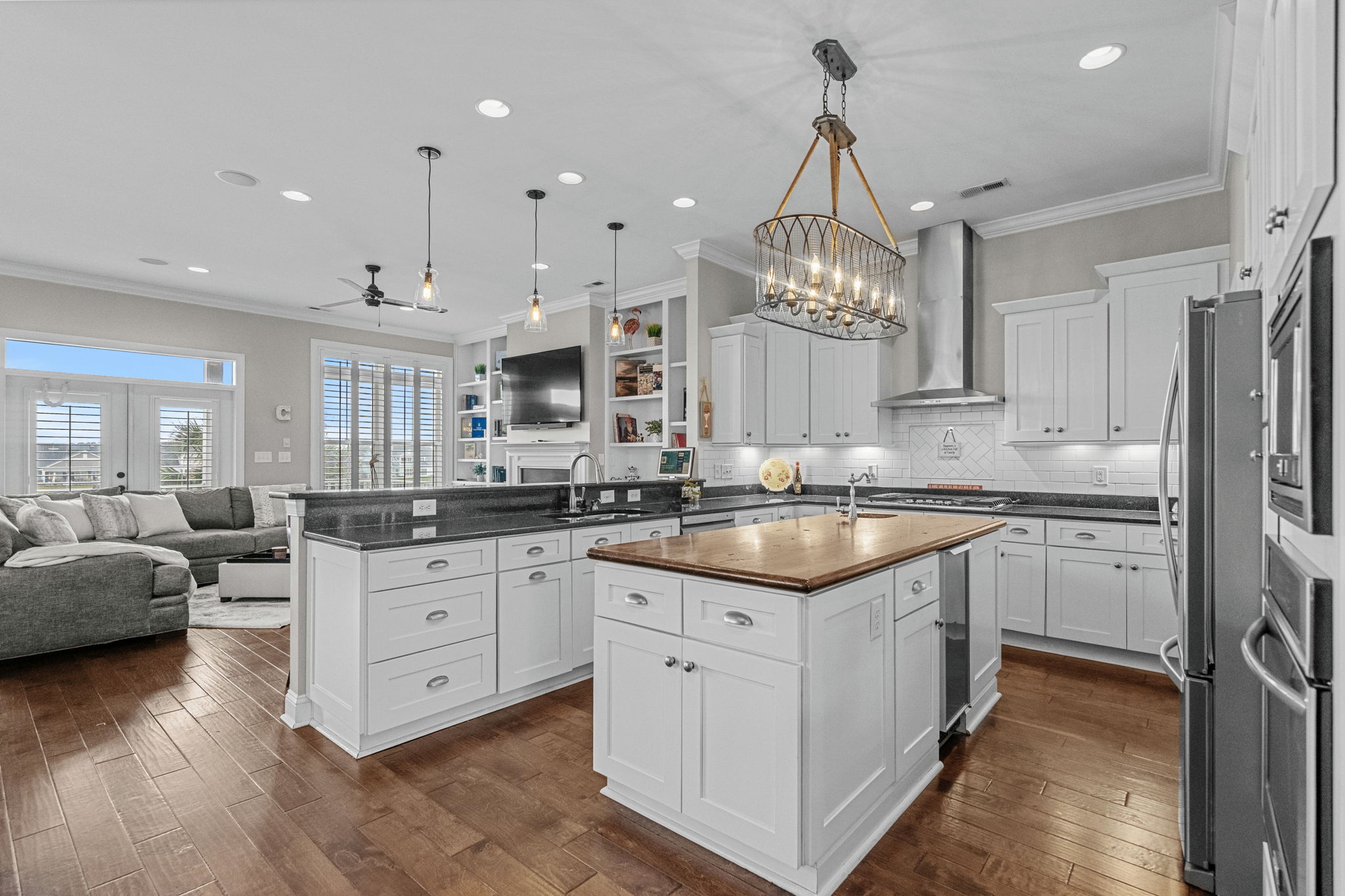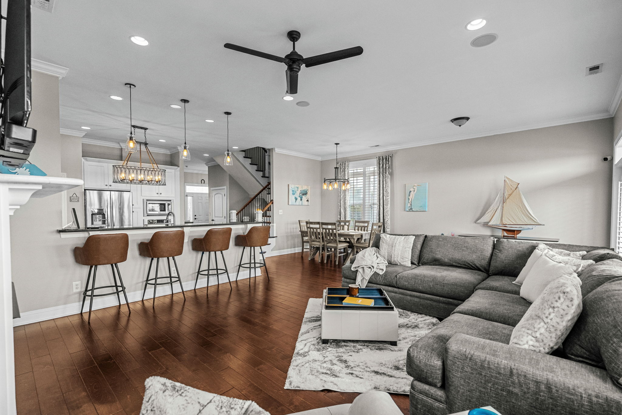 The kitchen, dining, and living room flow together seamlessly, creating the kind of gathering space that makes holidays, game days, and casual family dinners easy and enjoyable.