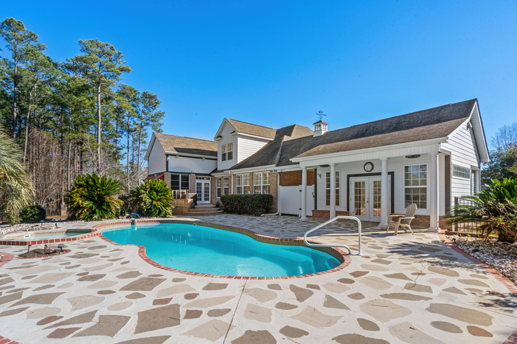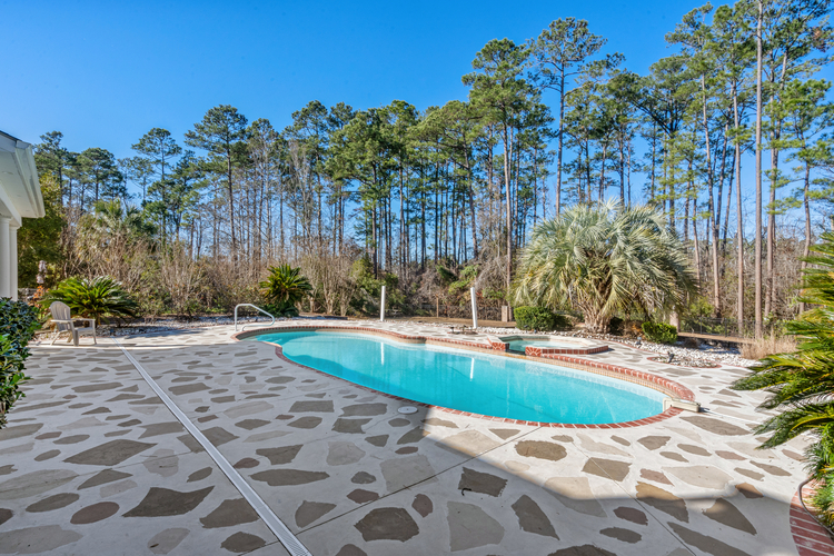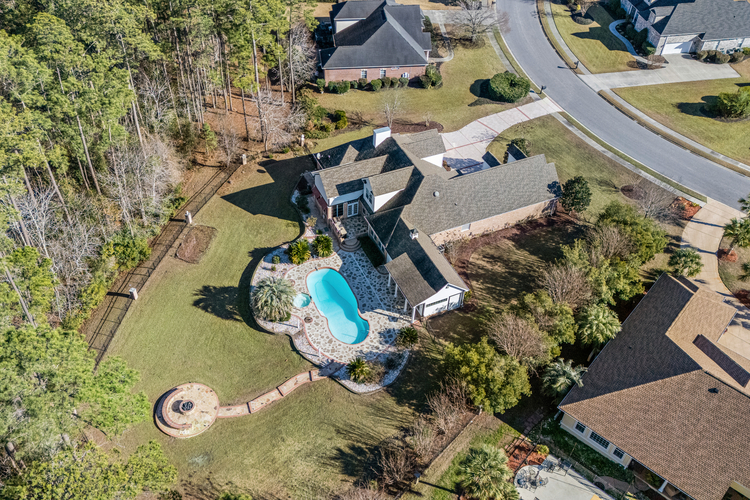 Indulge in seamless indoor-outdoor living through the Carolina Room, which connects to an outdoor paradise. Relax by the sparkling pool and spa, host friends at the summer kitchen, or unwind by the gas firepit overlooking a serene, protected nature preserve. For ultimate entertainment, the air-conditioned pool house features a bar, powder room, and a golf cart garage.