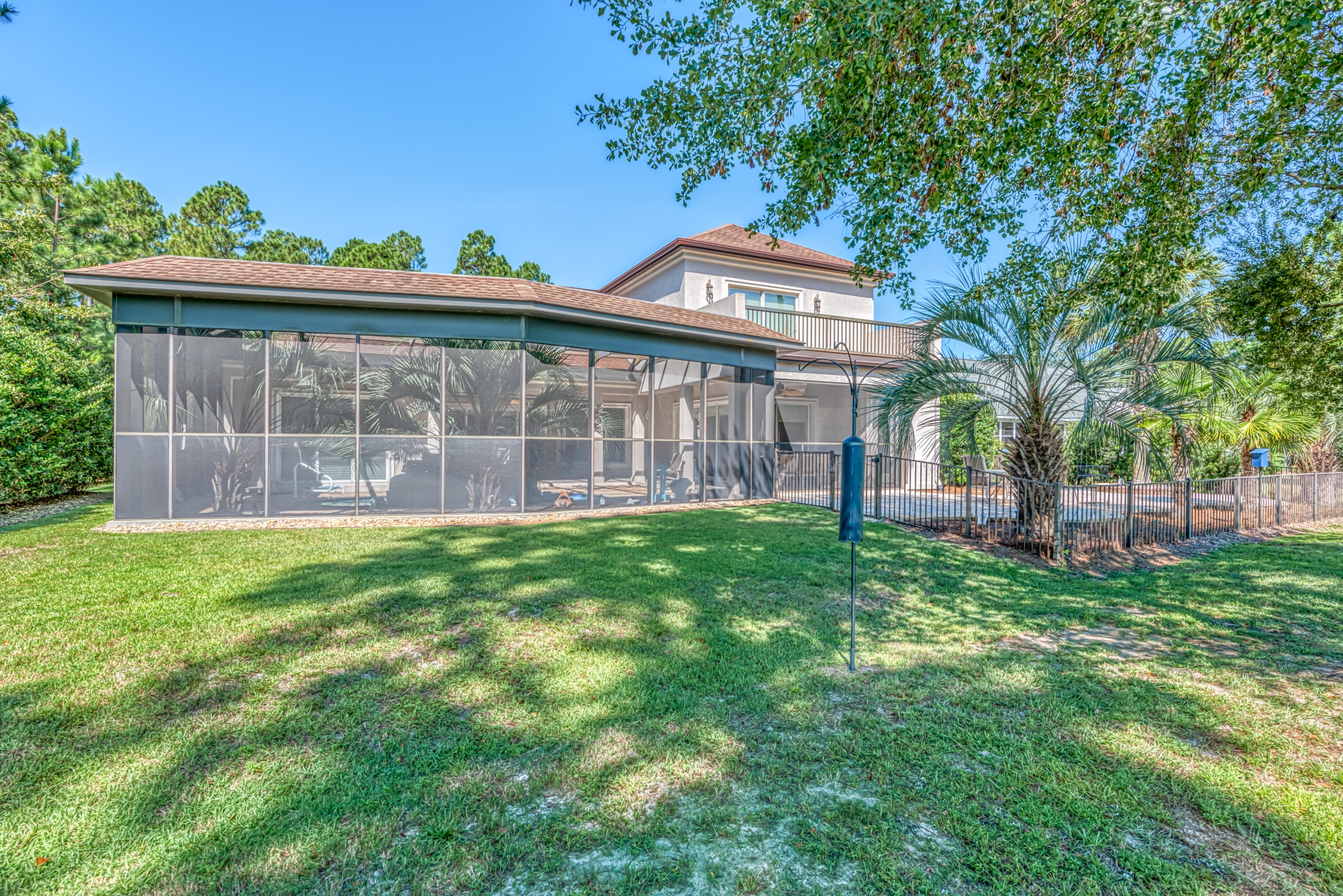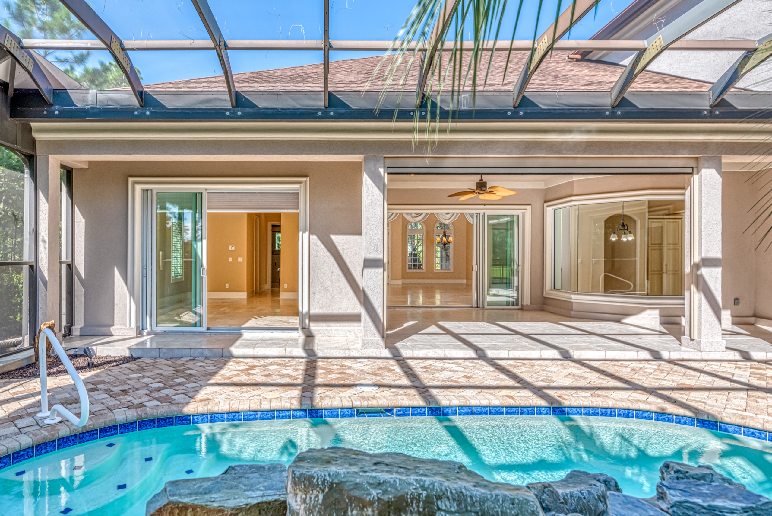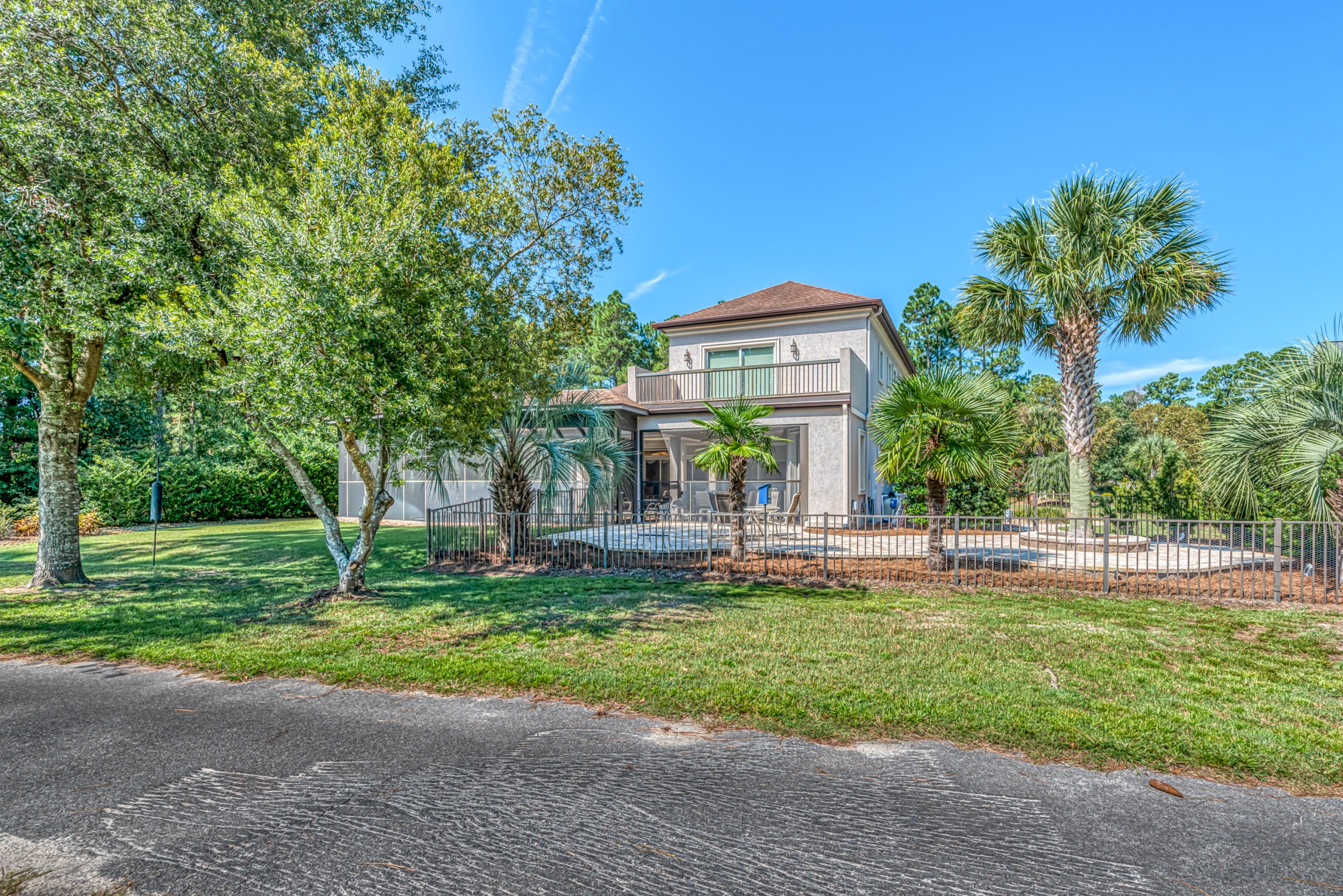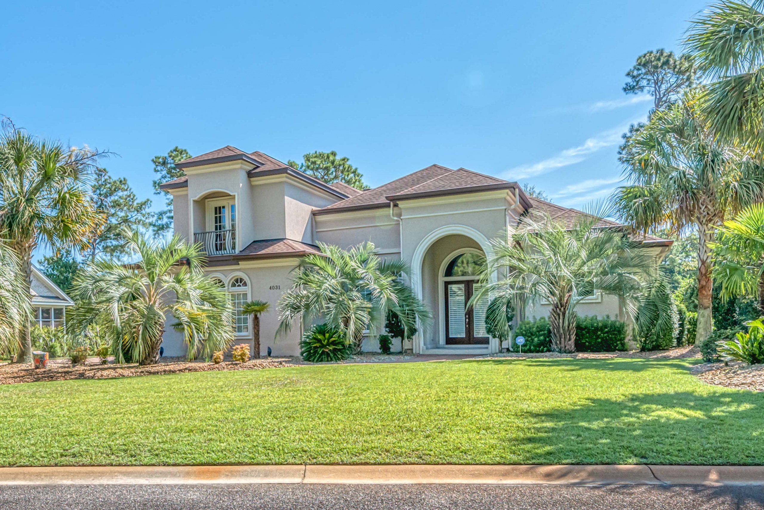 A first-floor owner's suite has large sliding doors opening into the lanai and pool area. The owner's suite bathroom gives each person their own space with "his and her" water closets, vanities, and closets. Rounding out the main level is a butler pantry, half bathroom, and large laundry room. Upstairs features two guest bedrooms with en-suite bathrooms and two flex rooms. The backside bedroom has a private balcony with a dynamic golf course view. These flex rooms have endless possibilities. They could be used as bedrooms, offices, media rooms, or workout rooms. Additional highlights in this magnificent home are Rinnai tankless water heater, central vacuum, travertine flooring, gutter helmets, and much more.