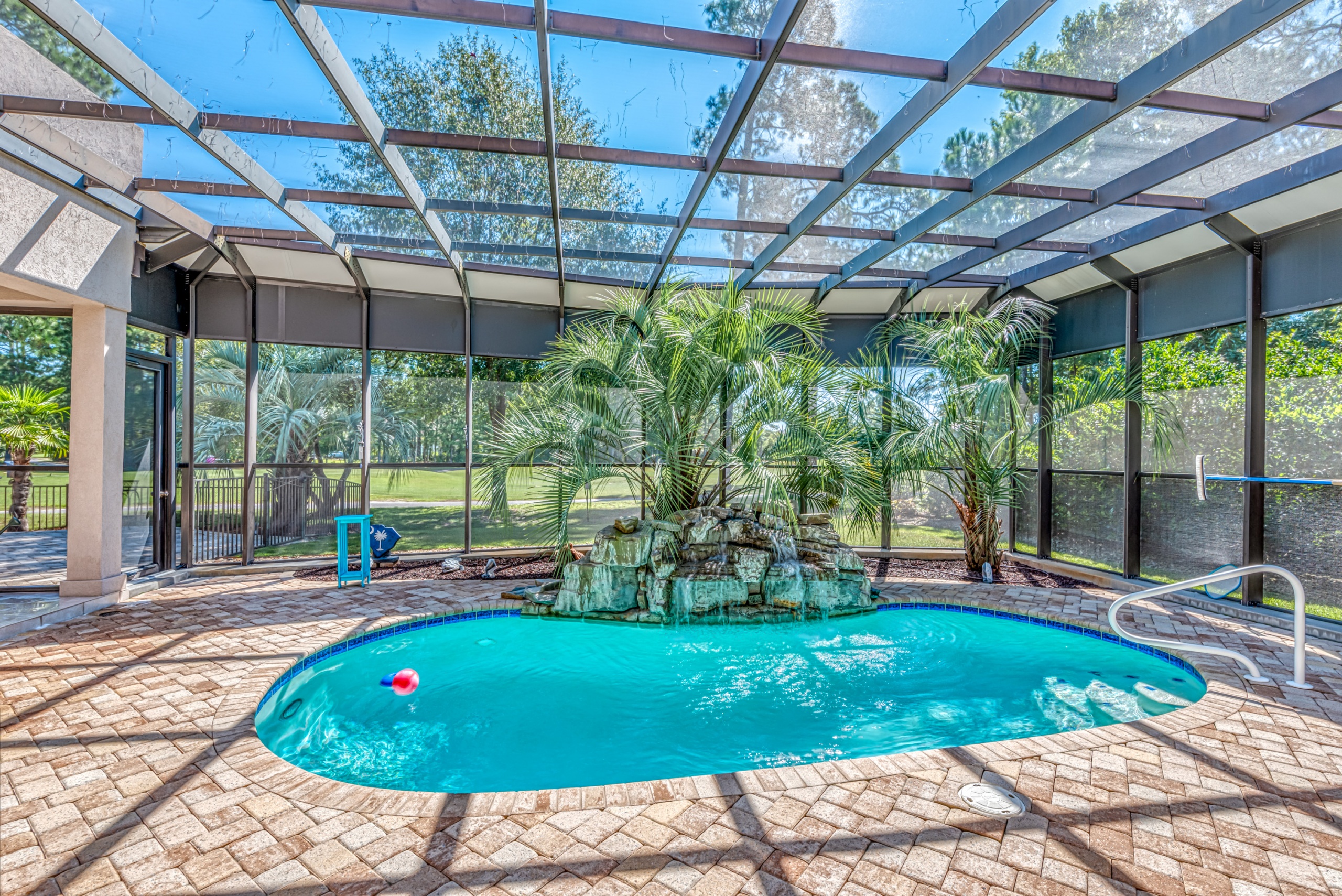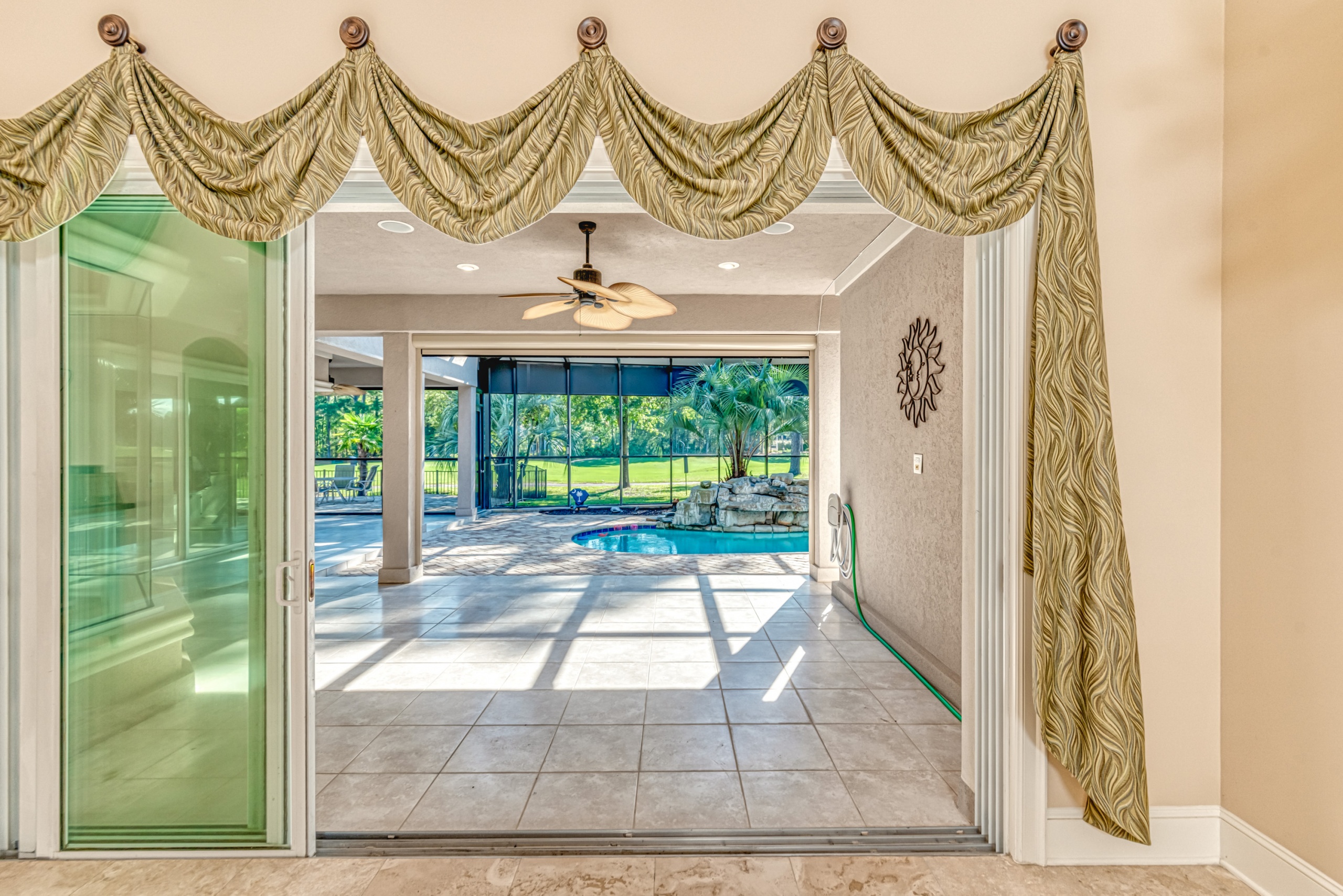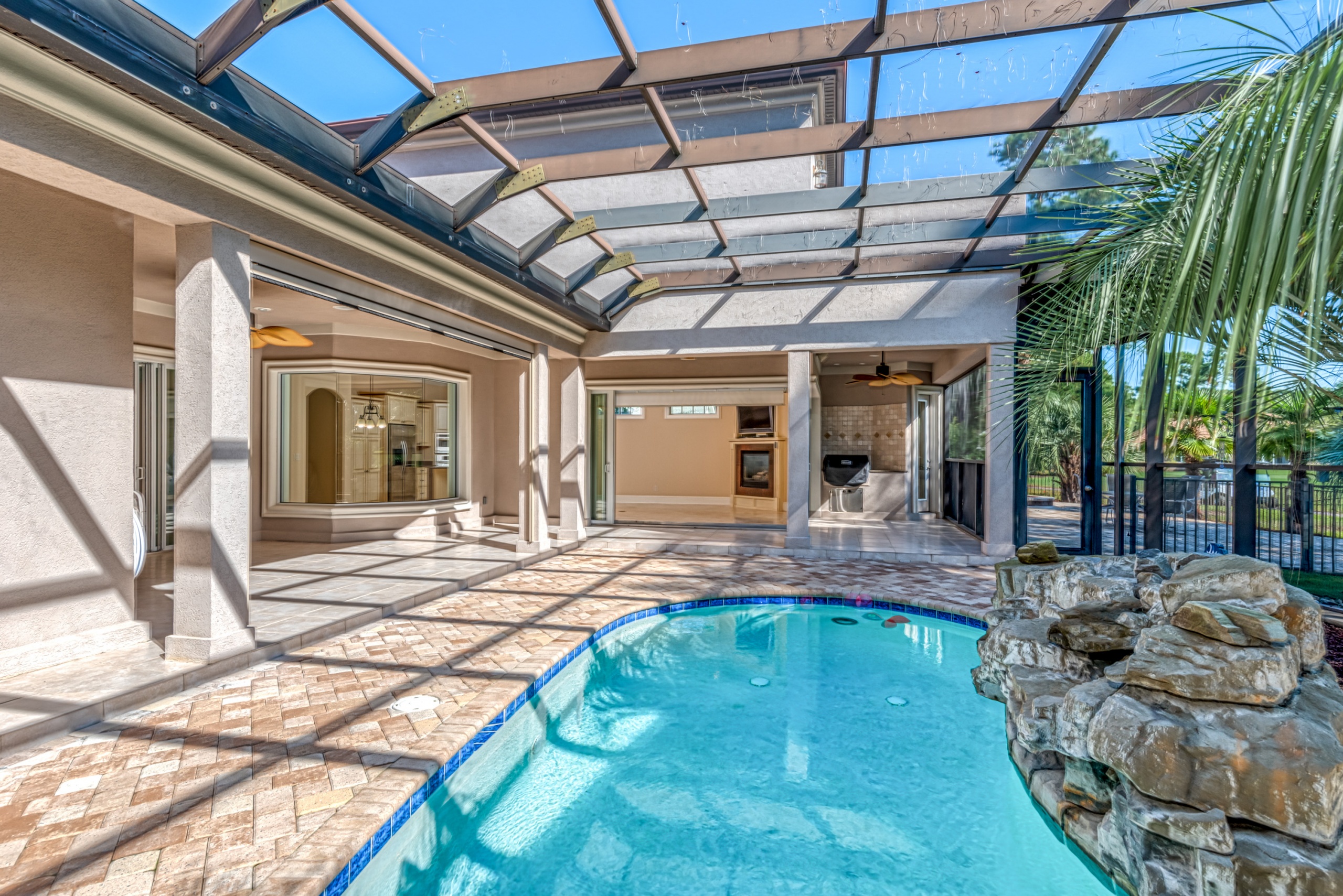 Start living life like you vacation at 4031 Girvan Drive in Myrtle Beach, SC. This former award-winning model home has all of the exclusive features you would expect. Constructed with ICF (Insulated Concrete Form) exterior walls, this home is a structural fortress. Through the front door, you can not help but notice the wall of glass. The entire backside of the house is made up of large windows and eight-foot arcadian-style sliding doors. An expansive covered patio and screened lanai featuring a pool w/ waterfall, summer kitchen, living area, and dining area will instantly become your favorite place to hang out. A spacious kitchen and family room have walls made of sliding glass doors that disappear inside the wall and "bring the outside in."