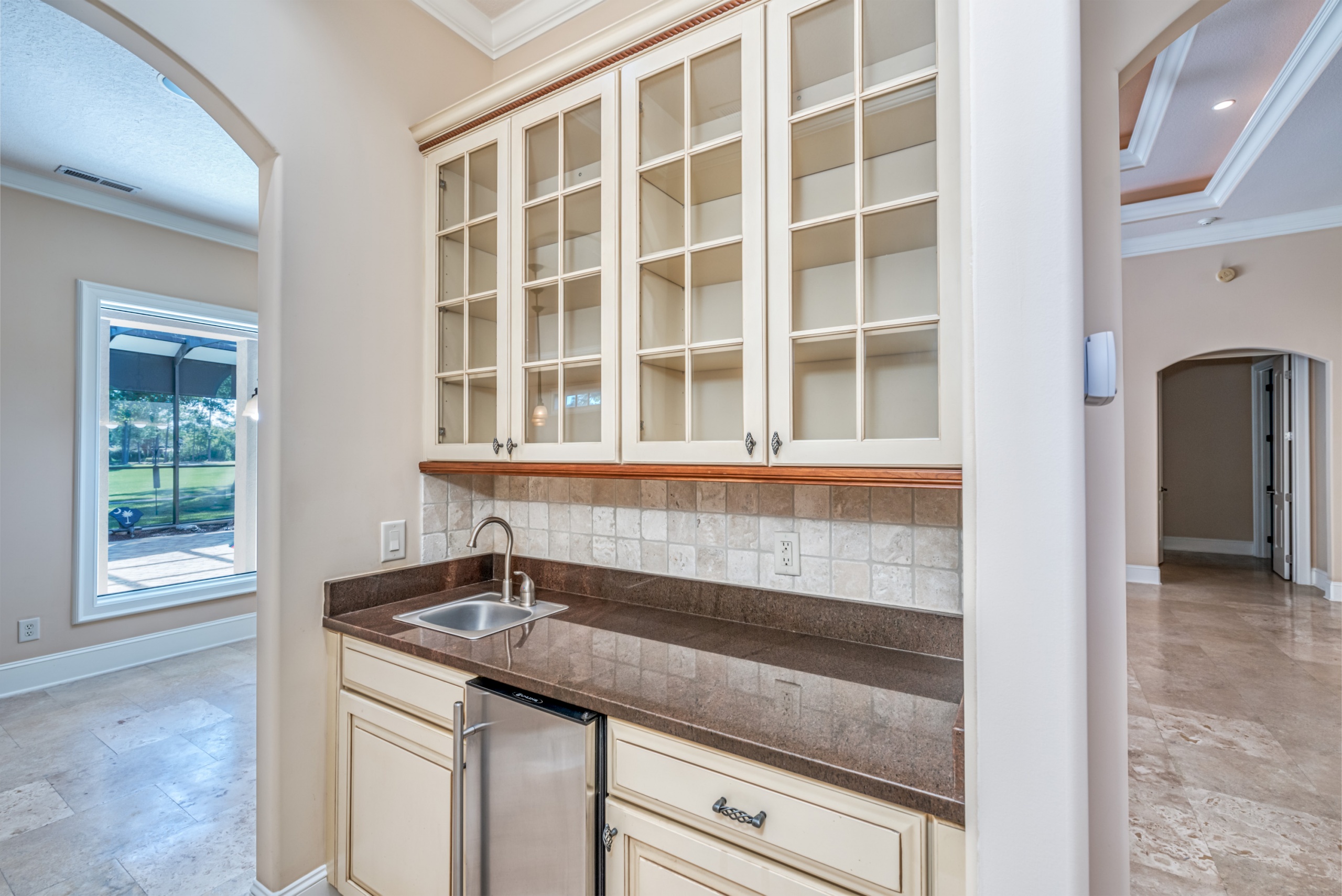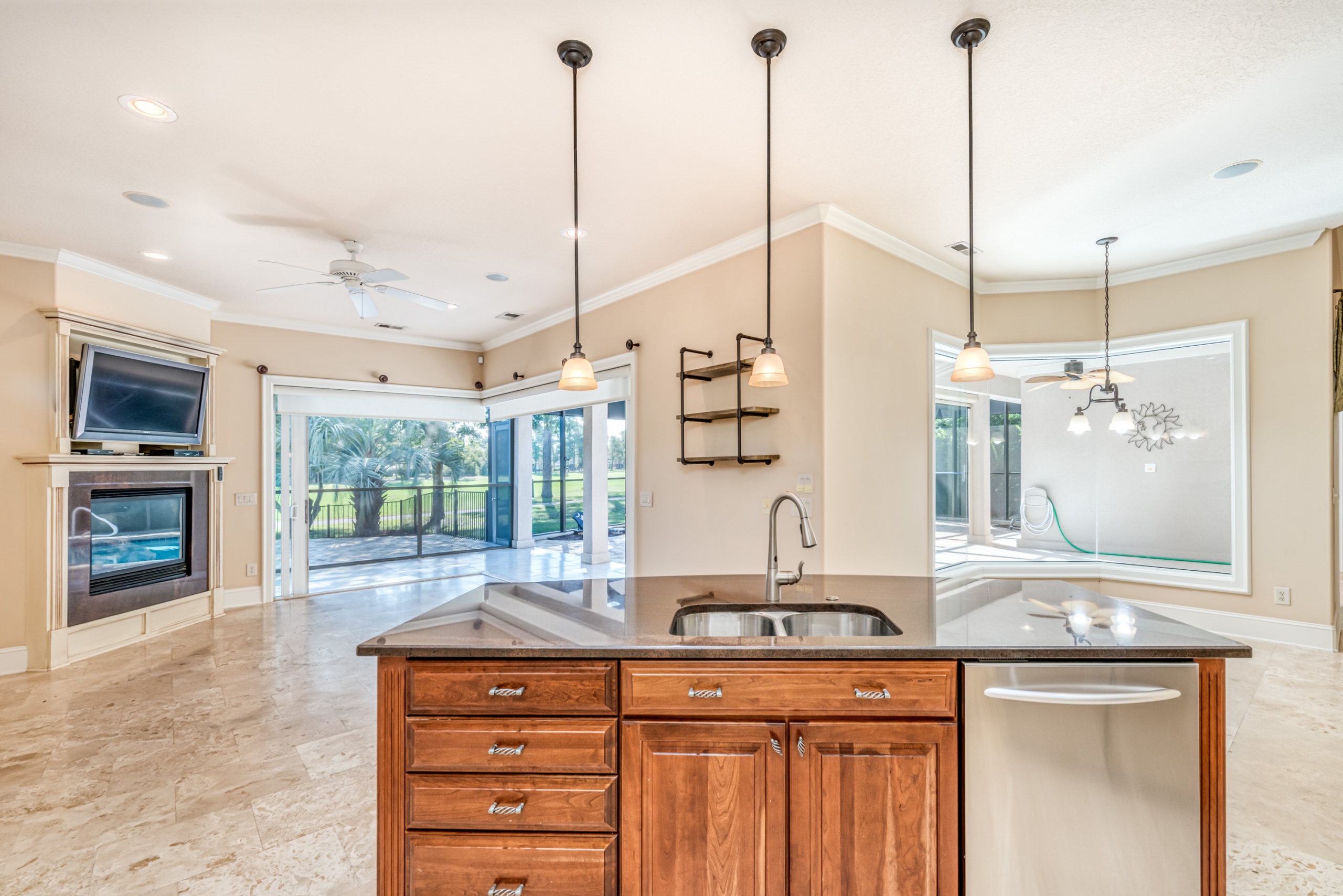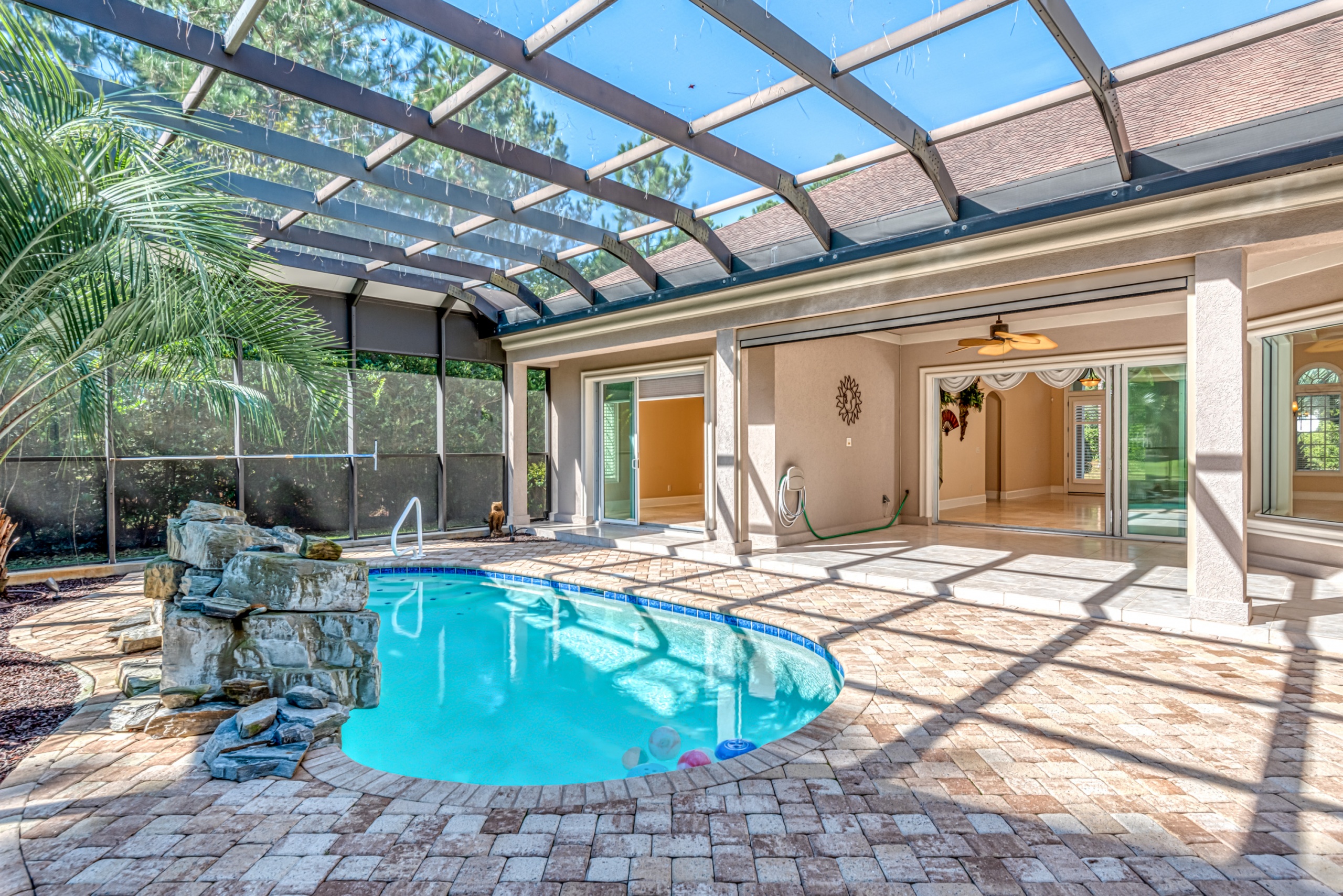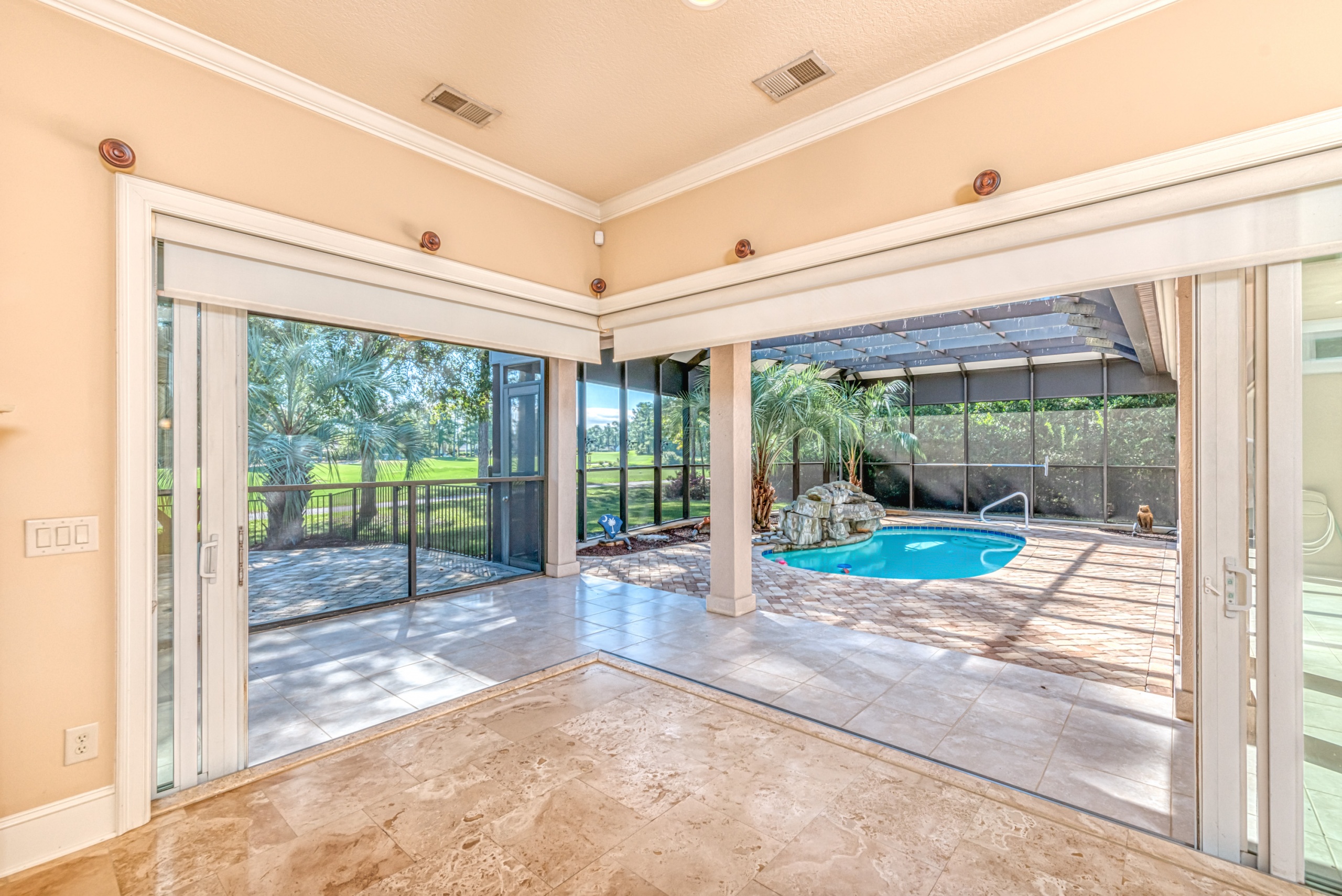 Start living life like you vacation at 4031 Girvan Drive in Myrtle Beach, SC. This former award-winning model home has all of the exclusive features you would expect. Constructed with ICF (Insulated Concrete Form) exterior walls, this home is a structural fortress. Through the front door, you can not help but notice the wall of glass. The entire backside of the house is made up of large windows and eight-foot arcadian-style sliding doors. An expansive covered patio and screened lanai featuring a pool w/ waterfall, summer kitchen, living area, and dining area will instantly become your favorite place to hang out. A spacious kitchen and family room have walls made of sliding glass doors that disappear inside the wall and "bring the outside in."
