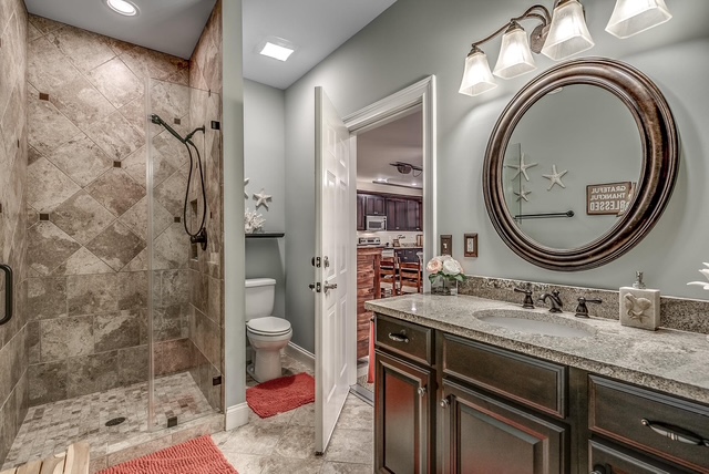 The detached structure brings tremendous value. Built in 2013, it features two garage doors, a summer kitchen, a full bath, and walk-up storage. The upstairs sleeping quarters create the perfect private guest suite. The current owners use an additional room for a golf simulator setup, and the equipment can be purchased separately if desired. Whether you need a guesthouse, hobby space, workshop, or extra garage, this building can handle it.
