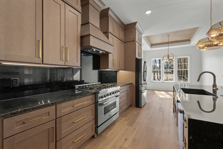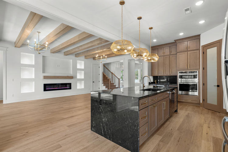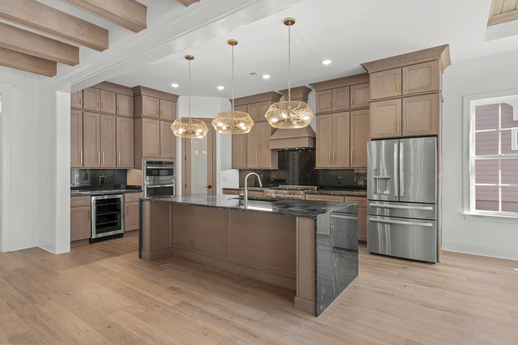 From the moment you step through the grand foyer, the home’s soaring ceilings and open floor plan create a warm and inviting atmosphere. The gourmet kitchen is a chef’s dream, featuring quartz countertops, high-end appliances, a spacious island, and a walk-in pantry. This space is perfect for preparing meals and hosting gatherings. Overlooking the kitchen, the great room offers a cozy yet sophisticated space to relax with family and friends.
