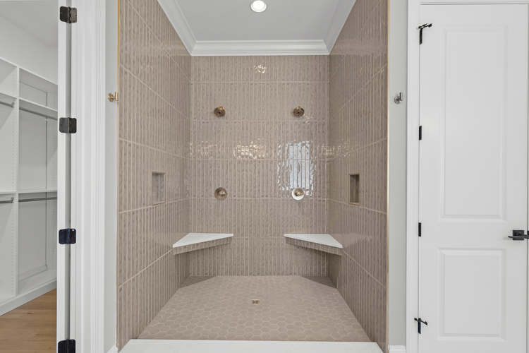 The first-floor master suite serves as a private retreat, complete with a spa-like en suite bathroom featuring a custom tile shower, dual vanities, and a generous walk-in closet. Additional well-appointed bedrooms, a home office or study, and a versatile bonus room provide plenty of space for work, play, and relaxation.