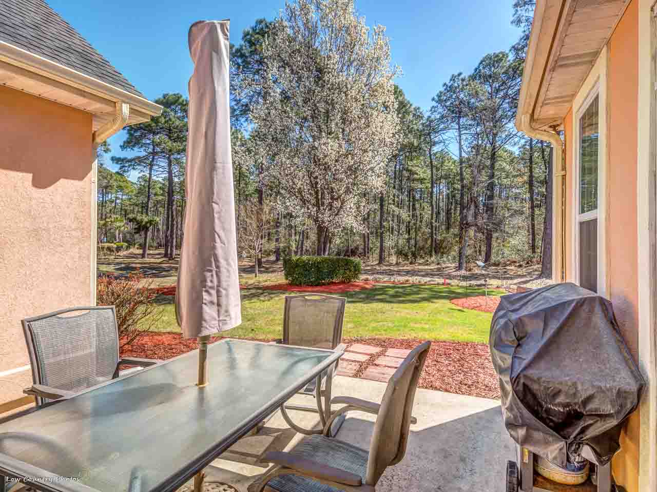 Excellent single level split-bedroom floor plan on a private wooded homesite. Currently, the best value in Legends Resort 4486 Aberdeen Way has an open plan with tons of natural light. Almost the entire backside of the residence has windows that provide serene views of the large backyard. The kitchen, with granite counters, flows into an oversized family room that is encased by windows. The fireplace in the living room will provide a more intimate setting for you and your guest. A spacious master suite and office/den flank the left side of the home while two guest bedrooms are on the right.