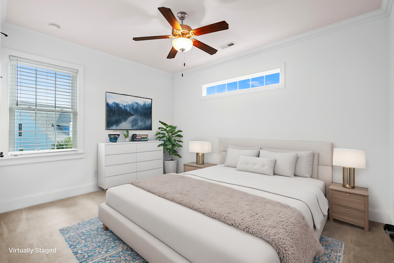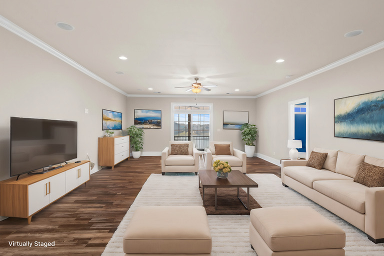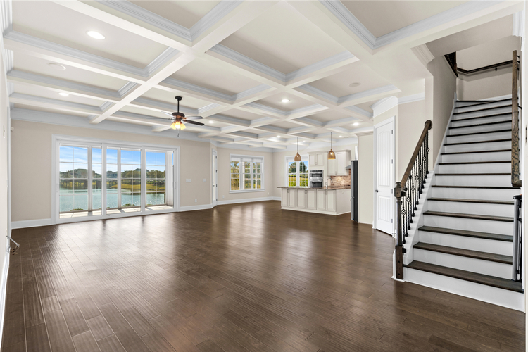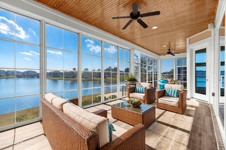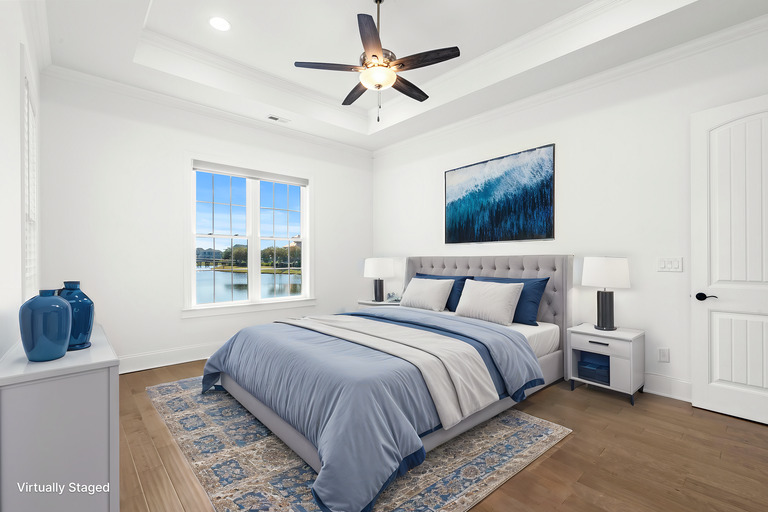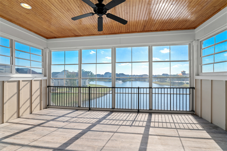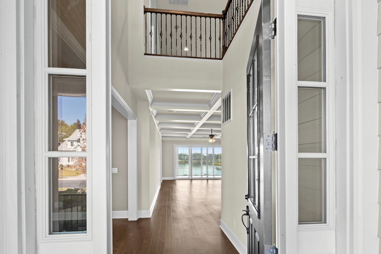 Step inside to a bright, open layout that draws you to panoramic lake views through oversized doors, leading to a tranquil three-season room — a perfect spot for endless relaxation. The main floor master suite provides privacy and comfort, while the second floor boasts a secondary master with an ensuite, ideal for guests or extended family. A spacious loft offers versatile space as an upstairs living area or game room, perfect for entertaining. Quality finishes shine throughout, featuring luxurious wood flooring, granite countertops, soft-close cabinetry, and impressive 7-inch baseboards and crown molding.