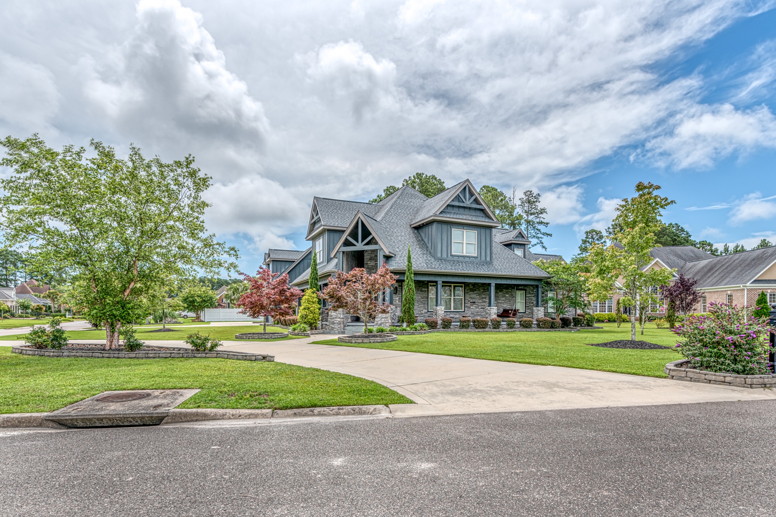 Boasting a sprawling 4590 heated square feet of living space and 6200+ total square feet, 5101 High Society has all of the upmarket features you desire. A large corner cul-de-sac homesite accents the Southern Coastal architecture. A stacked stone exterior and expansive front porch with two hanging rocking swings will provide endless hours of relaxation.