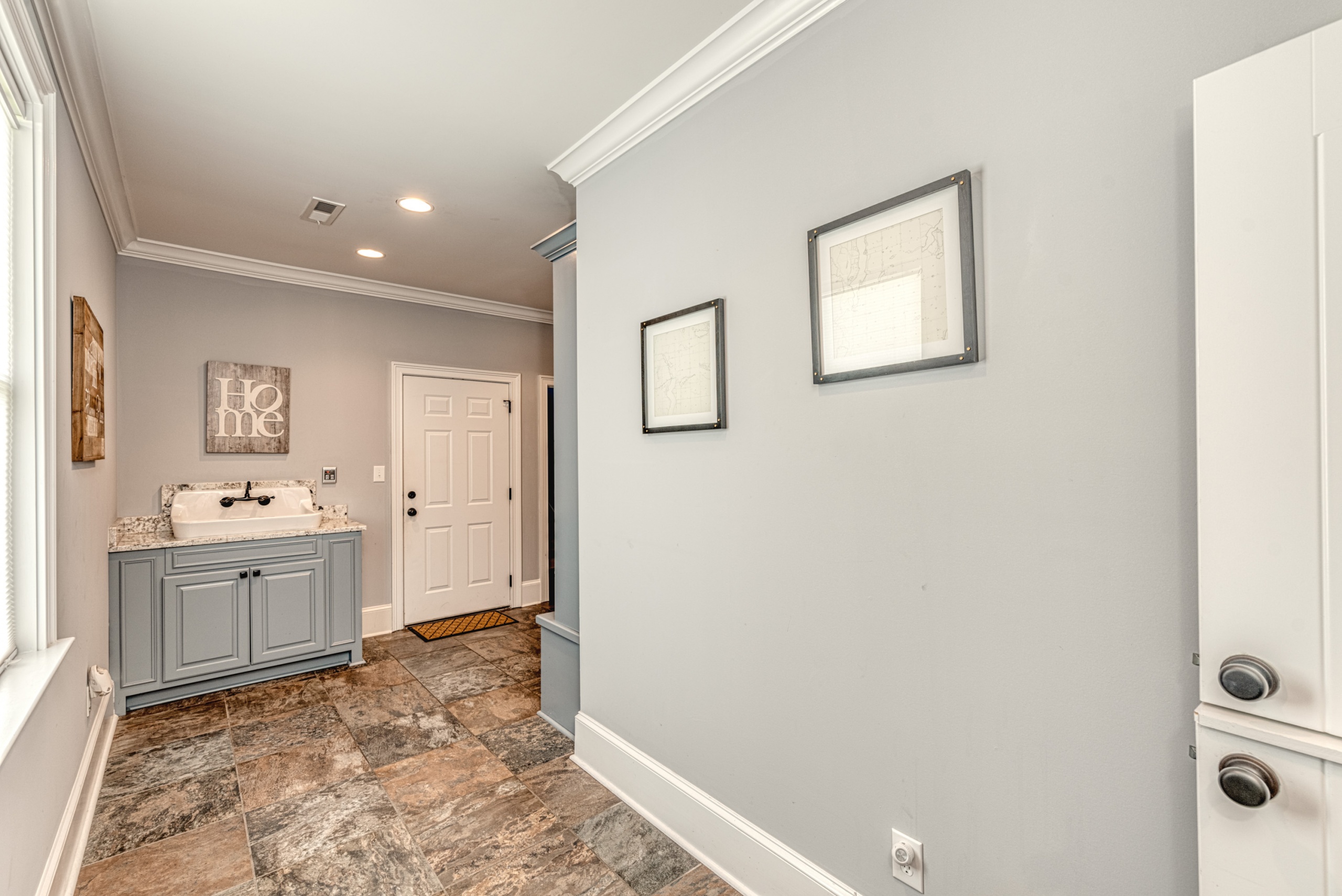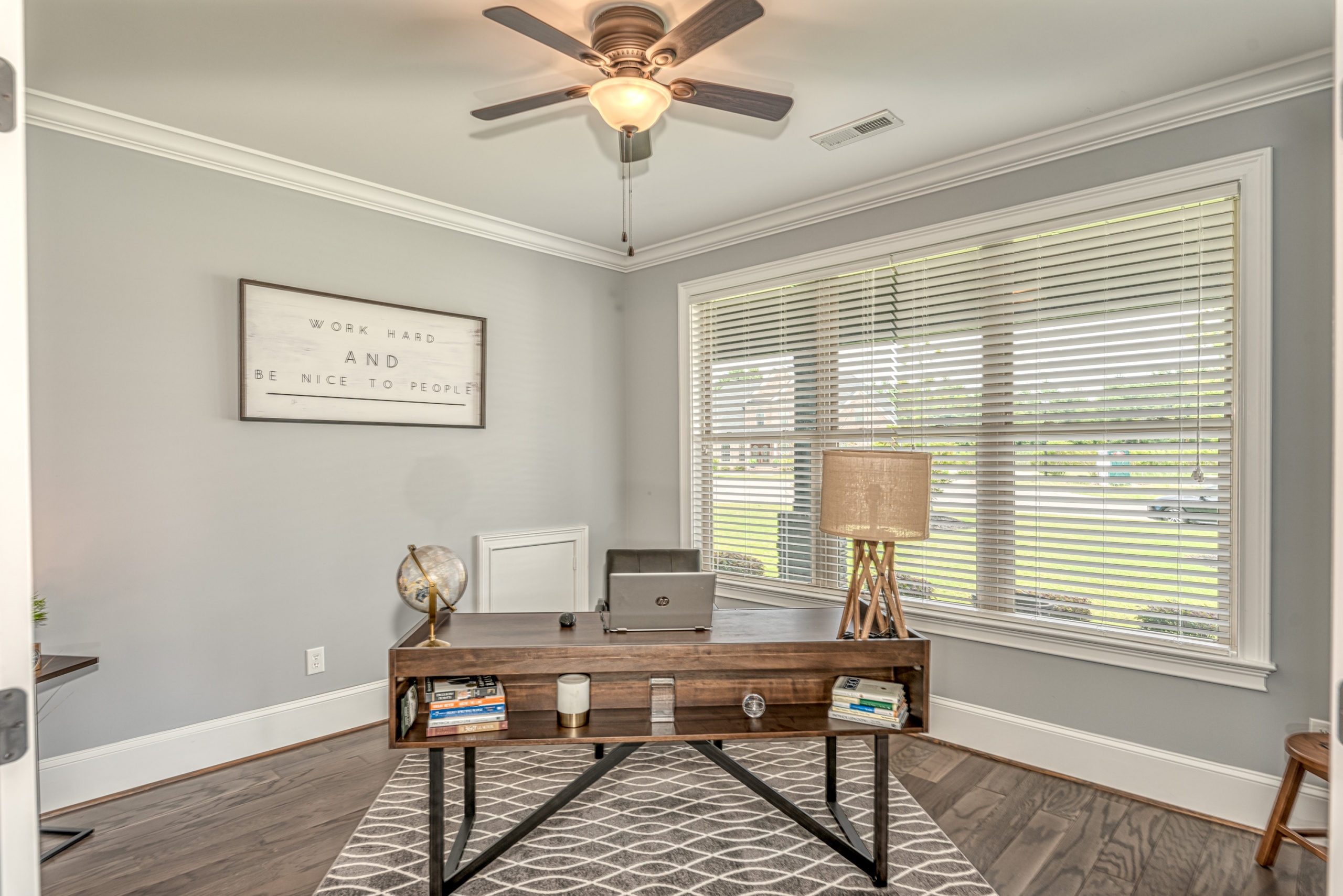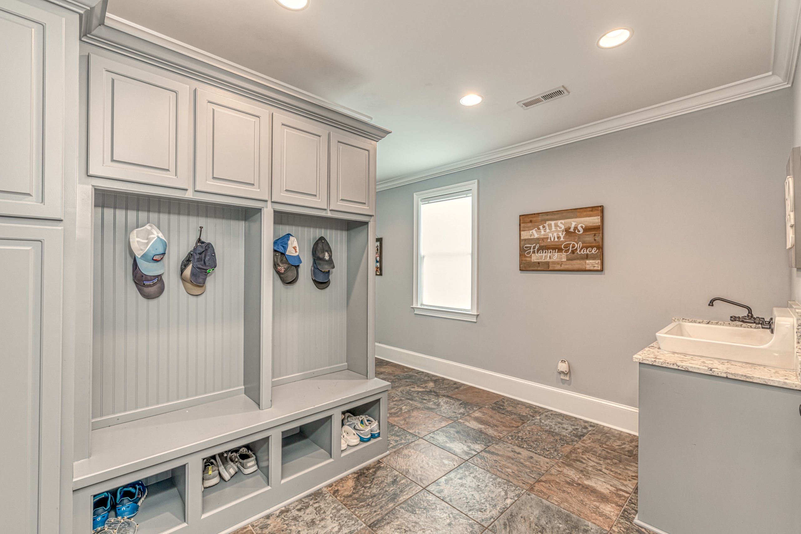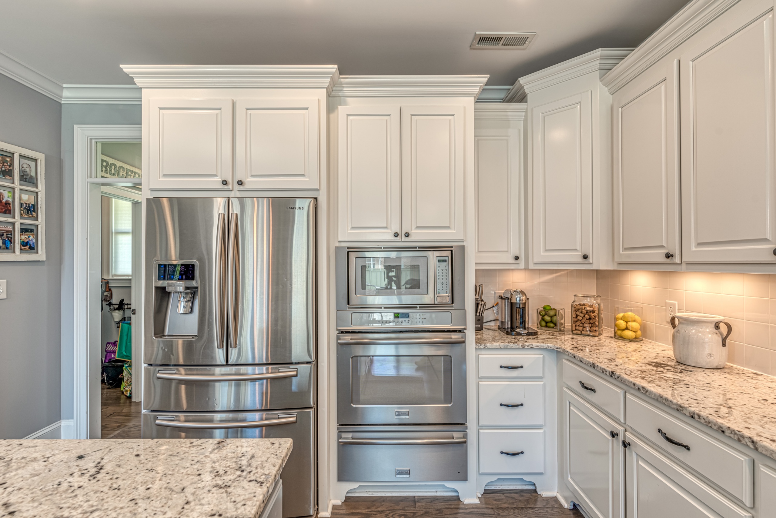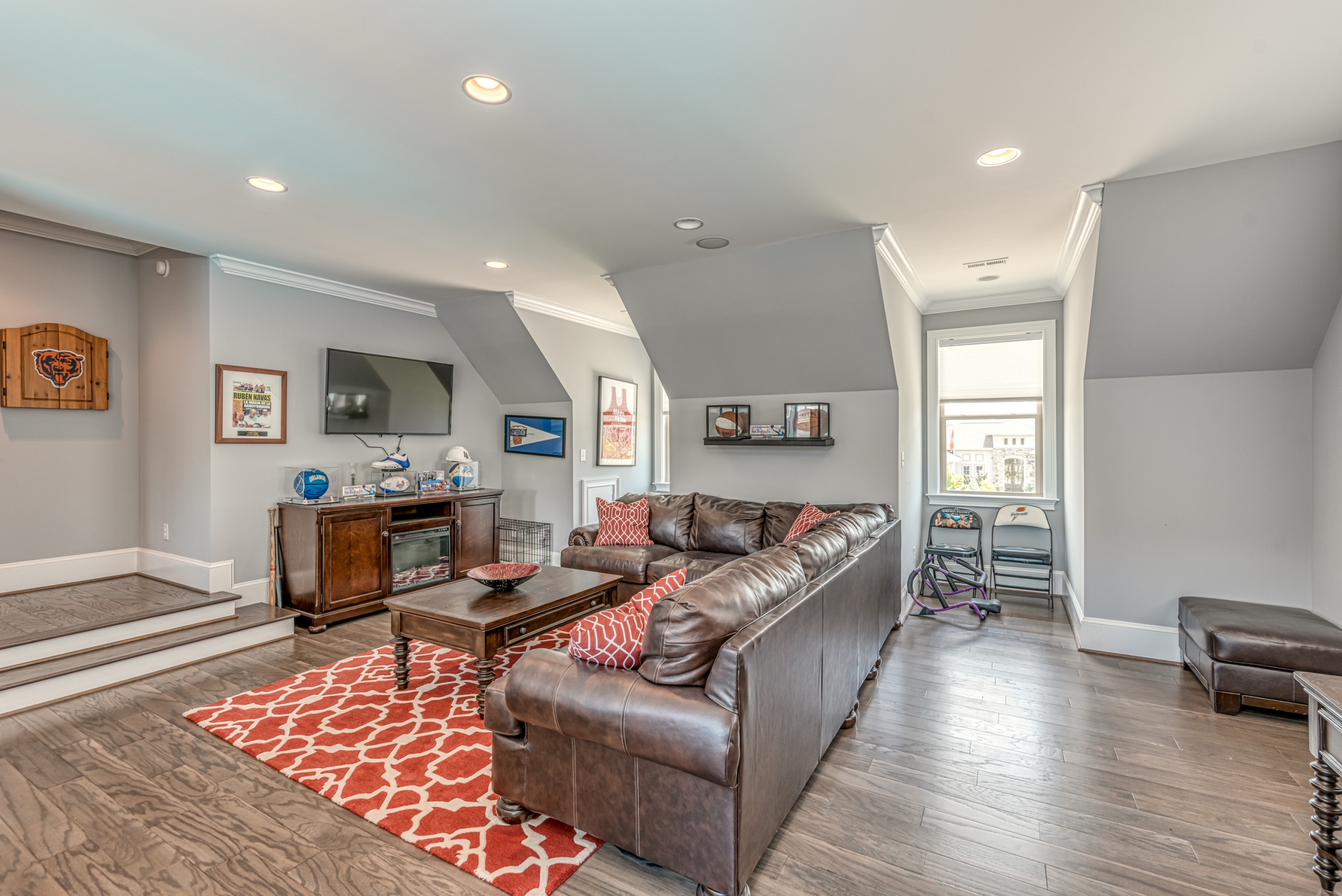 Once through the front door, you are drawn into the home by rich hardwood flooring, detailed moldings, a double-sided stacked stone fireplace, and a two-story living area. Now that you are inside, the quality craftsmanship and attention to detail are evident at every turn. The open kitchen and great room combination have become the staple of southern living. The large kitchen has a stainless gas range with a custom hood matching the cabinets. A secondary wall oven is a necessity for those who enjoy cooking. The large breakfast bar, oversized pantry, and butler pantry leading into the dining room make this an ideal home for entertaining. Rounding out the first level is a private guest suite ideal for in-laws or weekend guests, a study, playroom/den, and a 1st-floor laundry room.