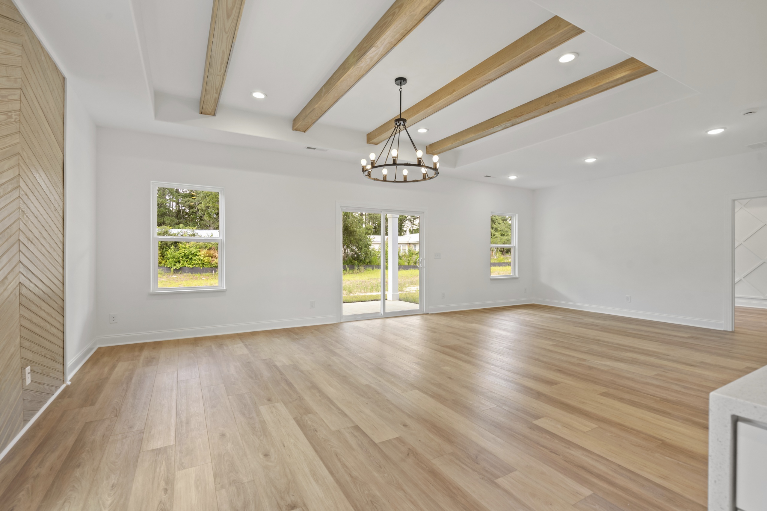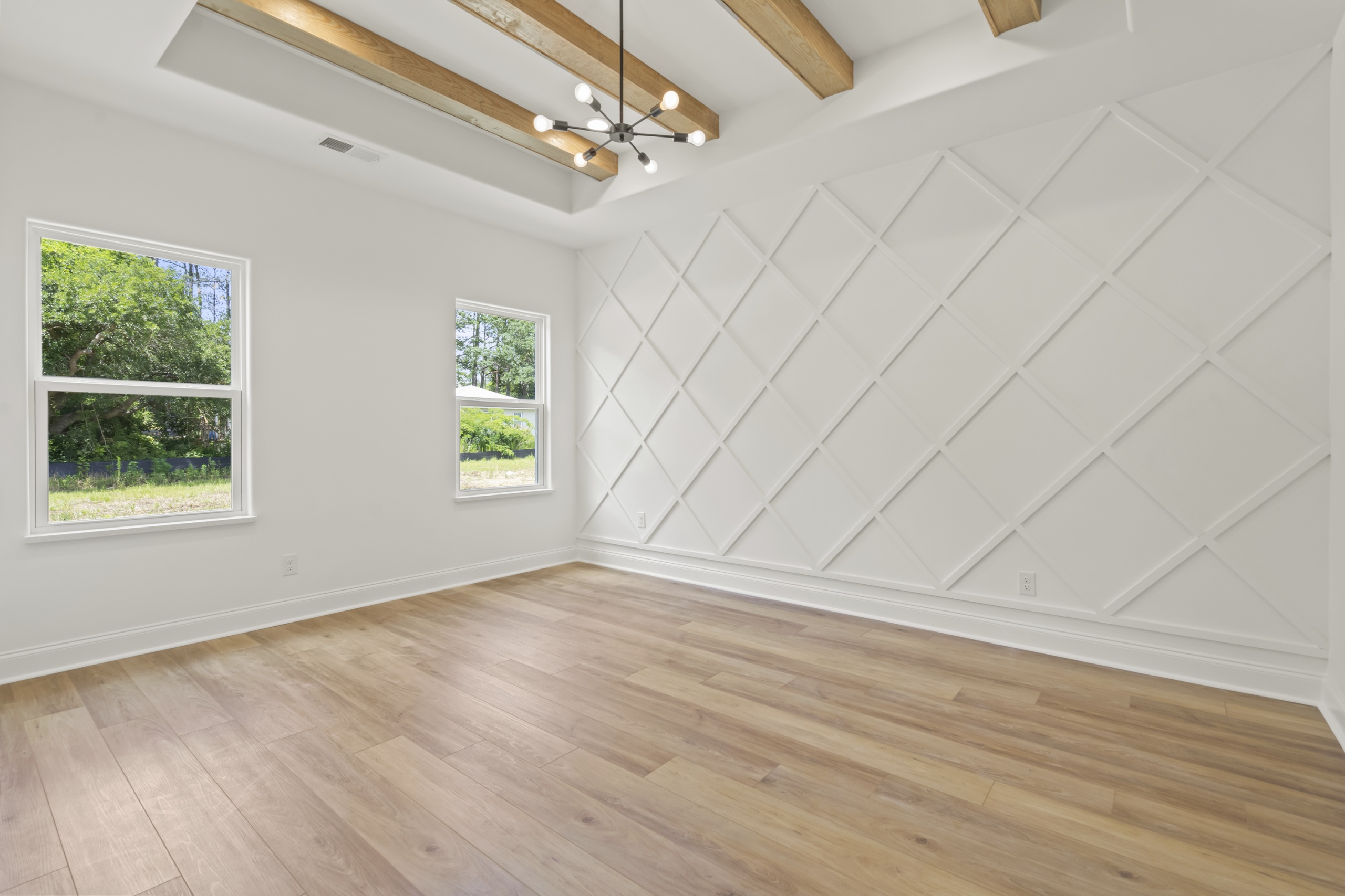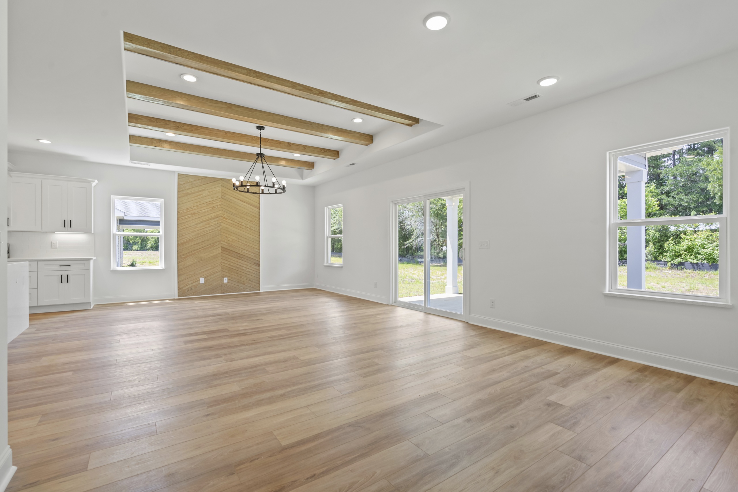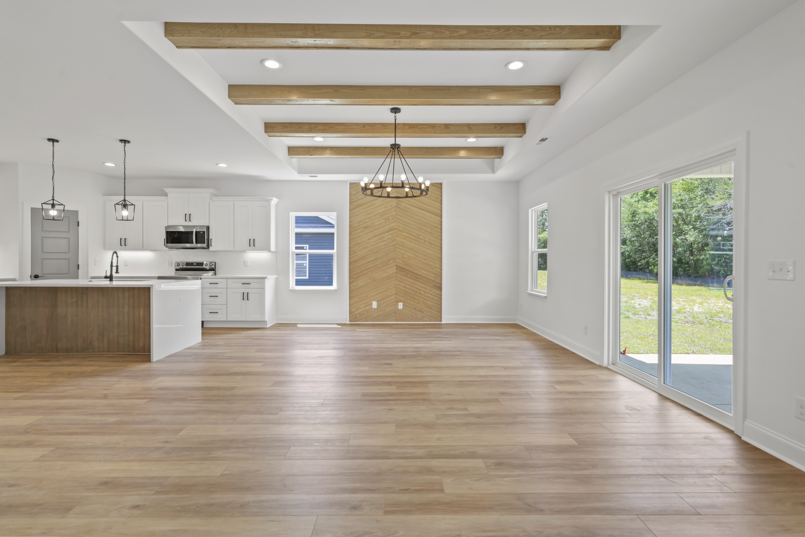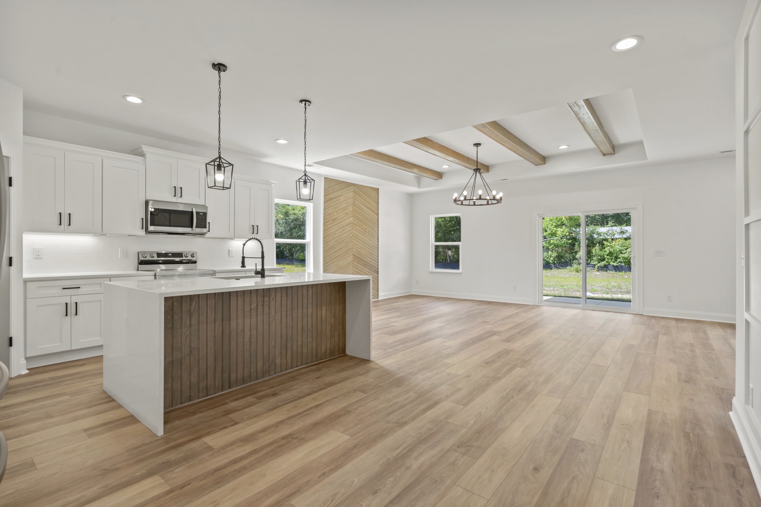 Step inside and be greeted by an open and inviting living space featuring a single-level split-bedroom floor plan, beautiful LVP flooring, and a generously sized open kitchen complete with granite countertops and a waterfall-edge work island. This well-appointed home also boasts tray ceilings in the master bedroom and living room, adding a touch of sophistication to your everyday living experience.