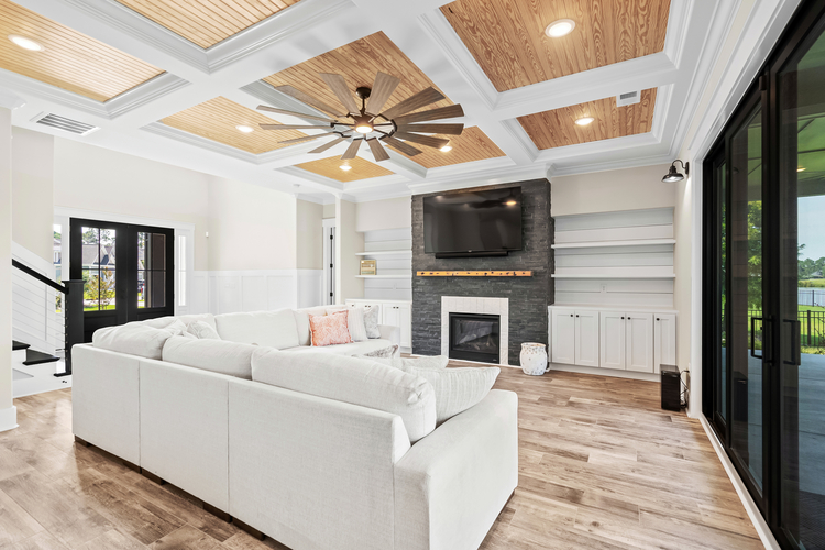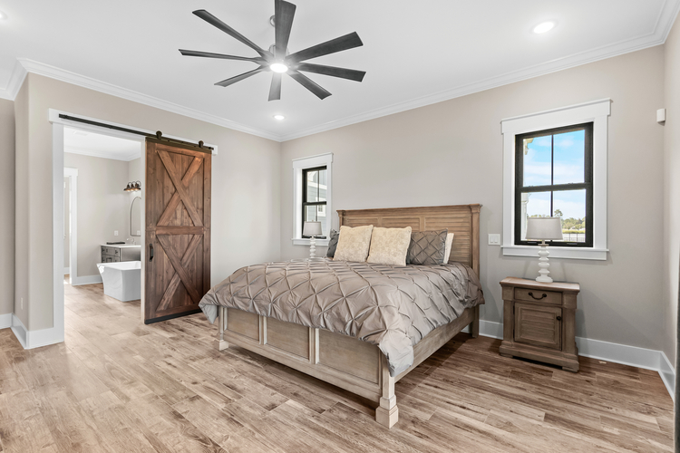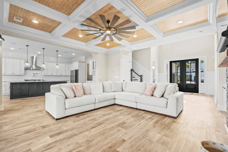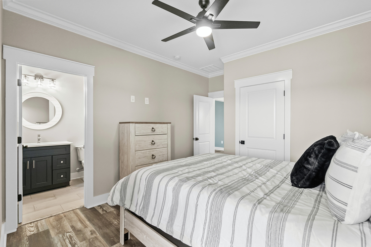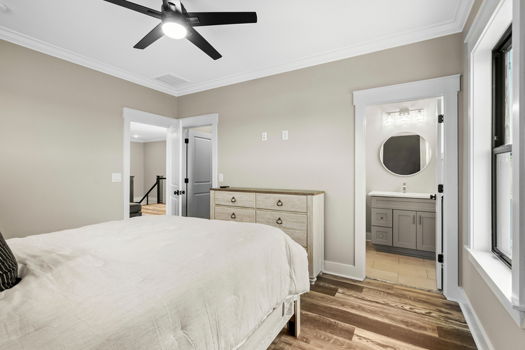 This custom-built home features four bedrooms, each with its ensuite bathroom, a spacious open kitchen with ample counter and cabinet space, and elegant finishes like crown molding, coffered ceilings, and shiplap accents. The first-floor master suite offers convenience, while the upstairs and downstairs living areas provide ample space for relaxation. Enjoy outdoor living with a large covered back patio and a second-floor balcony with breathtaking views. Additional highlights include a two-car garage with a golf cart door, a cubby drop zone, and oversized laundry rooms on both levels. There are too many upgraded features to list—this home is a must-see! ?