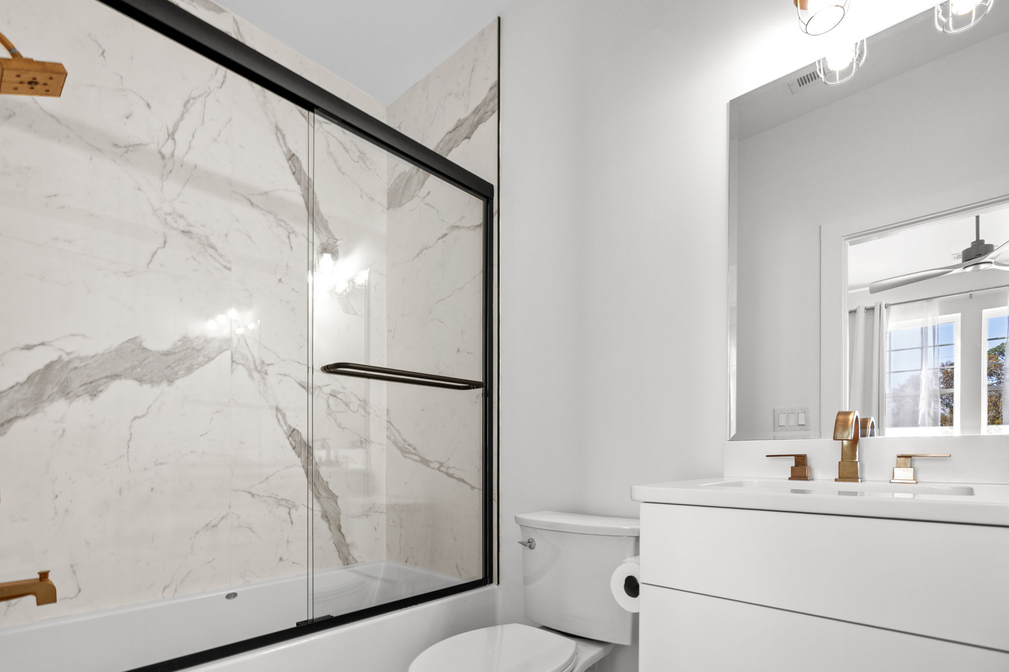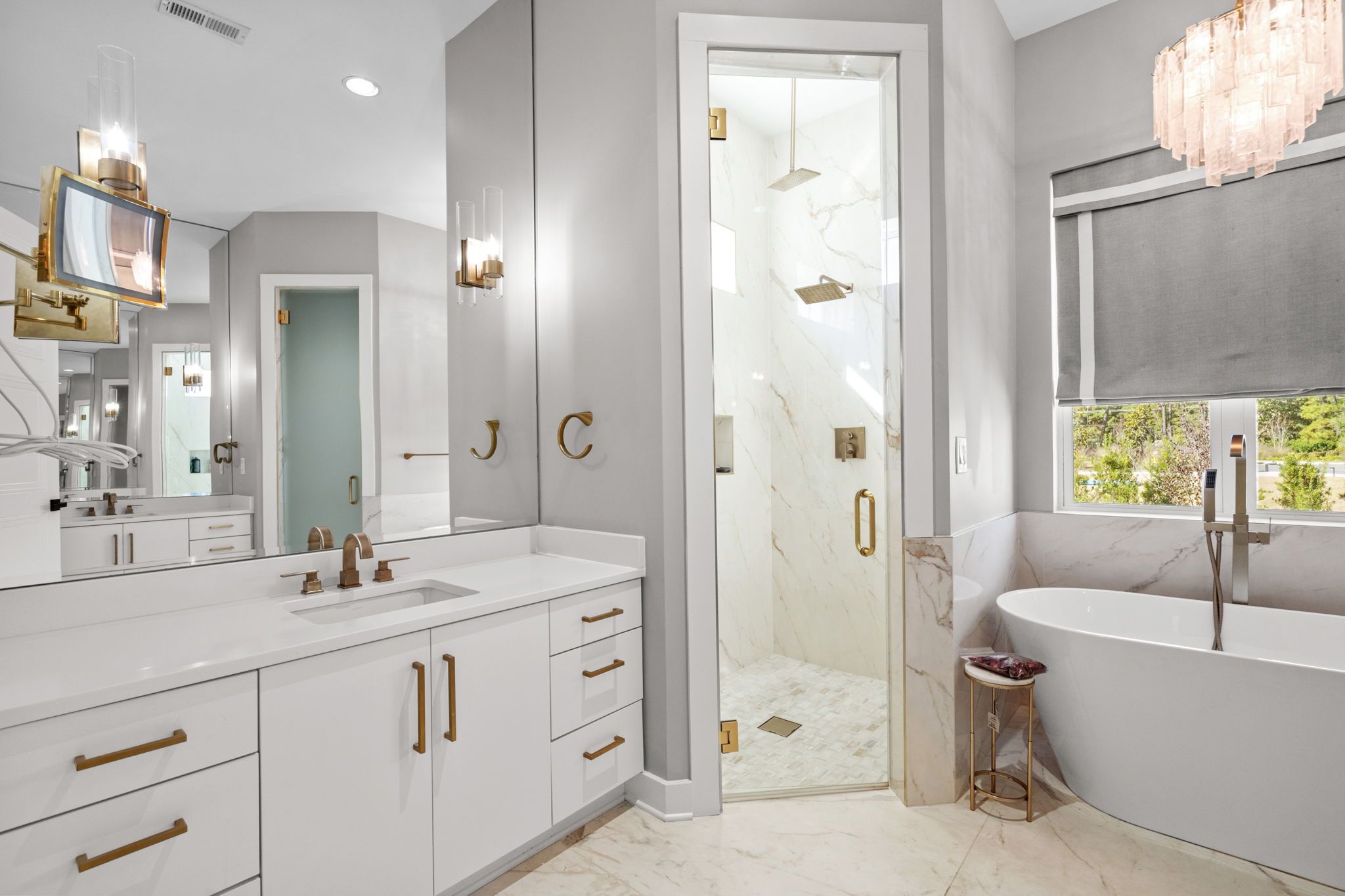 The primary suite on the main level offers a tranquil retreat with a spa-inspired bath, freestanding tub, spacious shower, and dual vanities. Upstairs, four additional bedrooms and three full baths provide comfort and flexibility. The fifth bedroom is exceptionally large, allowing for a private living area, home theater, fitness space, or multi-use room.