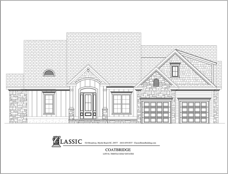 Tucked along the Cameron #2 green in Thistle Golf Estates, the Coatbridge model is a beautifully designed split-bedroom home by award-winning Classic Homes of Myrtle Beach. With mostly single-story living, panoramic golf course views, and custom finishes throughout, this home delivers style, comfort, and craftsmanship.
