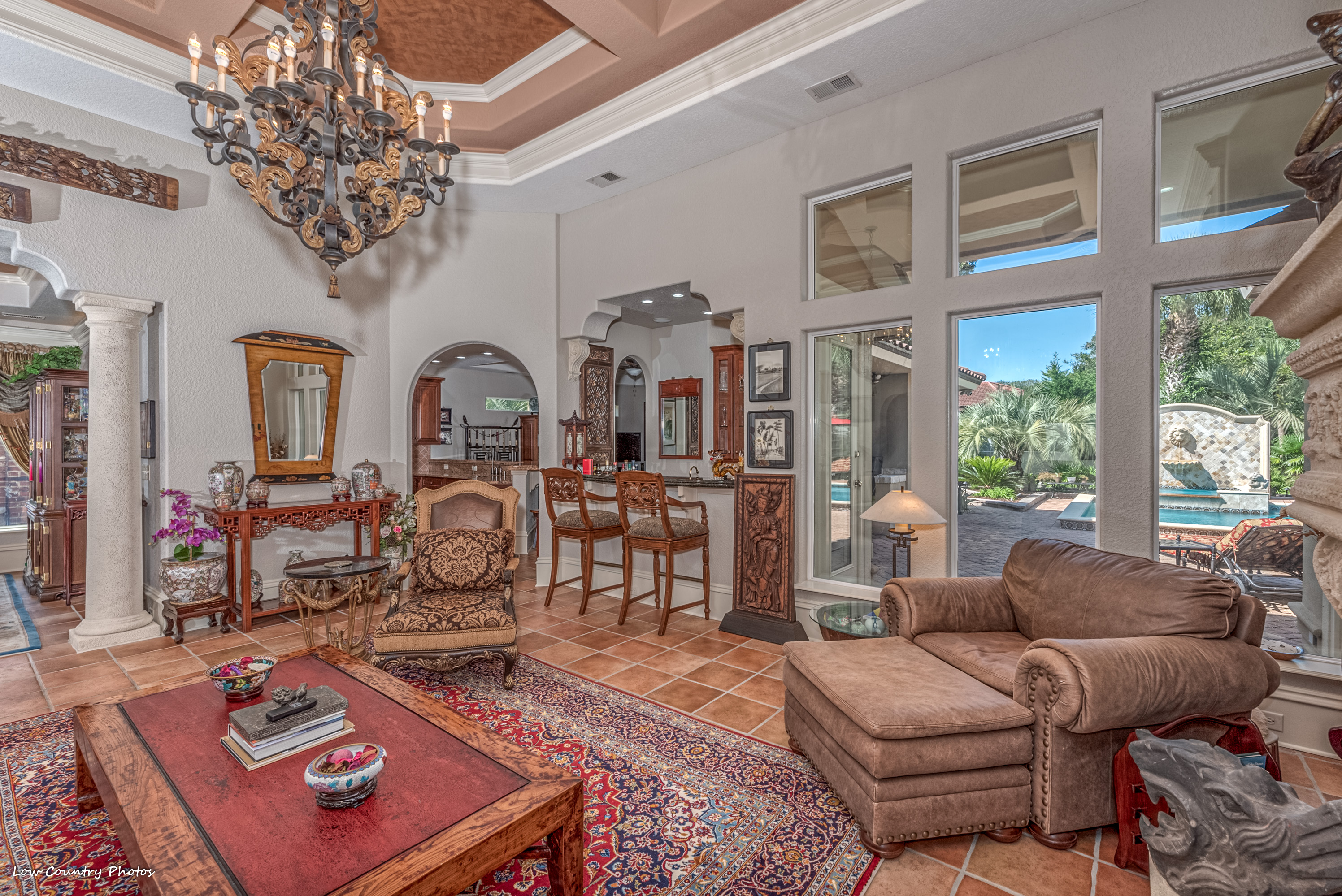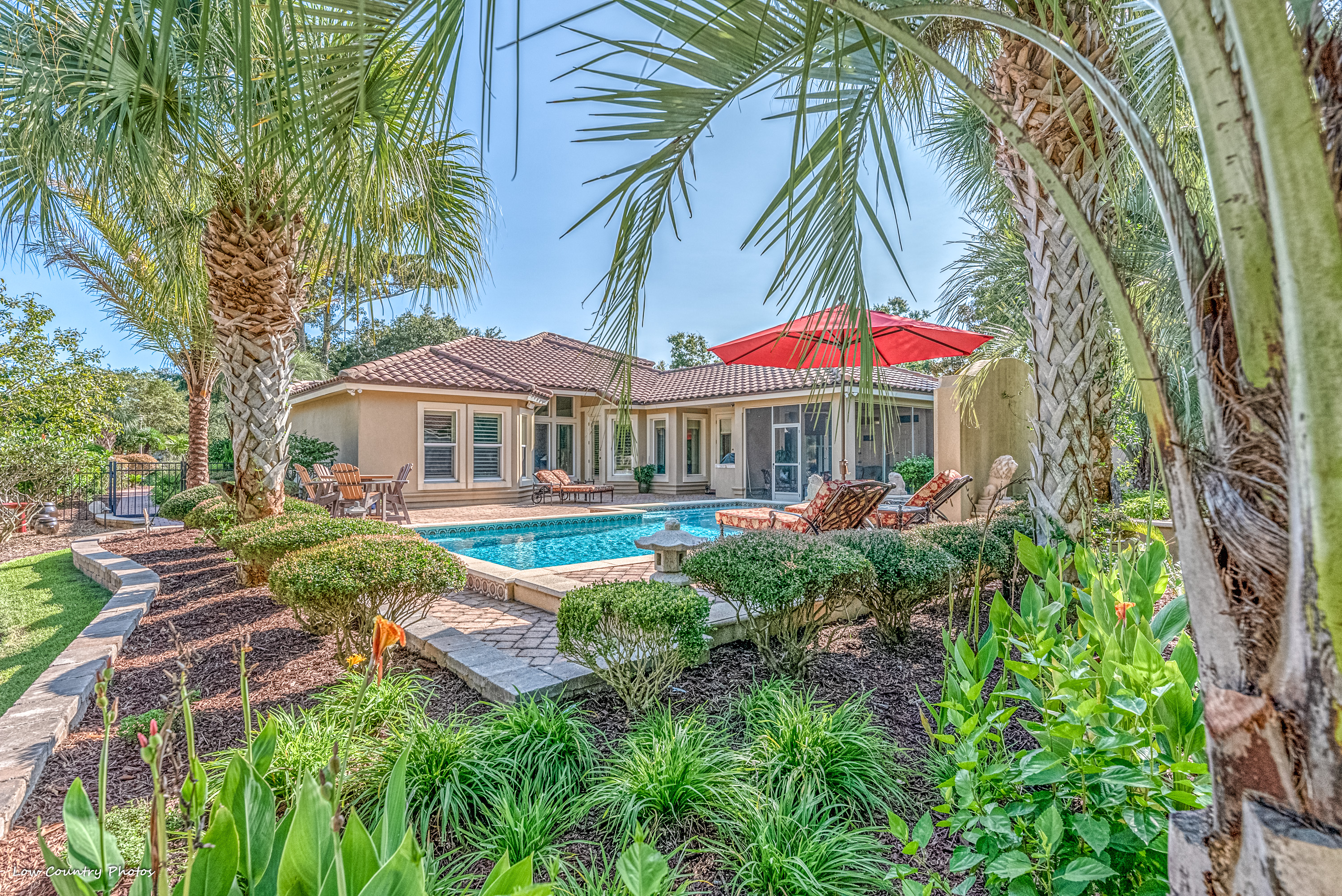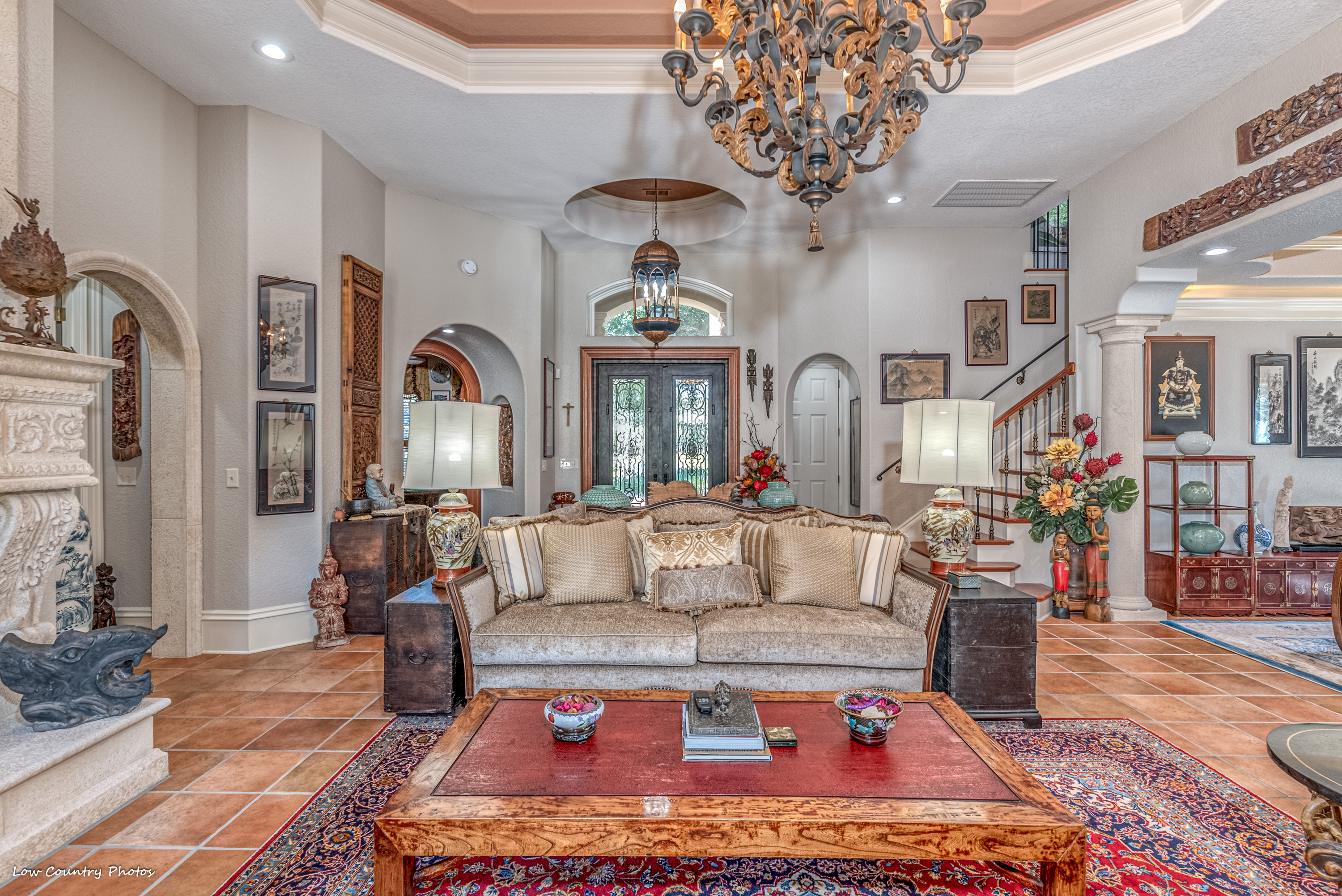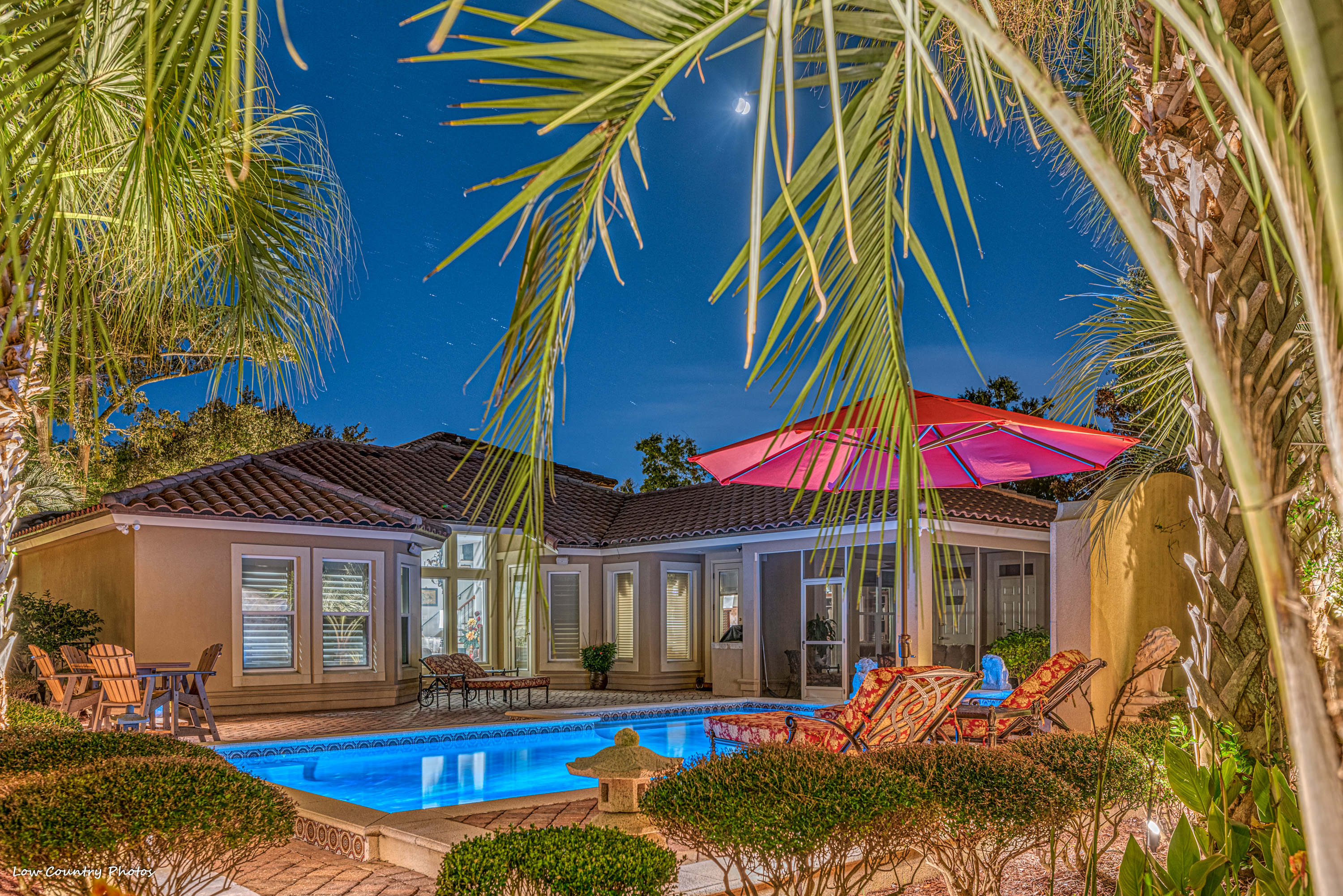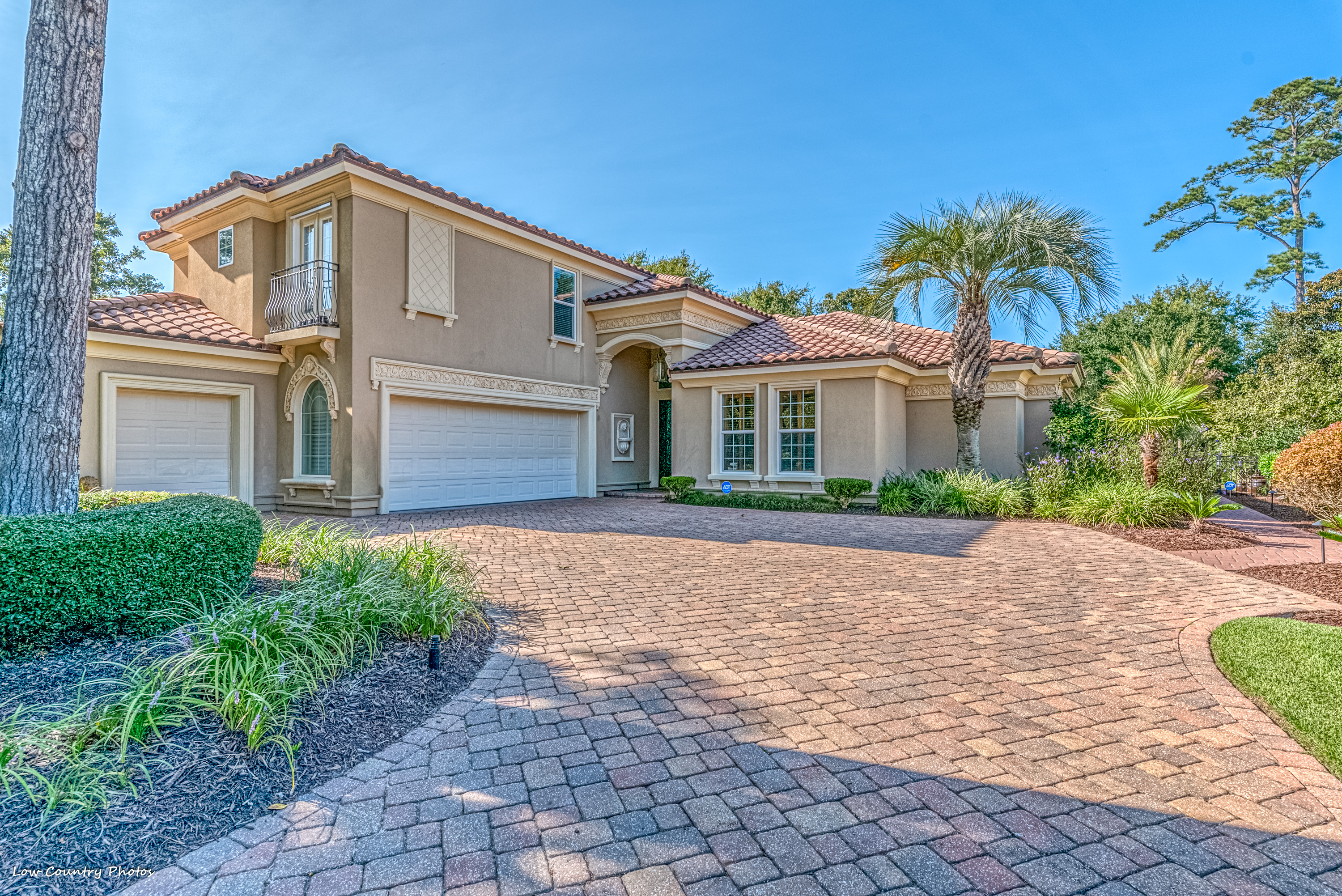 This beautiful Mediterranean Estate Home is the former model for Classic Homes. The house is ICF Fortified Construction, with high-impact windows. Vaulted ceilings and the open floor plan offer tons of natural light. Affording you three bedrooms, three full bathrooms, one-half bathroom, home office, and a three-bay garage, 7563 Siena Boulevard has all the upgrades and extras you want. Nestled quietly in Siena Park, this house sits on one of the Grande Dunes most beautiful homesites. Accenting the extensive palm trees, tropical plants, and a Butterfly Garden is a large tranquil park in the front of the home.