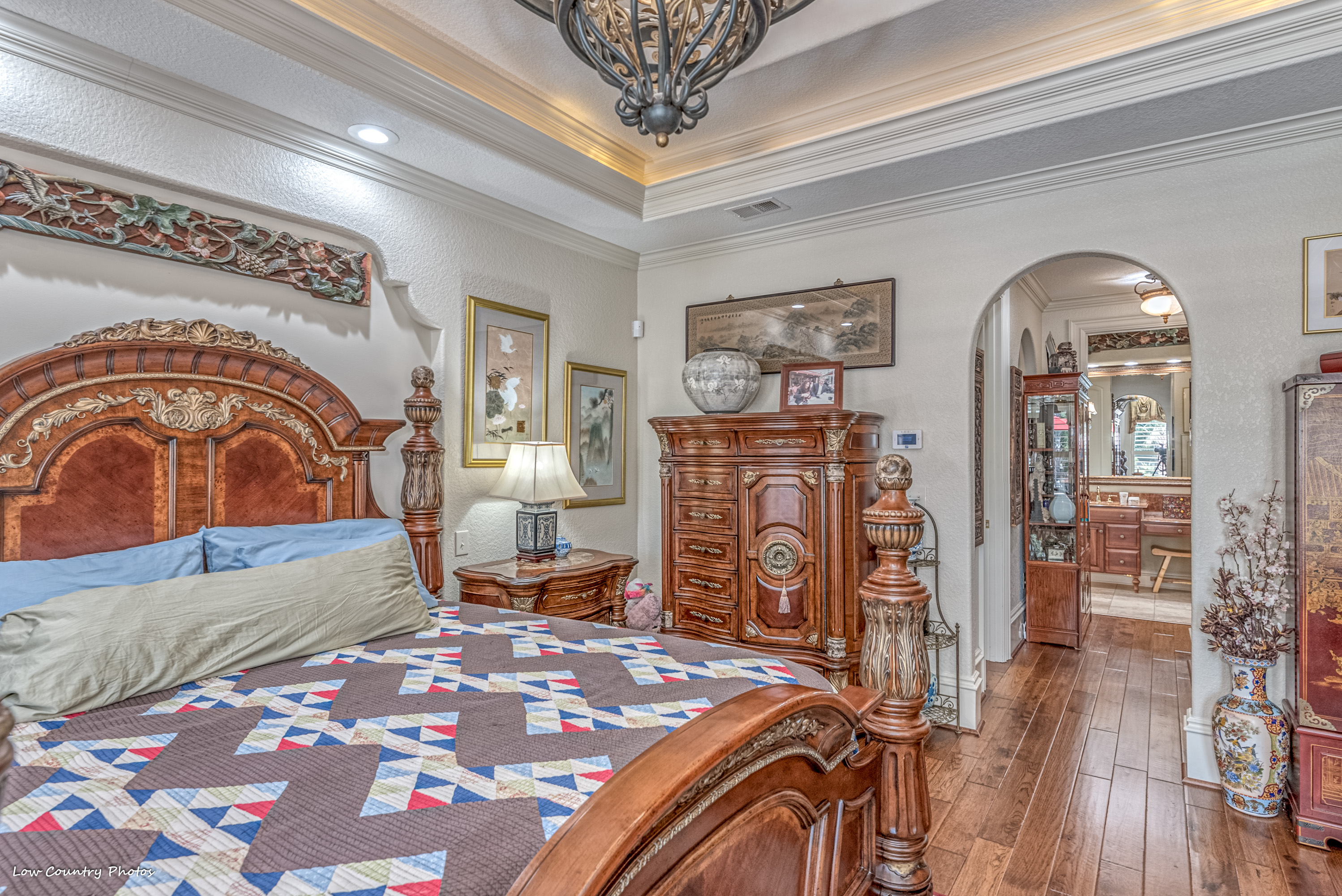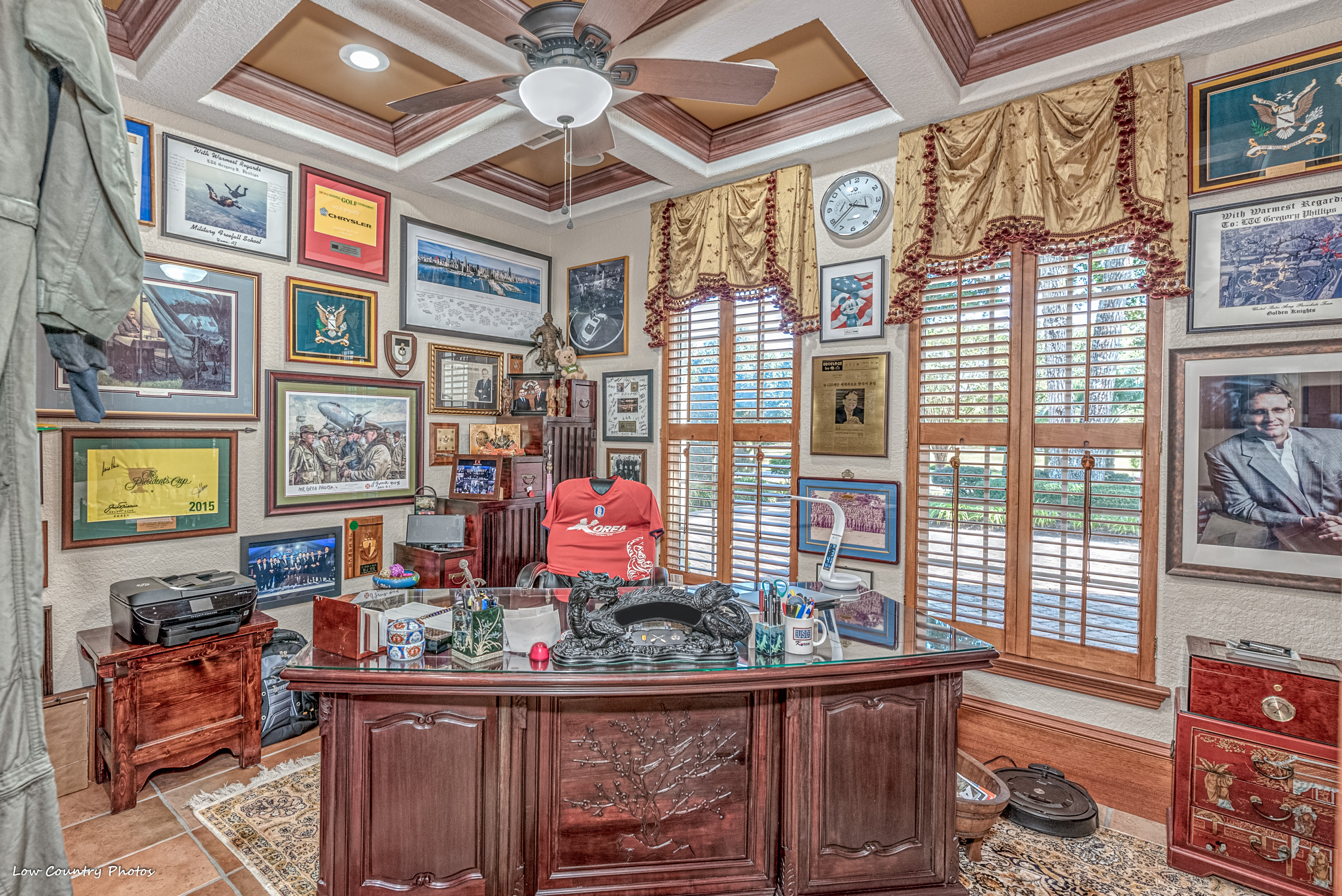 Once you step into this very secluded, privately walled off backyard, you'll think that you have arrived at a Tropical Resort on vacation. The customed landscaped backyard is ideal for entertaining friends and family or just for enjoying a relaxing moment in your Spa / Pool. Within the past 18 months, there have been extensive upgrades and enhancements to the home. A shortlist of them includes two newly installed Carrier High Tech HVAC Systems, pool resurfaced with pebblestone texture, hardwood floors in the Owners Suite, fans, fixtures, plantation shutters, custom closets, and the list goes on. As you enter through the elegant but robust front entrance, you'll walk into a grand foyer facing the formal living room with its soaring customed painted ceilings overlooking your majestic backyard and pool. Must see this one to appreciate the quality, details, and beauty.