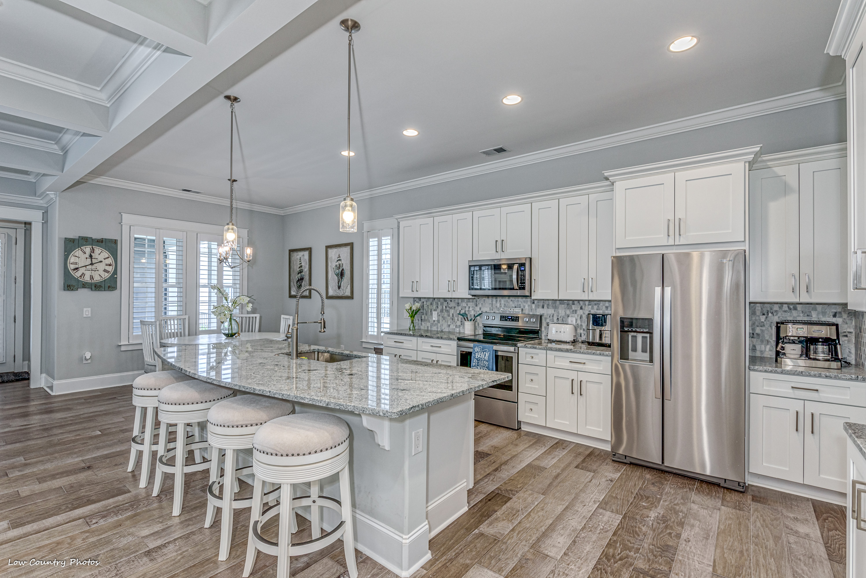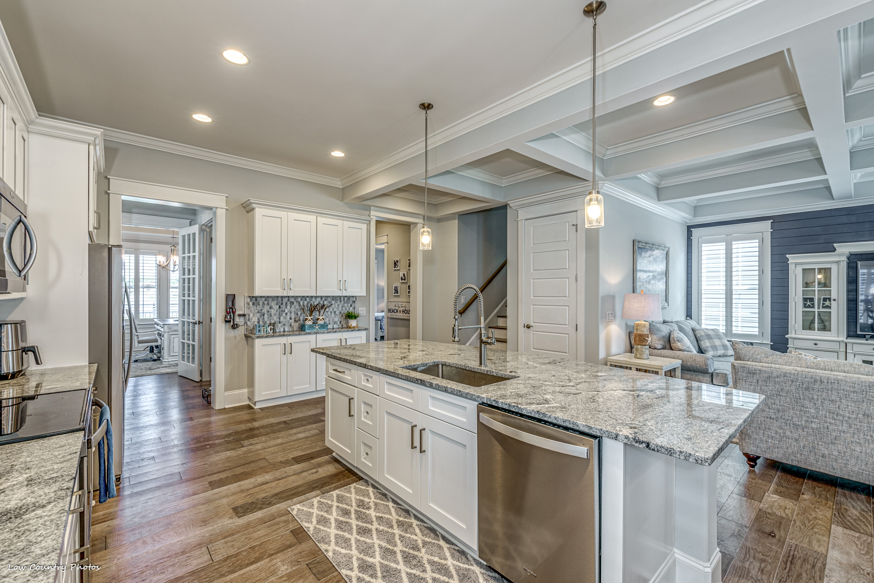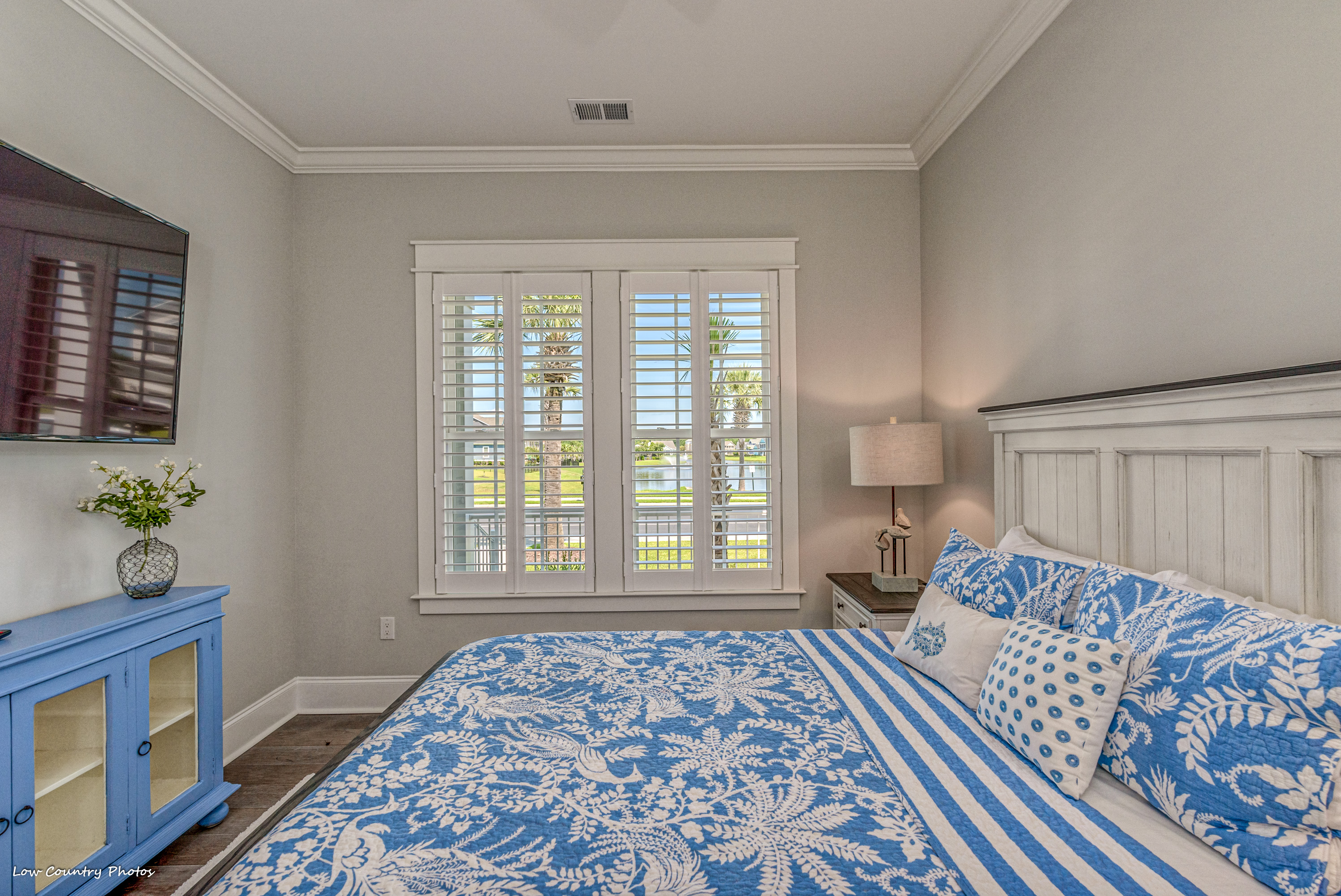 Brand new home, only six months young.  Sit on the front porch of this recently completed home and enjoy the serene lake view! Detailed moldings and numerous upgrades run throughout this home. In addition to ample cabinet space, flanking the open kitchen is a butler pantry and a walk-in pantry. In the living area, the shiplap wall accents the coffered ceilings and will be a great area to hang out with friends and family. Rounding out the main level is a spacious office and a guest suite.