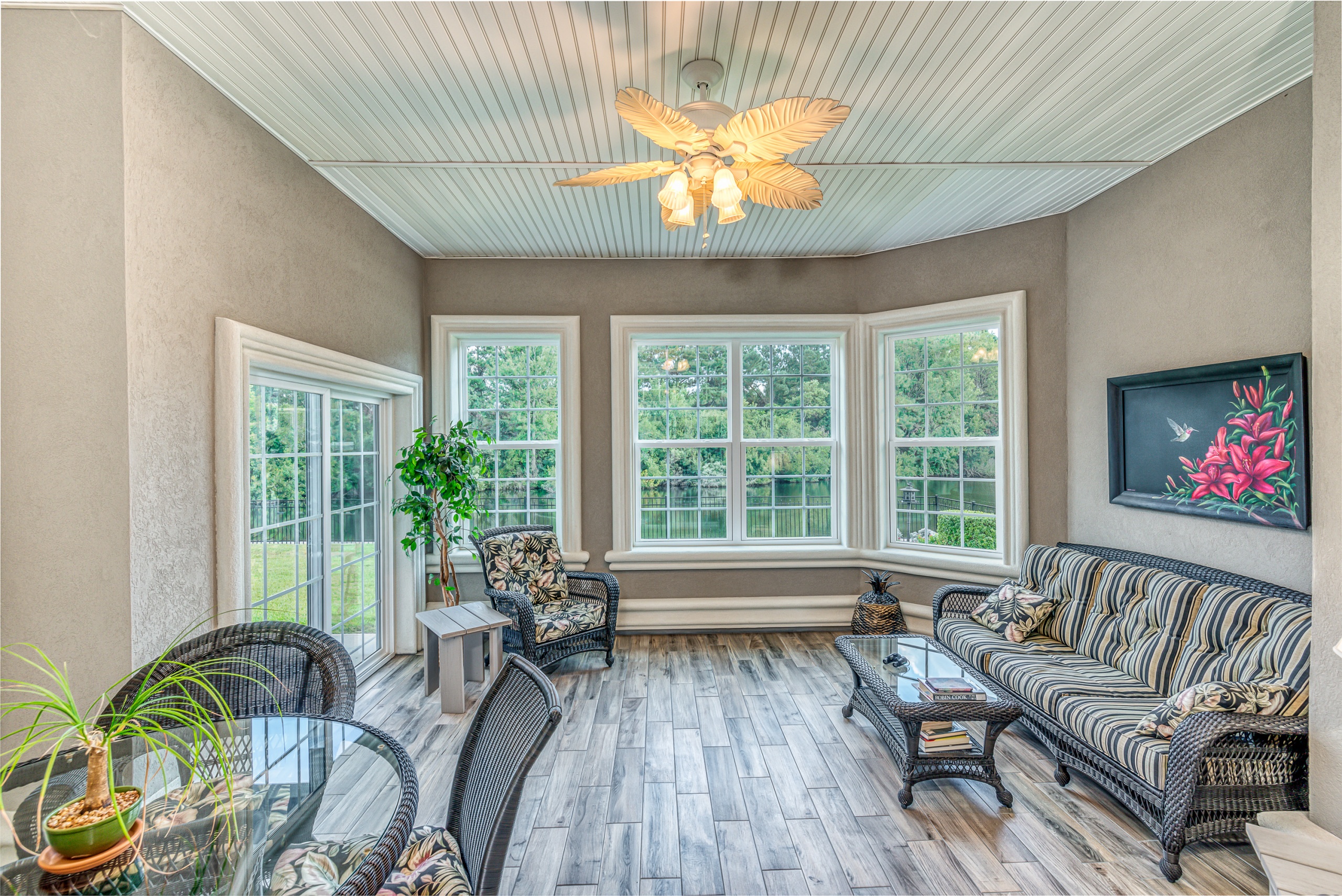 8504 Juxa Drive is located in the sought-after community of Plantation Lakes. This one-level Mediterranean home is in mint condition and is move-in ready. Walking through the front door, you cannot help but notice the soaring ceilings with crown molding and tray ceilings throughout. The large kitchen has ample cabinet space, under cabinet lighting, a large work island, and a breakfast nook with a lake view. On the righthand side of the home, you are afforded an oversized owner's suite with a sitting area, dual walk-in closets, and an en-suite bathroom. Flanking owners suite and entryway is an office that could easily double as a den or private setting area. With a proper split bedroom floor plan, the three guest bedrooms are on the lefthand side of the home. The back guest bedroom features an en-suite bathroom and a walk-in closet. The remaining two guest rooms share a "Jack & Jill" bathroom. The sunroom on the backside of the home will provide countless hours of tranquility with its amazing private lake view. The backyard is perfectly situated for a pool with a fenced-in yard, bulkhead, and boat dock. Do not wait to preview this home because it will not last.