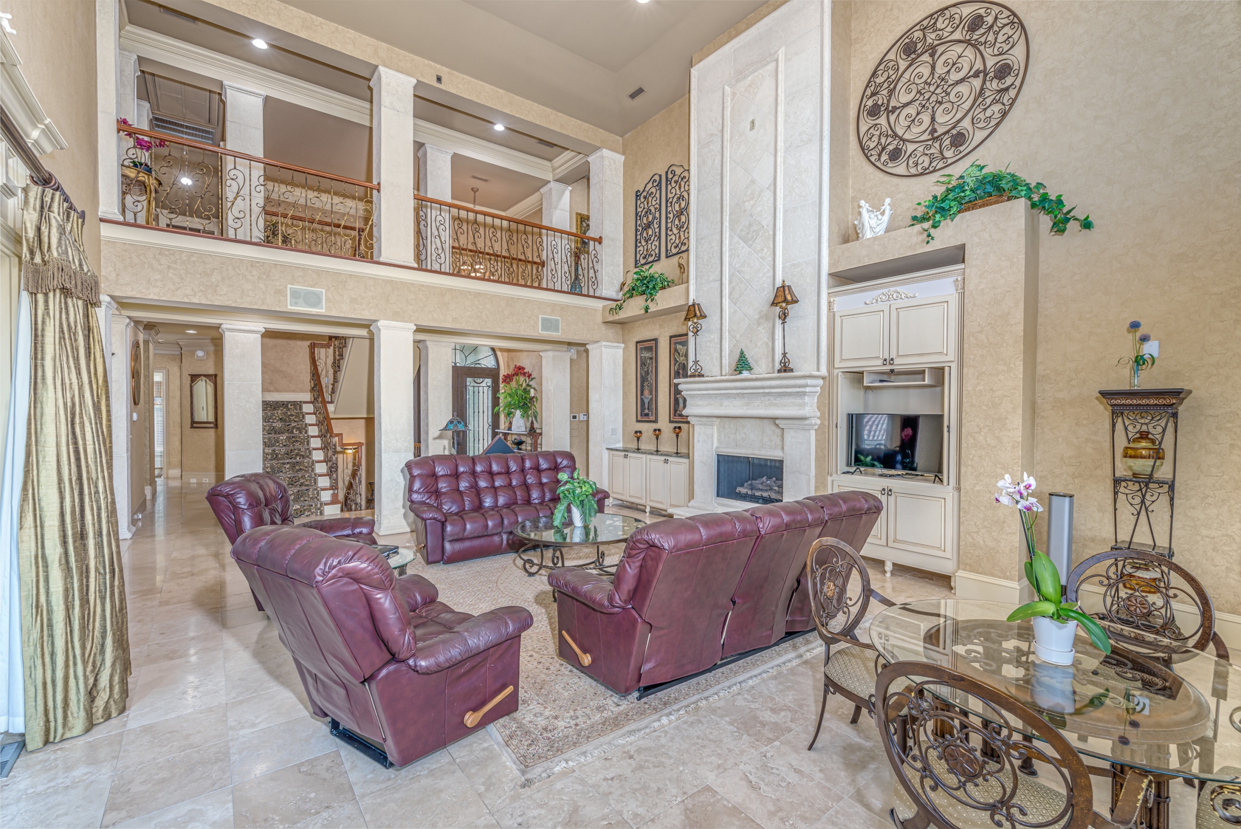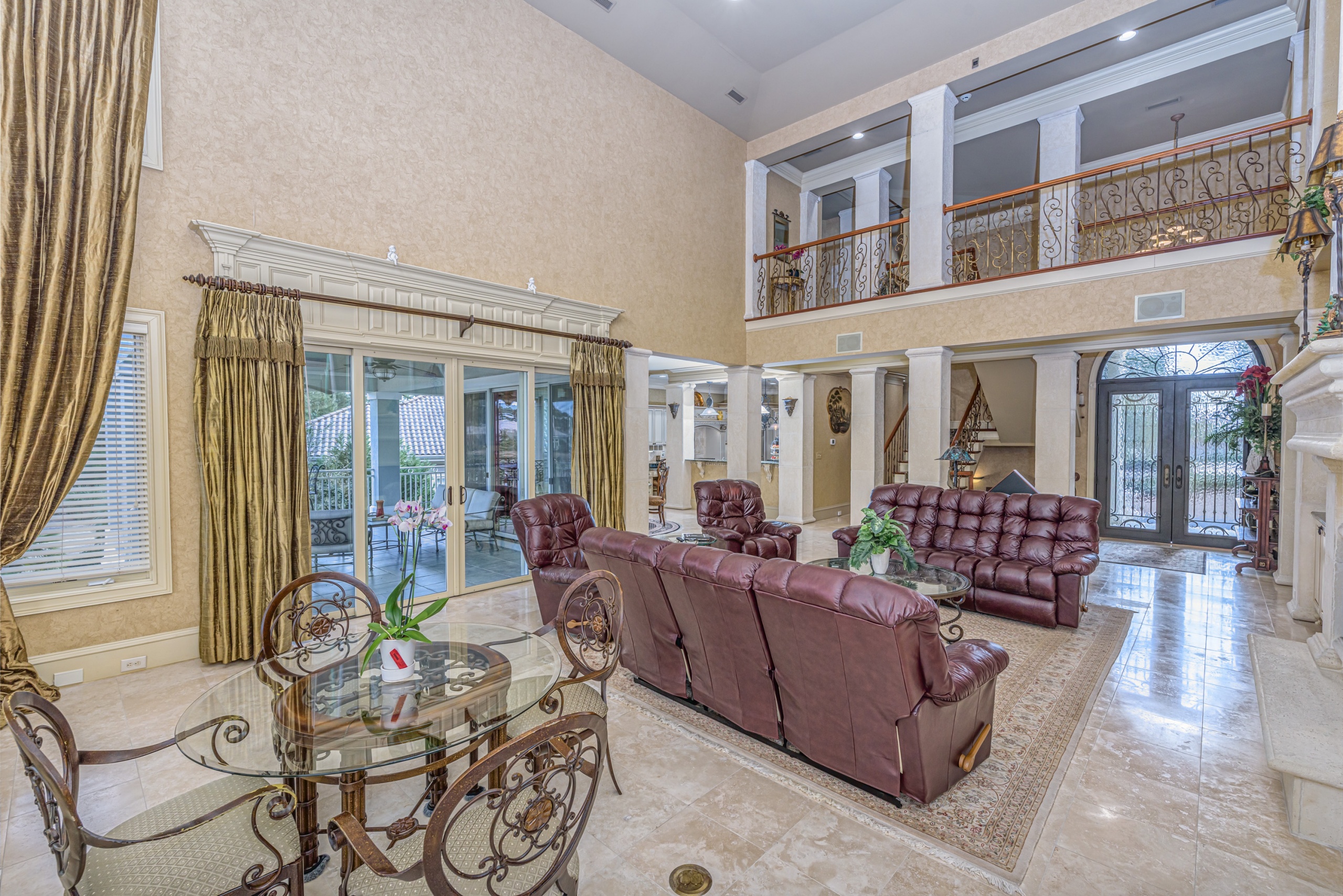 8675 Bella Vista Circle is a palatial estate home with panoramic golf course views from almost every room. This Mediterranean Masterpiece is steel frame constructed and is a structural fortress. The kitchen and dining area flank a magnificent two-story family room. Also, on the main level is a custom-built office made with reclaimed wood from an old deconsecrated church in England. All of the spacious bedrooms feature en-suite bathrooms and have access to private balconies. A large, winding covered balcony with a summer kitchen has tranquil vistas that will provide countless hours of relaxation.