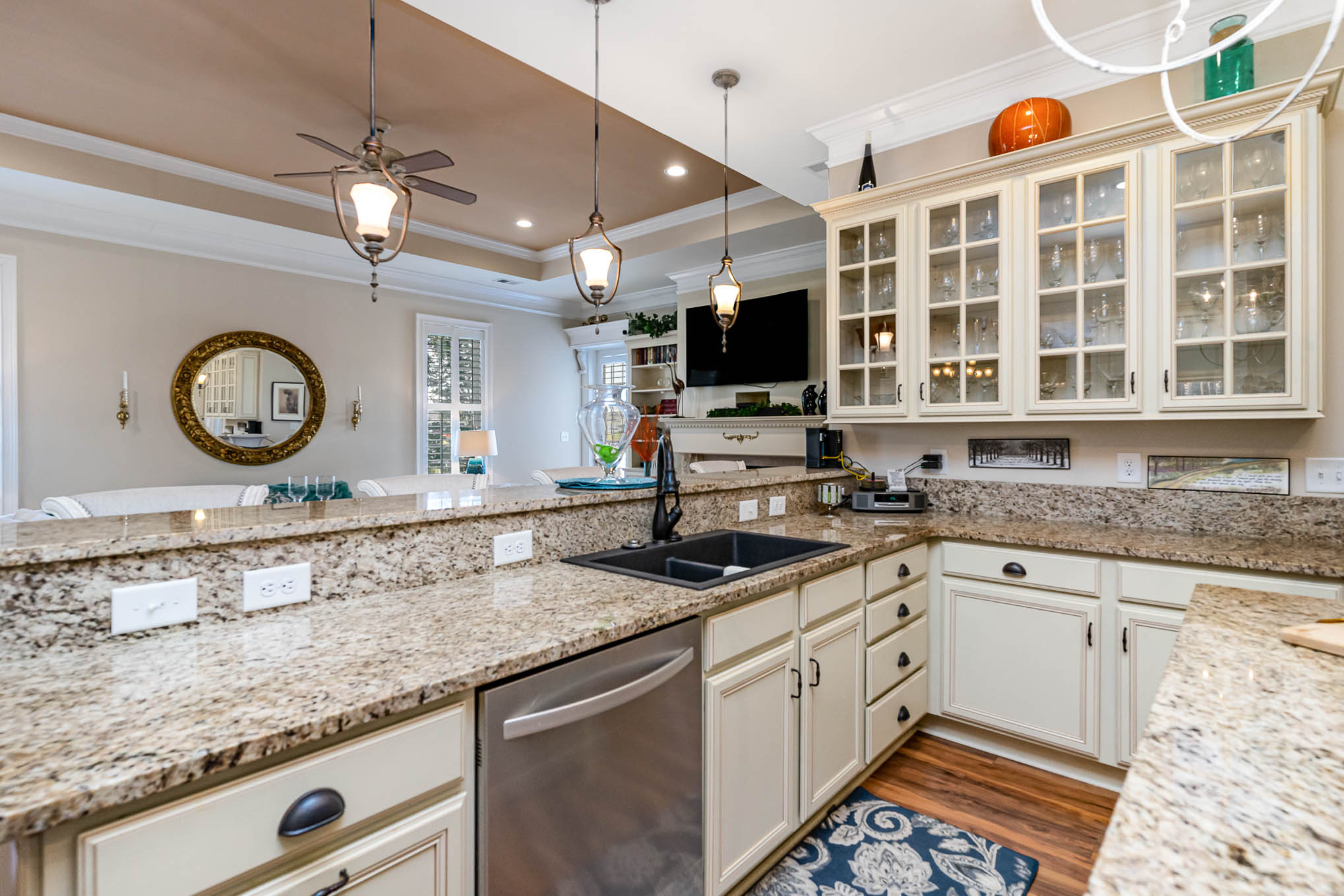 On 892 Crystal Water Way's main level are an oversized owner's suite, dining area, and a spacious open kitchen and family room combination. The kitchen features custom soft close cabinets with detailed molding, beautiful granite counters, and a massive pantry. Once the day is done and you retreat to the owner's suite, you are afforded a large bedroom, his & her walk-in closets, a soaking tub, and a fantastic floor-to-ceiling tile shower. Rounding out the main level is the dining area accented with columns & shadow box molding, and an inviting living room with an electric fireplace.