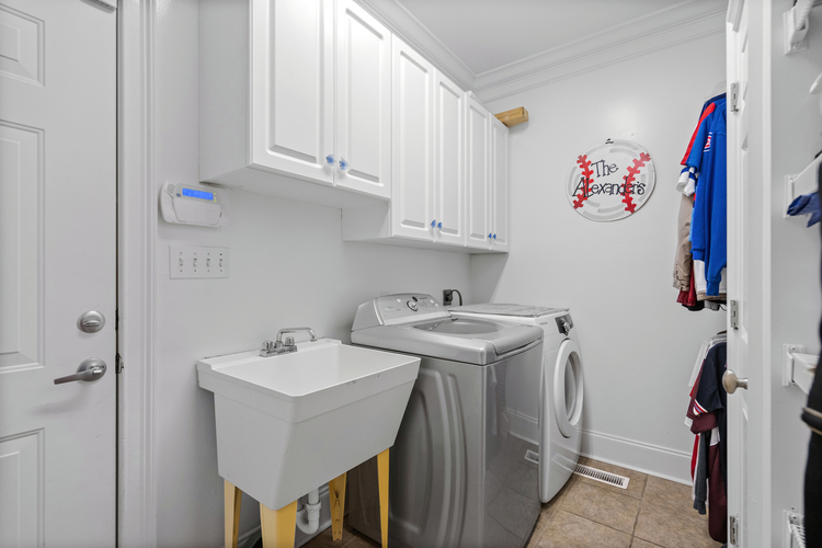 The living area, adorned with custom built-ins and a cozy fireplace, creates an inviting atmosphere for gatherings or tranquil evenings in. Alongside, a secondary bedroom, laundry room, and extensive closet space enhance the home’s convenience and functionality. Unique to this home is a convenient laundry chute, adding an element of ease to everyday tasks, seamlessly connecting the upstairs living spaces to the laundry area below.