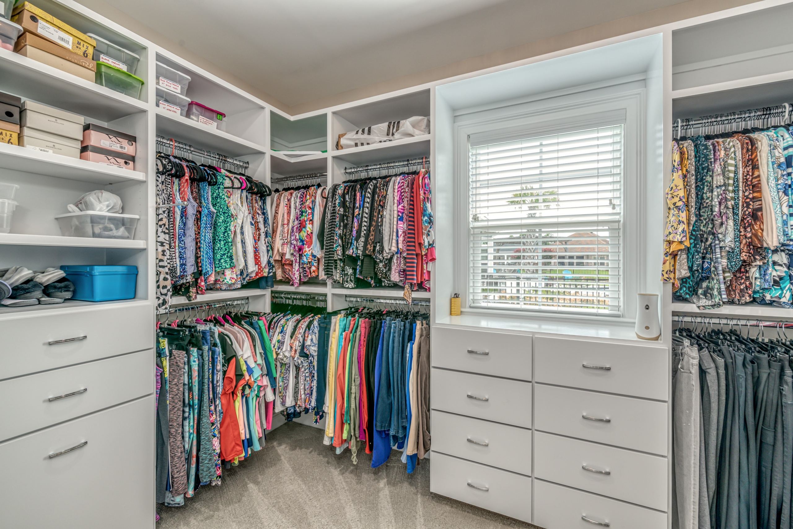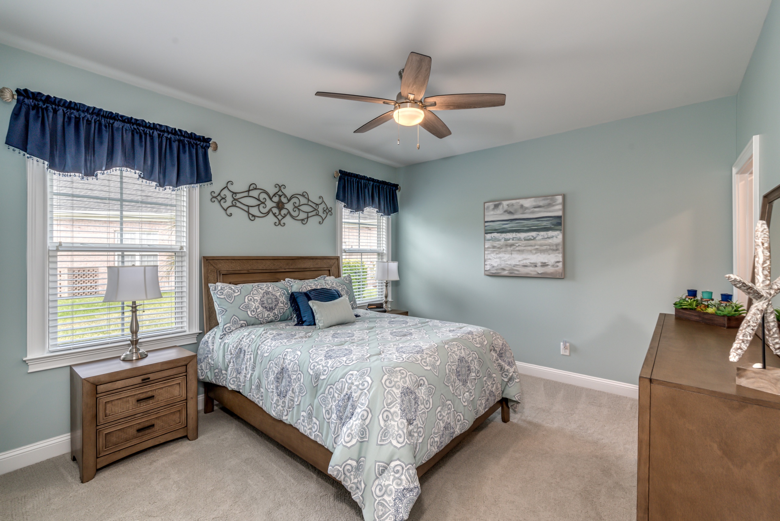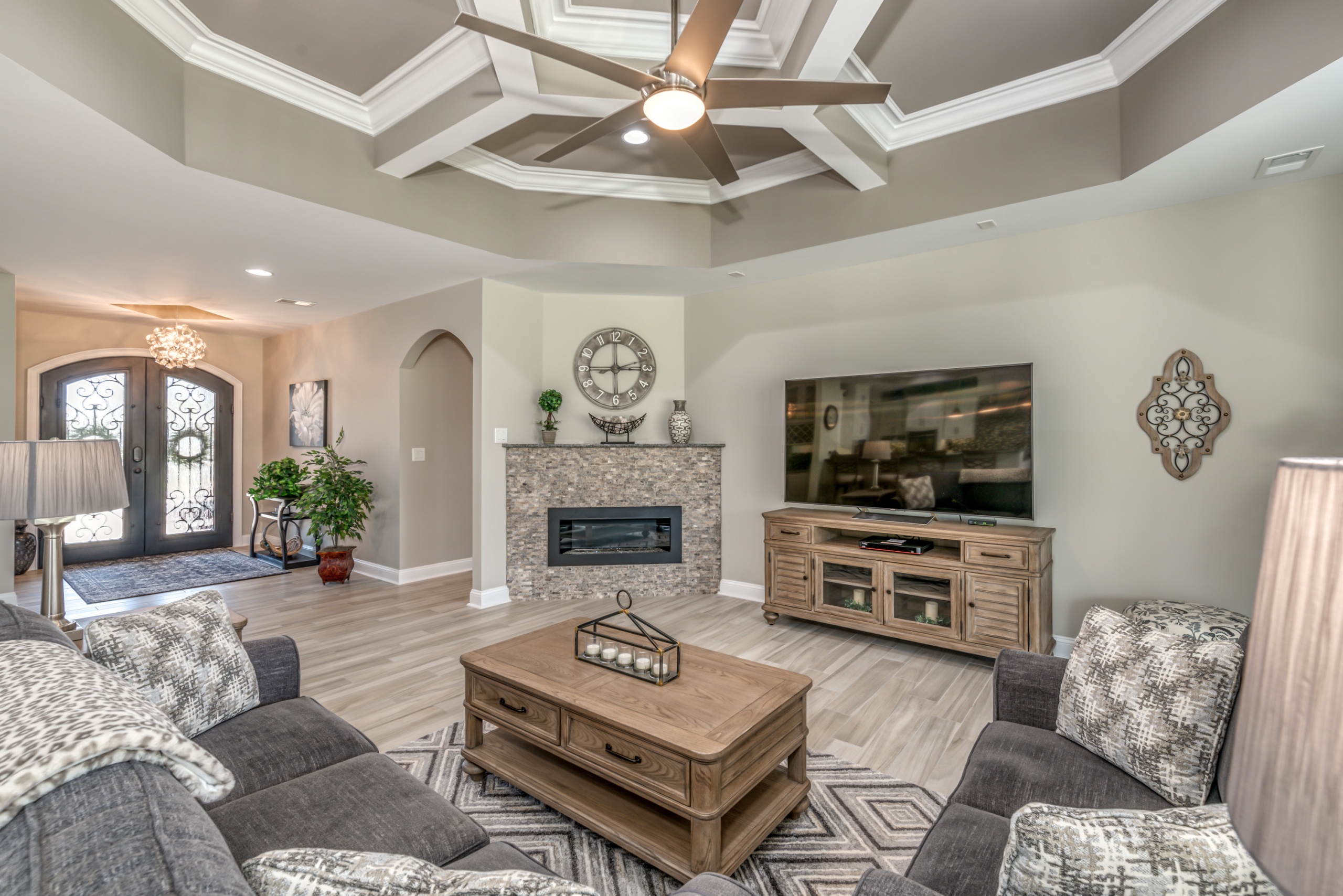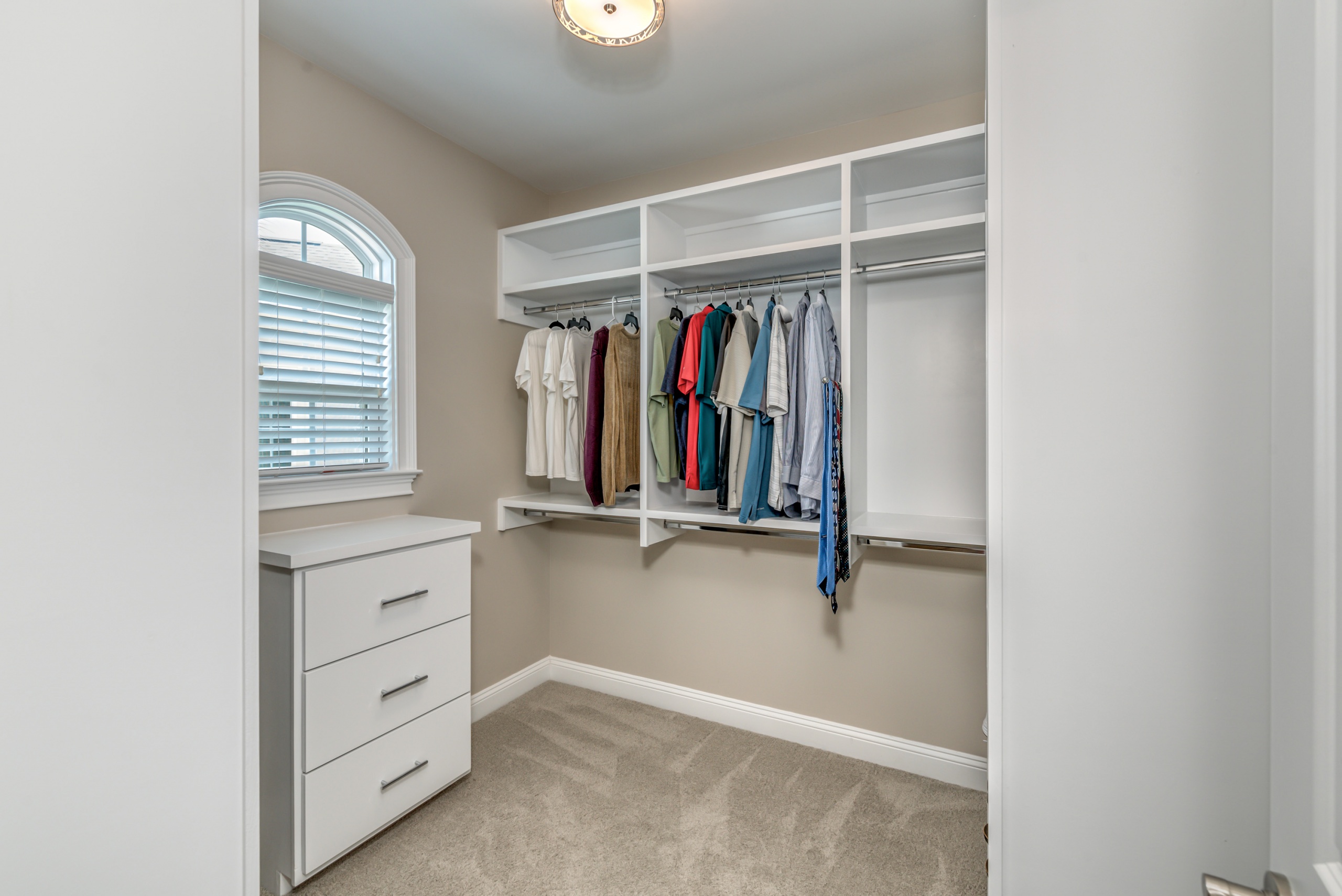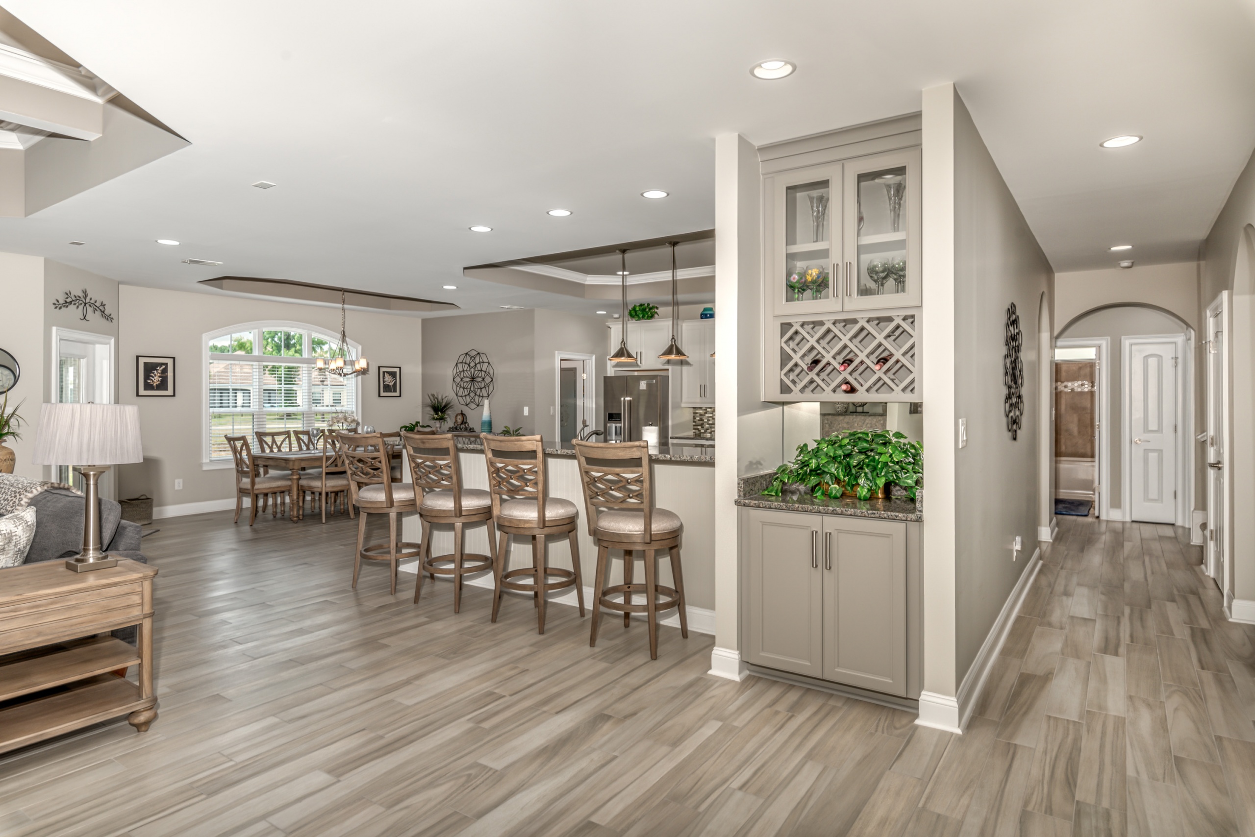 The Owner’s Suite and the kitchen will be a hotly debated issue regarding which will be your favorite room. The owner's suite encompasses the entire left-hand side of the home. The sleeping area is large enough to accommodate a sitting space, a king-sized bed, and traditional bedroom furniture. In the master bathroom, you are afforded two oversized walk-in closets, a double bowl vanity, a Whirlpool tub, and a dual-headed, corner walk-in shower. Additionally, as a bonus, you have a separate shoe closet with custom built-ins to keep all your footwear organized.