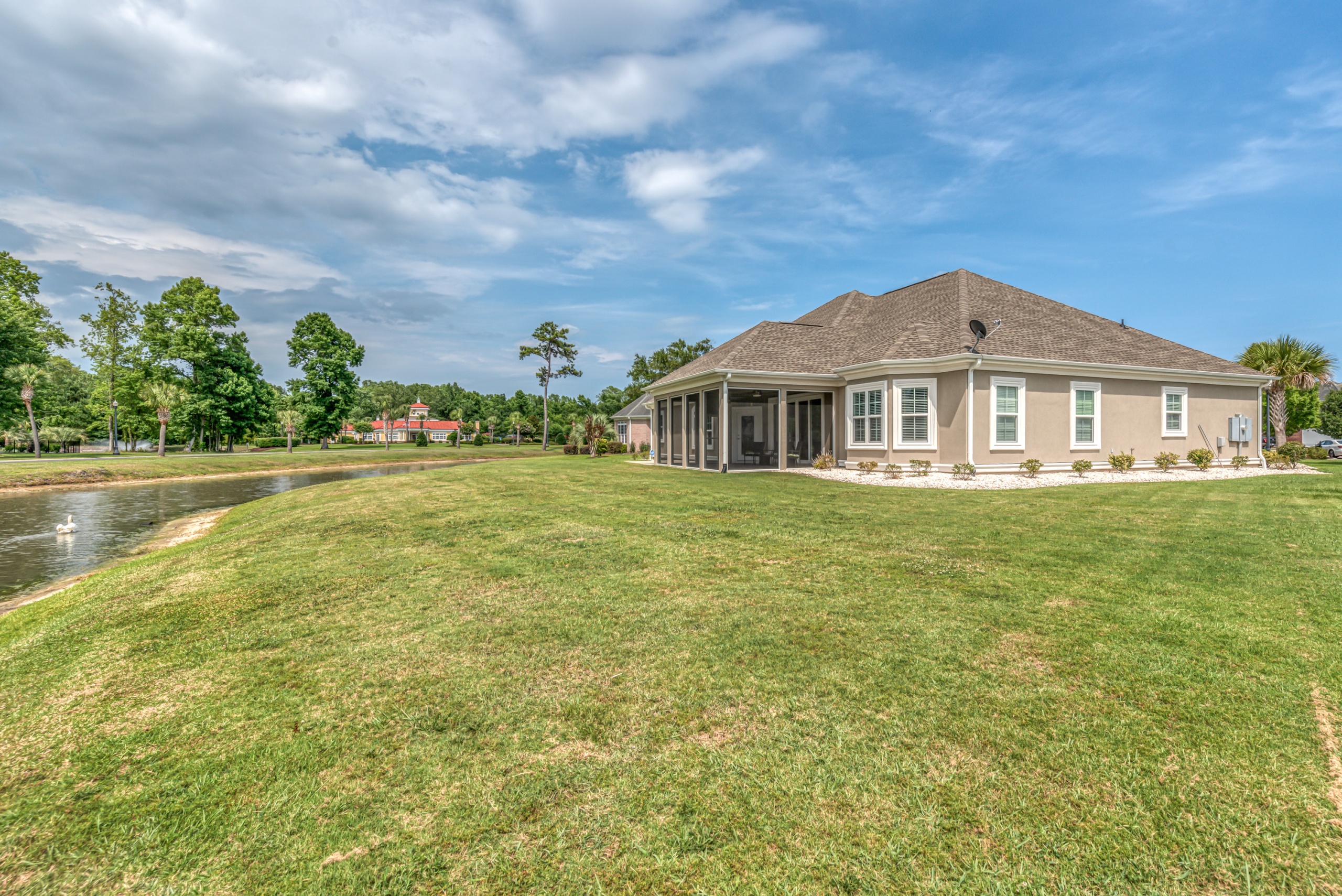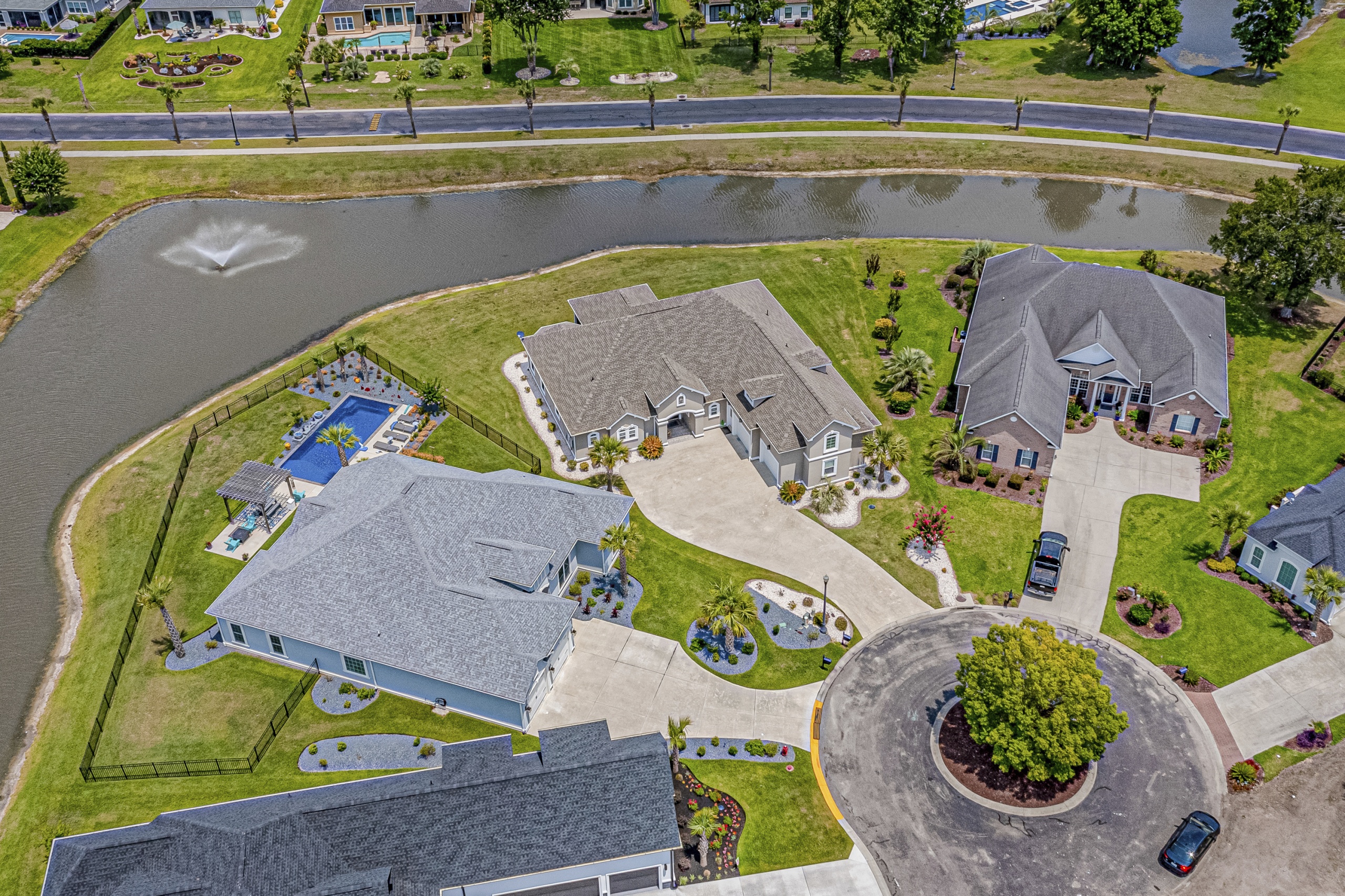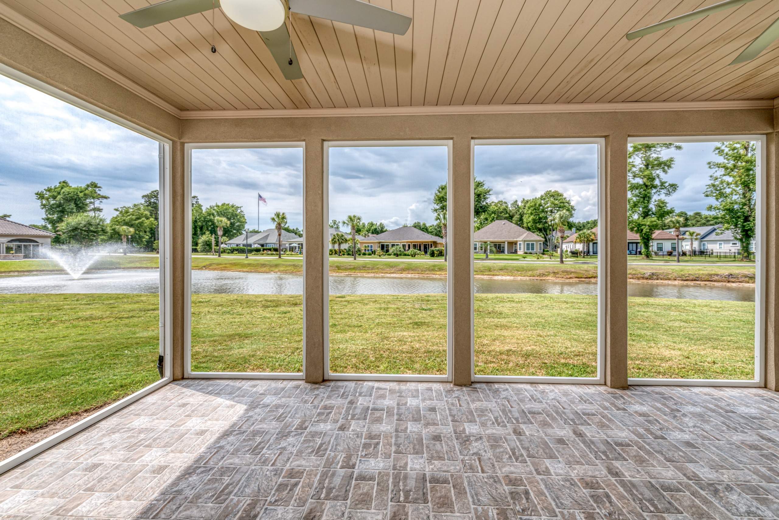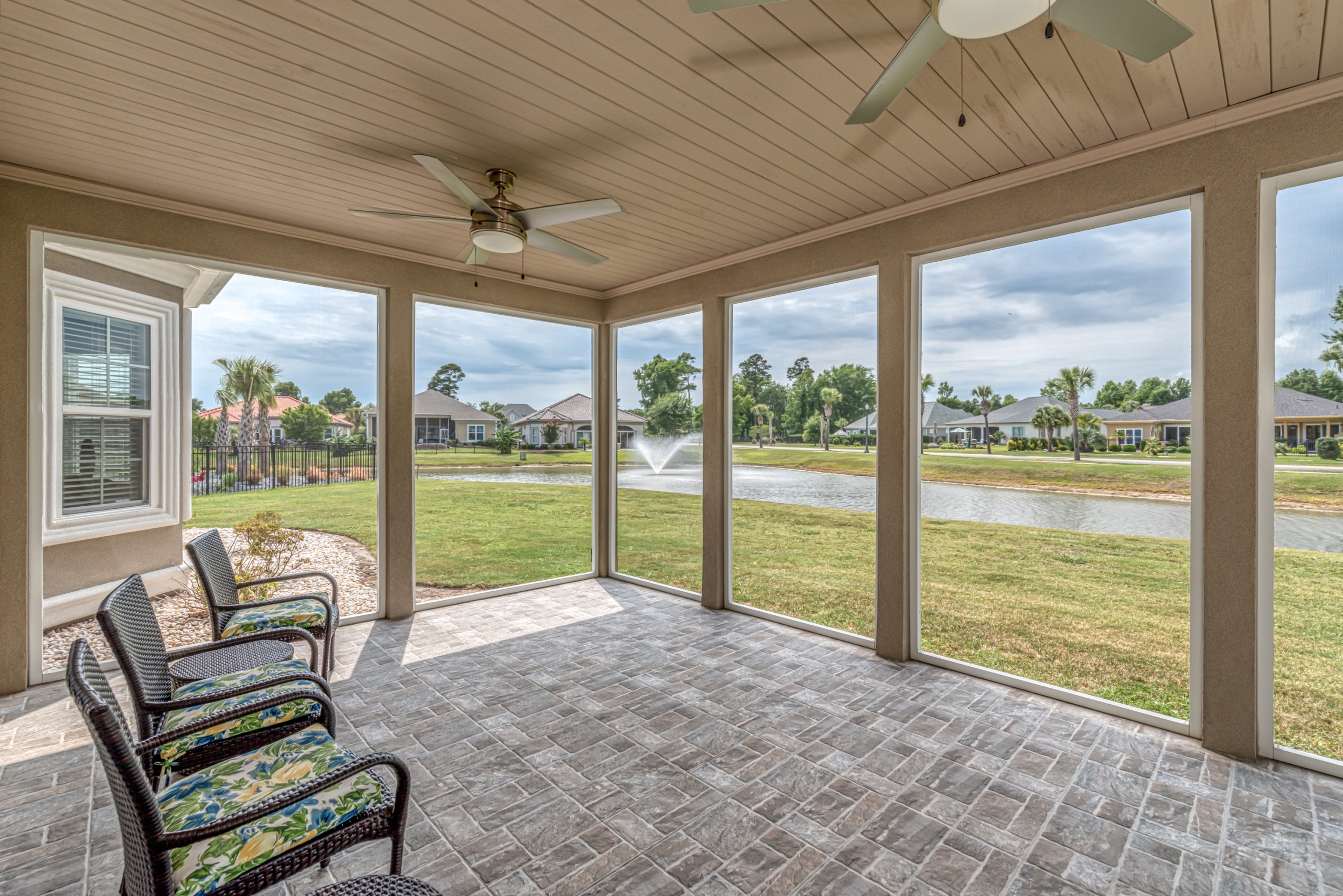 Rounding out the main level of the home are three additional bedrooms, a generously sized laundry room, a large screen porch, and ample storage closets. One of the guest bedrooms features an ensuite bathroom, and the remaining two share a hall bathroom. The screen porch will provide countless hours of tranquility with a serene view of the lake and water fountain. The laundry room has plenty of space to add built-in cubbies or cabinets. Laundry will almost be enjoyable in this great space. Upstairs the massive bonus room can function as a 5th bedroom, which includes a full bath and clothes closet…great for an in-law suite, workout room, media room, living room, or a combination of any of these options. Additionally, the bonus room has a walkthrough attic space to store all your excess items.