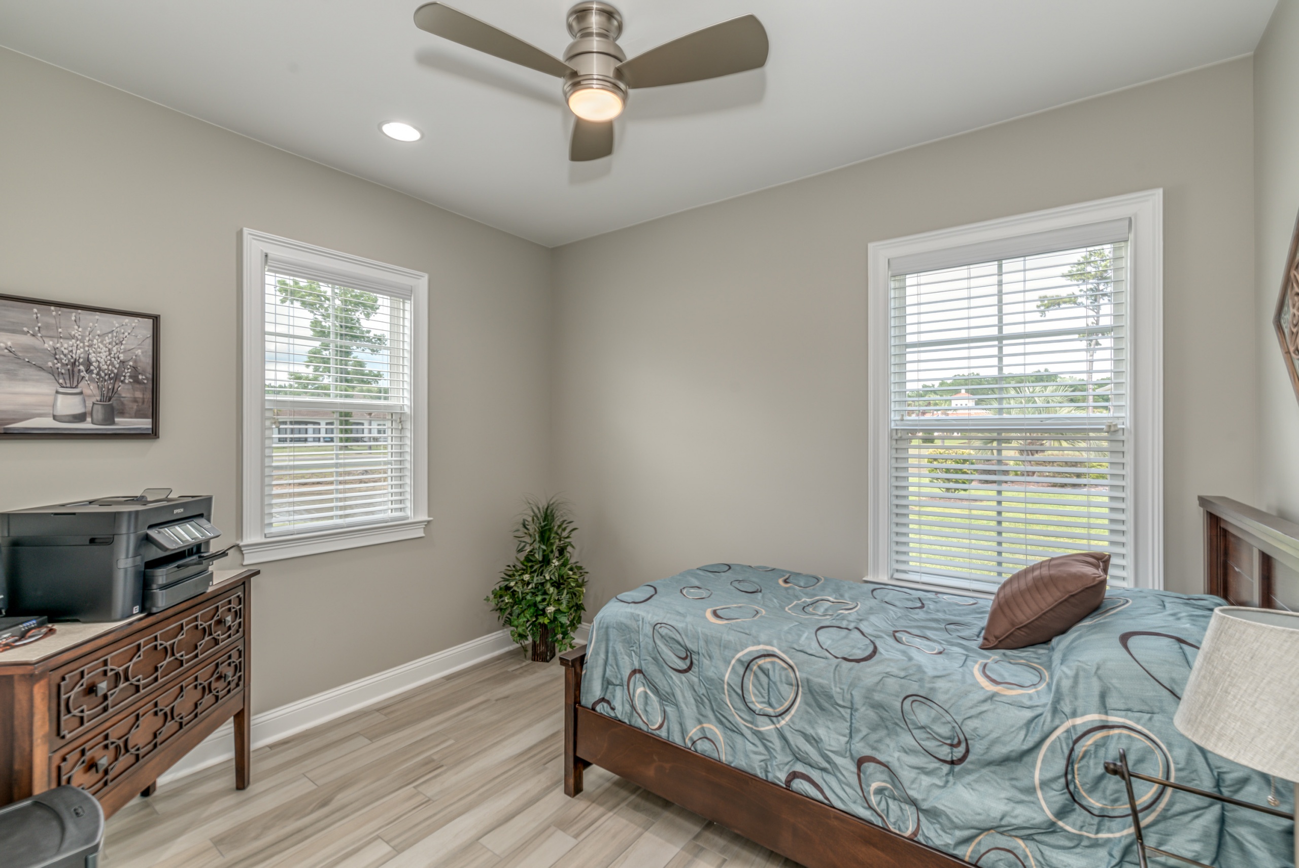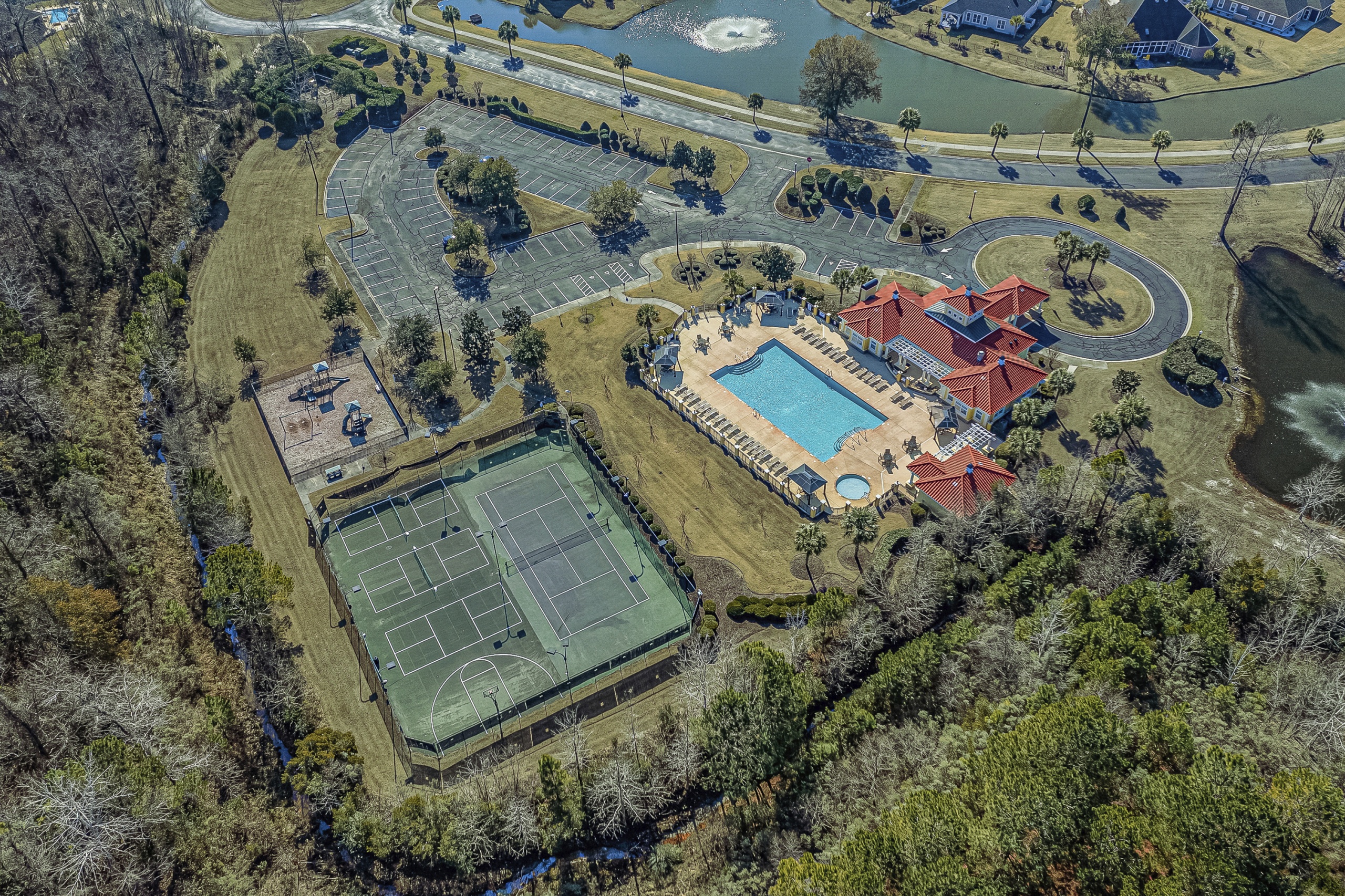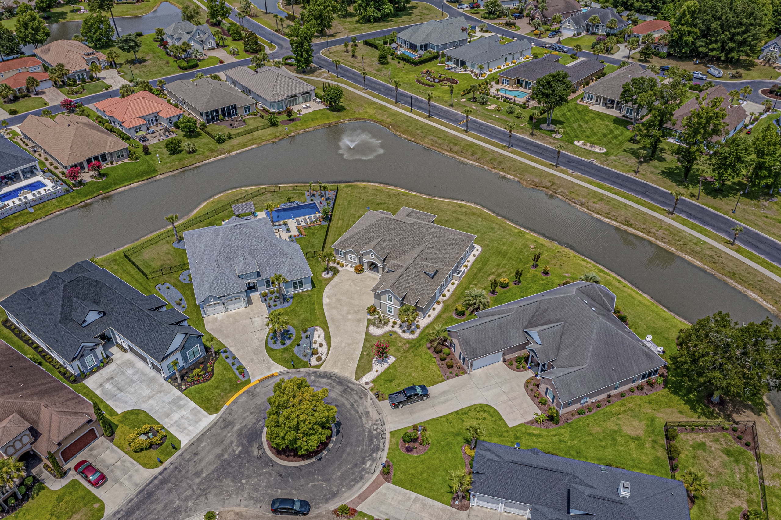 Rounding out the main level of the home are three additional bedrooms, a generously sized laundry room, a large screen porch, and ample storage closets. One of the guest bedrooms features an ensuite bathroom, and the remaining two share a hall bathroom. The screen porch will provide countless hours of tranquility with a serene view of the lake and water fountain. The laundry room has plenty of space to add built-in cubbies or cabinets. Laundry will almost be enjoyable in this great space. Upstairs the massive bonus room can function as a 5th bedroom, which includes a full bath and clothes closet…great for an in-law suite, workout room, media room, living room, or a combination of any of these options. Additionally, the bonus room has a walkthrough attic space to store all your excess items.