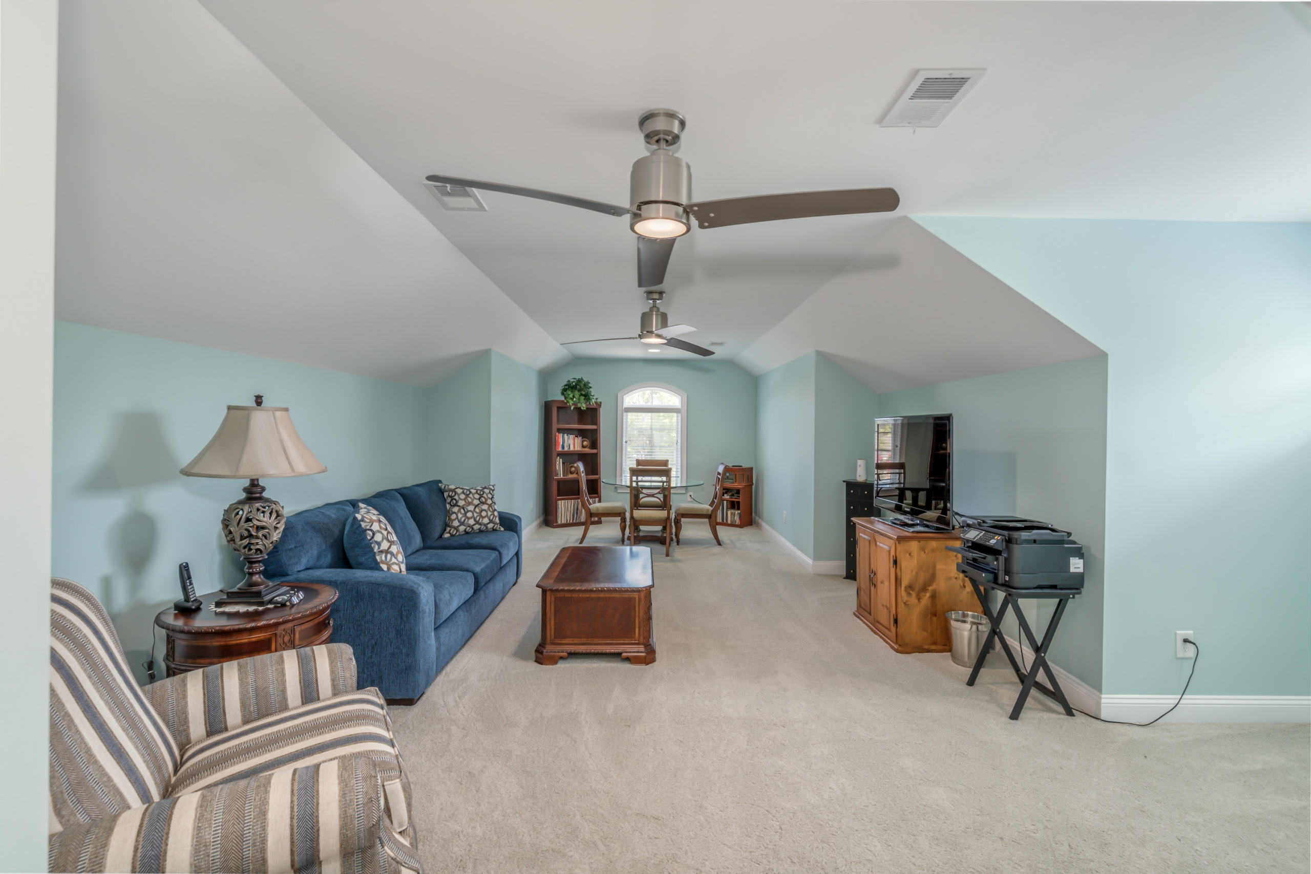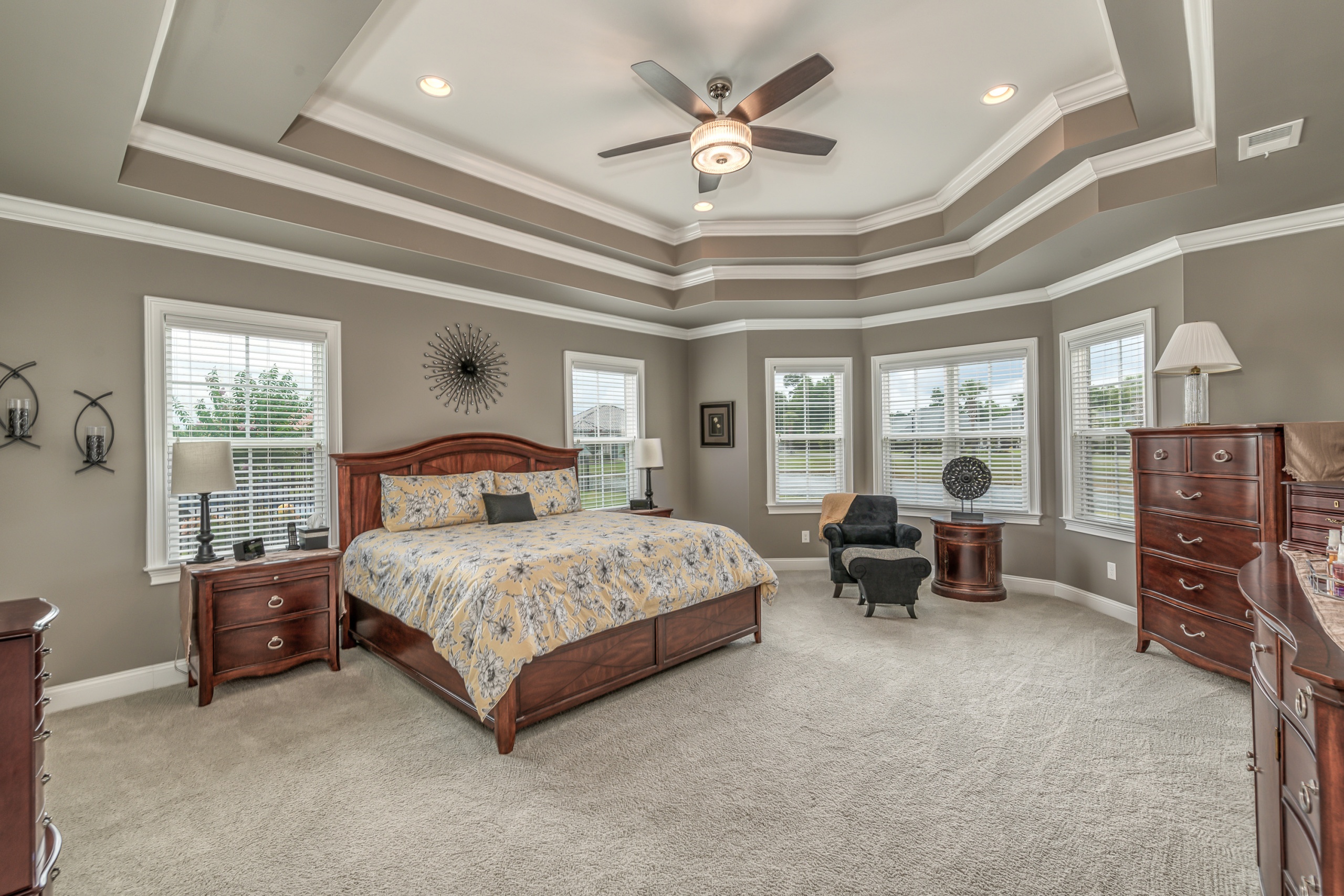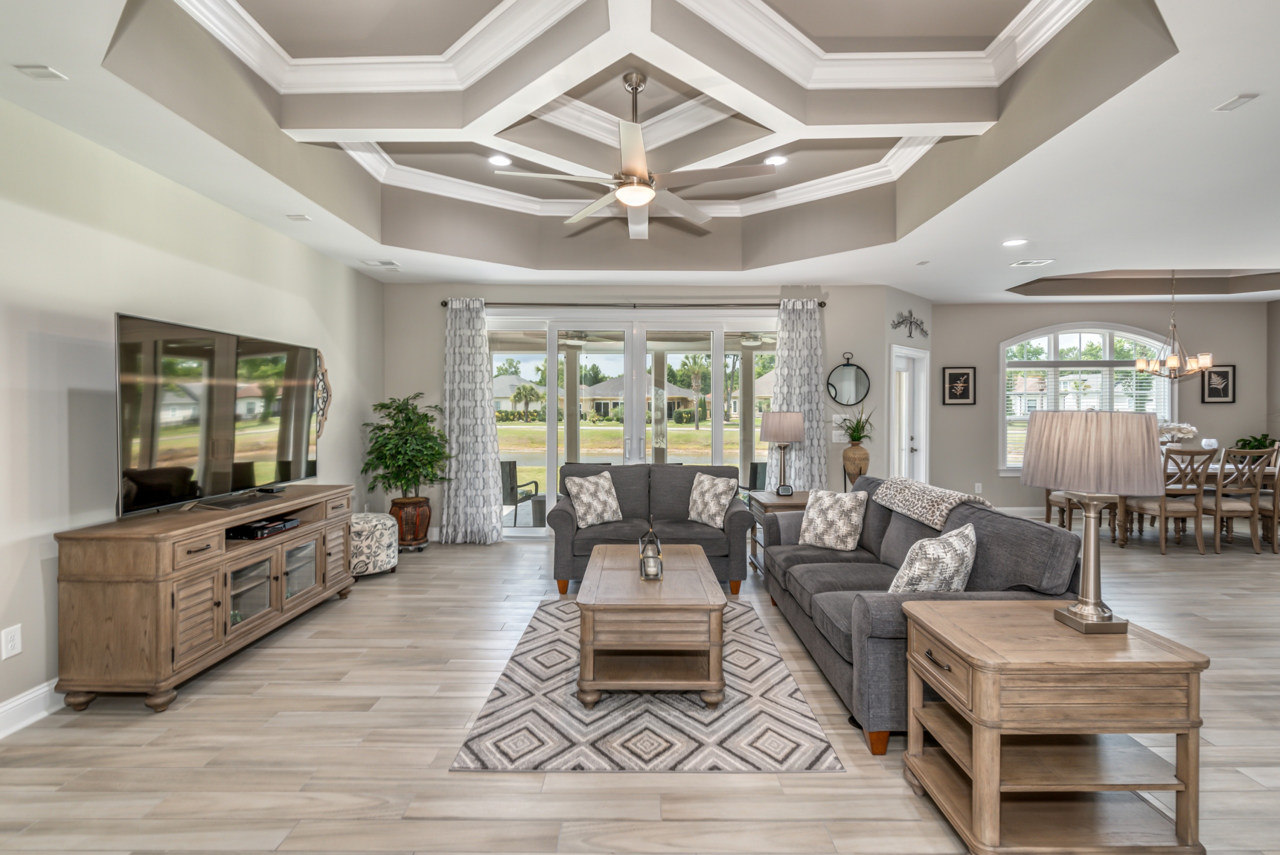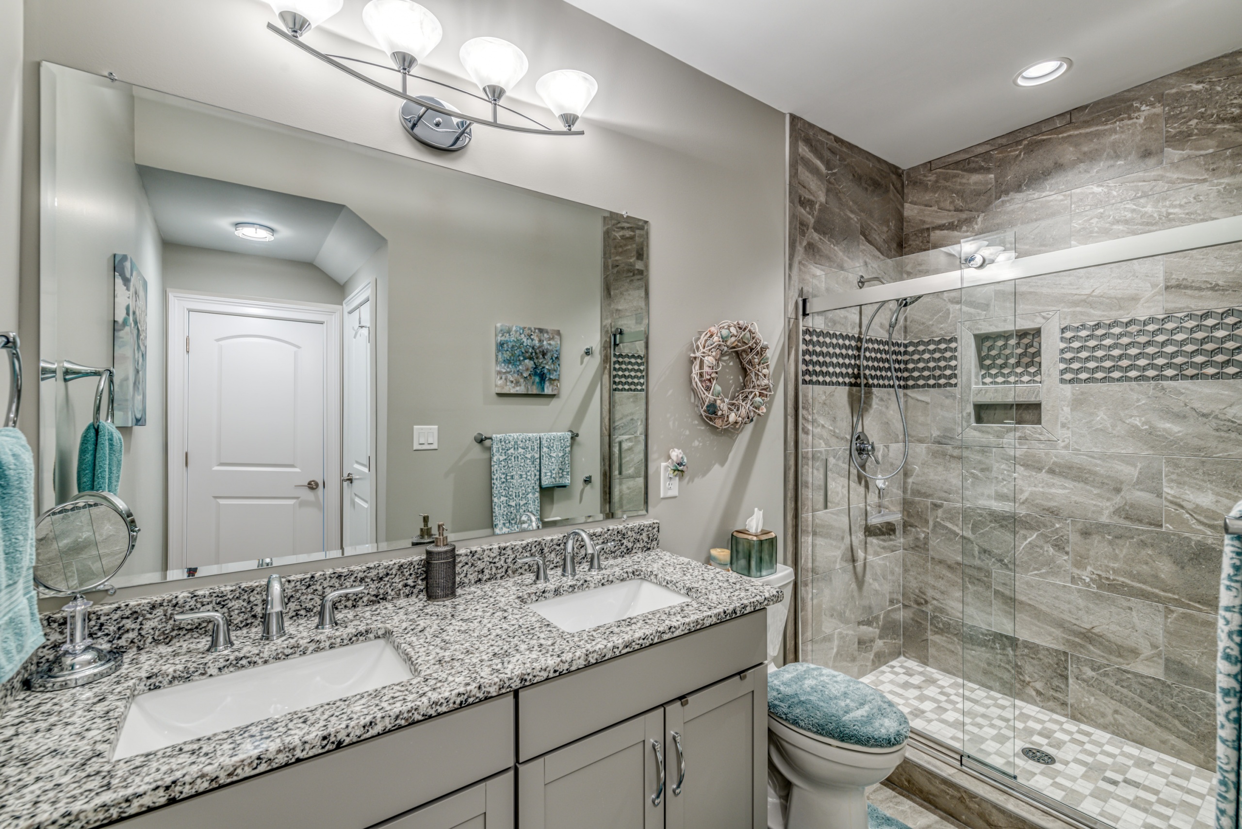 Rounding out the main level of the home are three additional bedrooms, a generously sized laundry room, a large screen porch, and ample storage closets. One of the guest bedrooms features an ensuite bathroom, and the remaining two share a hall bathroom. The screen porch will provide countless hours of tranquility with a serene view of the lake and water fountain. The laundry room has plenty of space to add built-in cubbies or cabinets. Laundry will almost be enjoyable in this great space. Upstairs the massive bonus room can function as a 5th bedroom, which includes a full bath and clothes closet…great for an in-law suite, workout room, media room, living room, or a combination of any of these options. Additionally, the bonus room has a walkthrough attic space to store all your excess items.