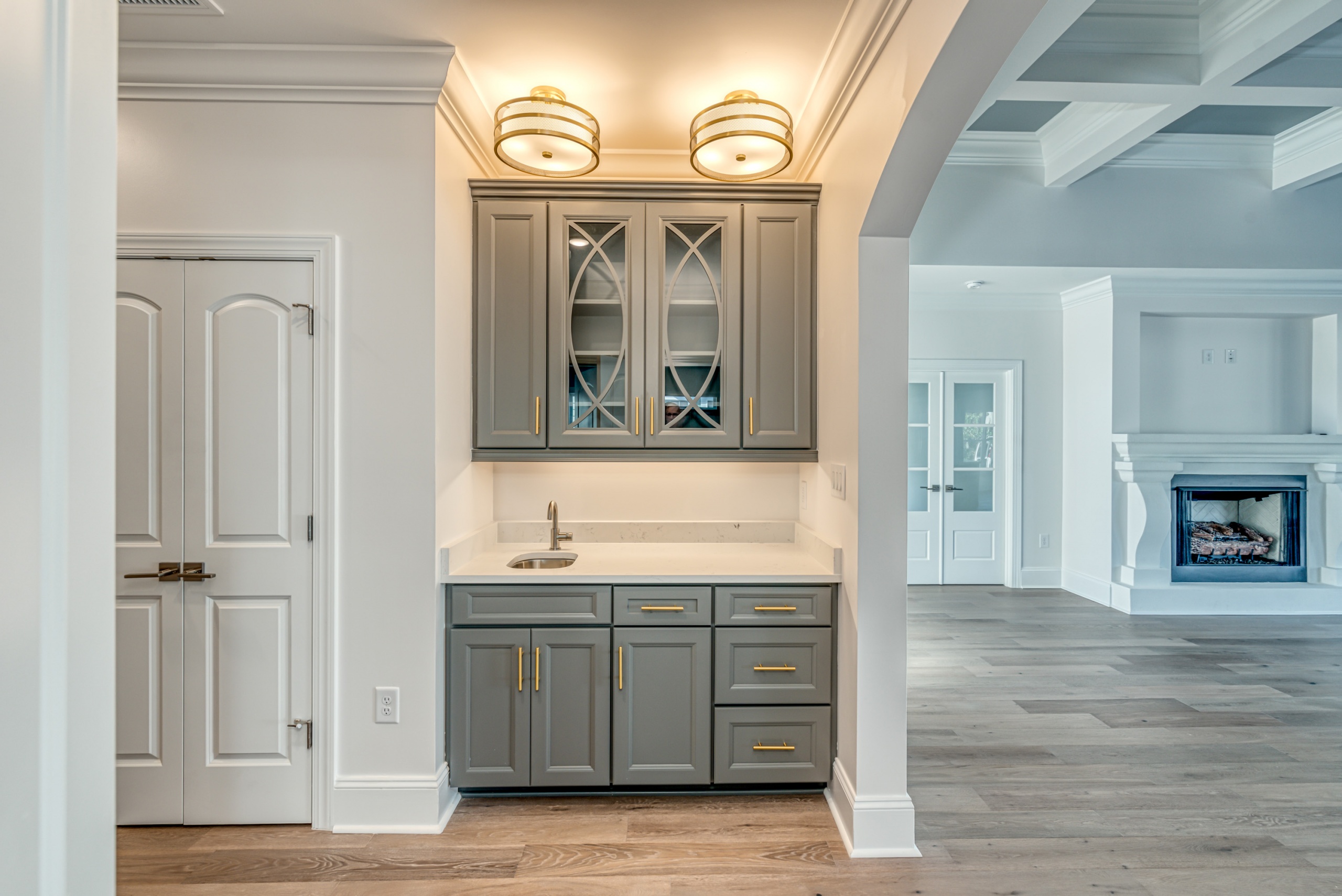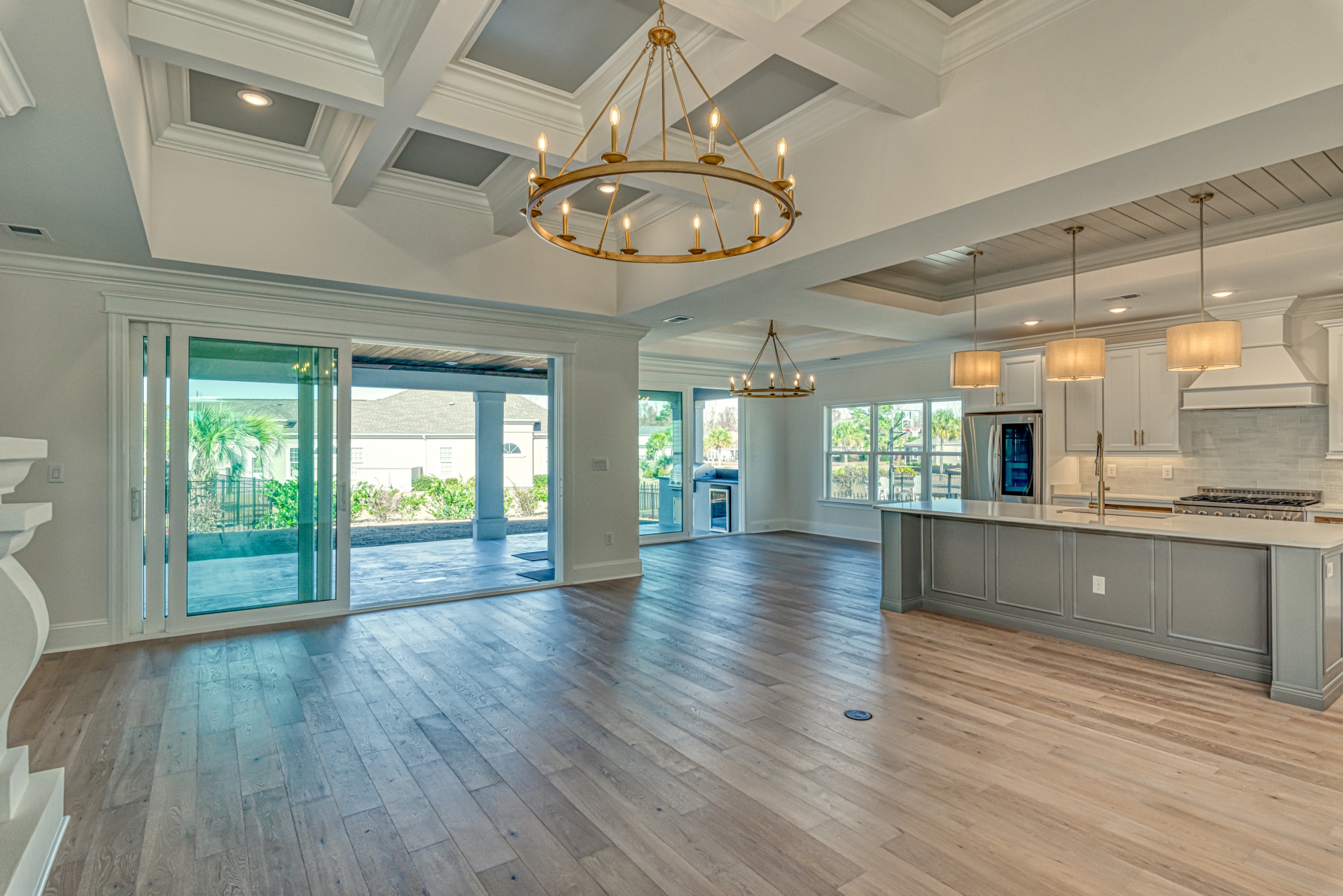 The main living area of 902 Bluffview Drive has beautiful sightlines and ample natural light. Coffered ceilings and a stucco fireplace accent the beautiful living area. The well-appointed kitchen has a gas range, wall oven, convection microwave, and a beverage center. Two multi-panel sliding glass doors line the backside of the home and open onto a large covered patio and summer kitchen. Do not miss out on this new construction offering in one of Myrtle Beach's sought-after communities.