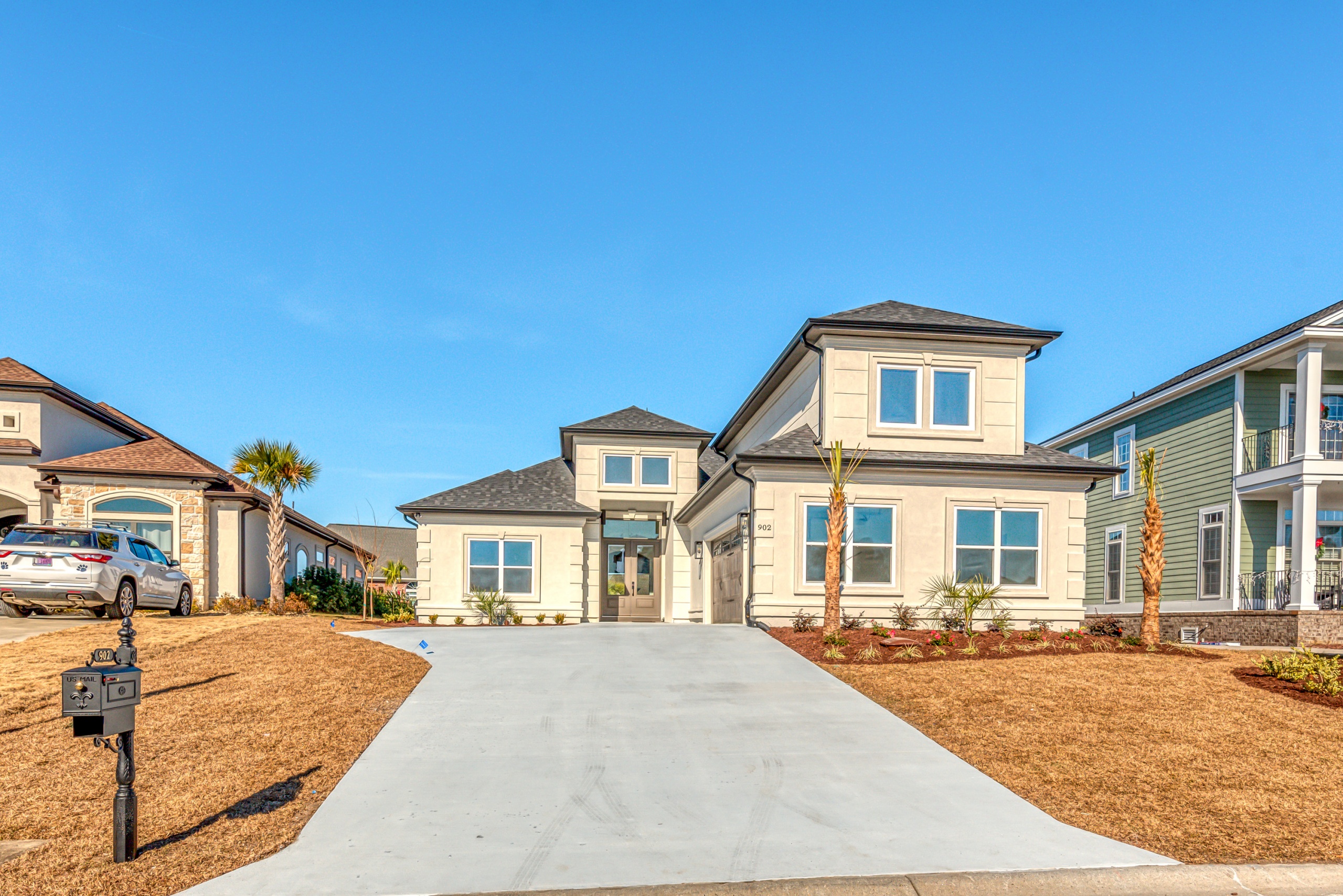 902 Bluffview Drive is a rare find in The Bluffs on the Waterway. Predominately one level, this new construction home is much bigger than the numbers read. An elegant foyer in this single-floor home greets you with extensive crown molding, shadow boxes, and a multi-level tray ceiling. Positioned on the front right side of the house are a guest bedroom and a study that could function as an additional bedroom. The owner's retreat, featuring his & her walk-in closets and five-star bathroom, is on the backside of the home and has a massive walk-in shower.