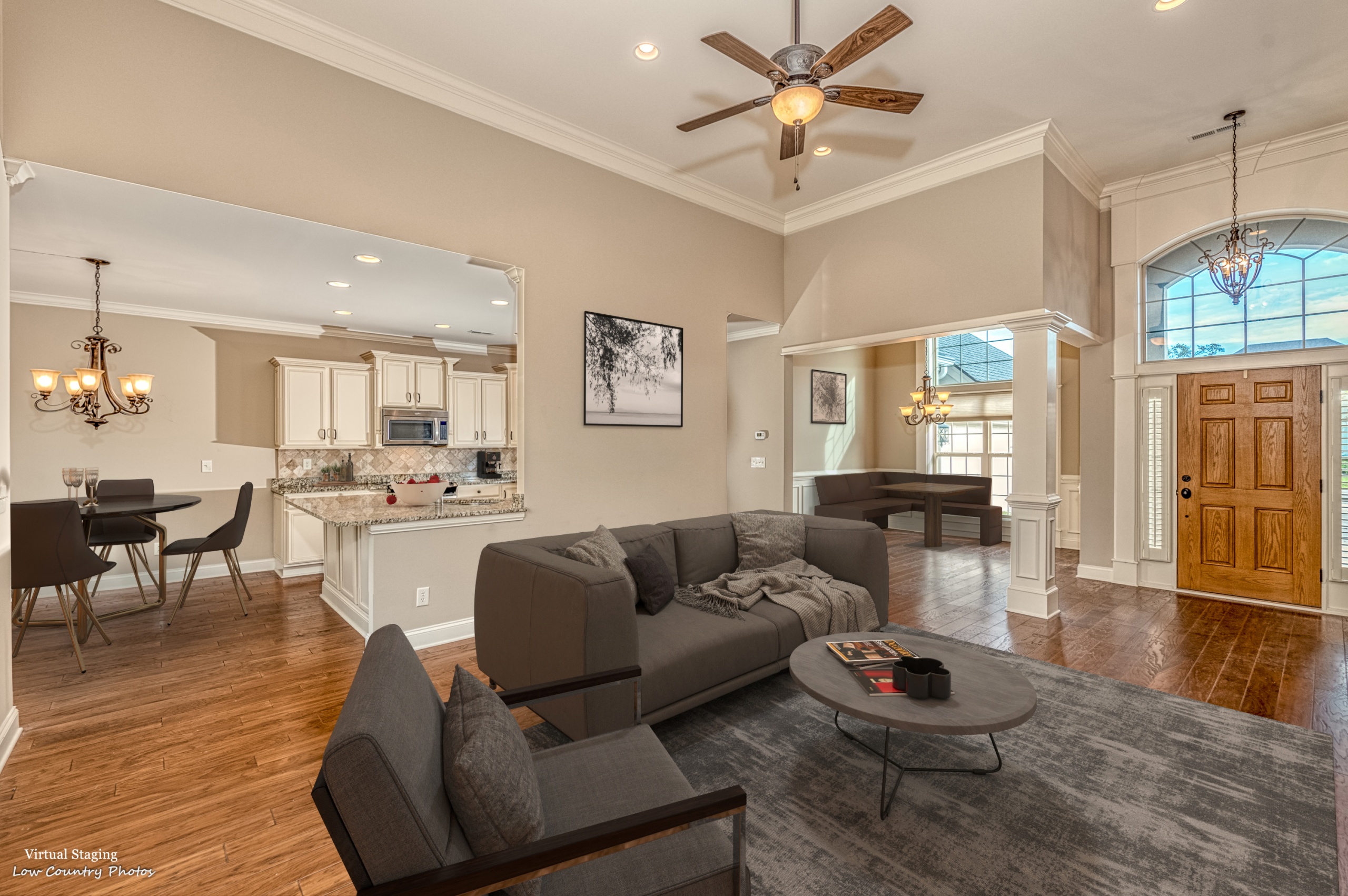 9052 Abingdon Drive is a move-in ready split bedroom floor plan in Plantation Lakes. With three first floor bedrooms and a spacious fourth bedroom or bonus room upstairs, this floor plan has many options. The open floor plan and high ceilings allow ample natural light to flow through the home. Hardwood floors, granite countertops, fireplace, and many other upmarket features accent this great home. A large private backyard is perfect for a pool and has ample privacy.