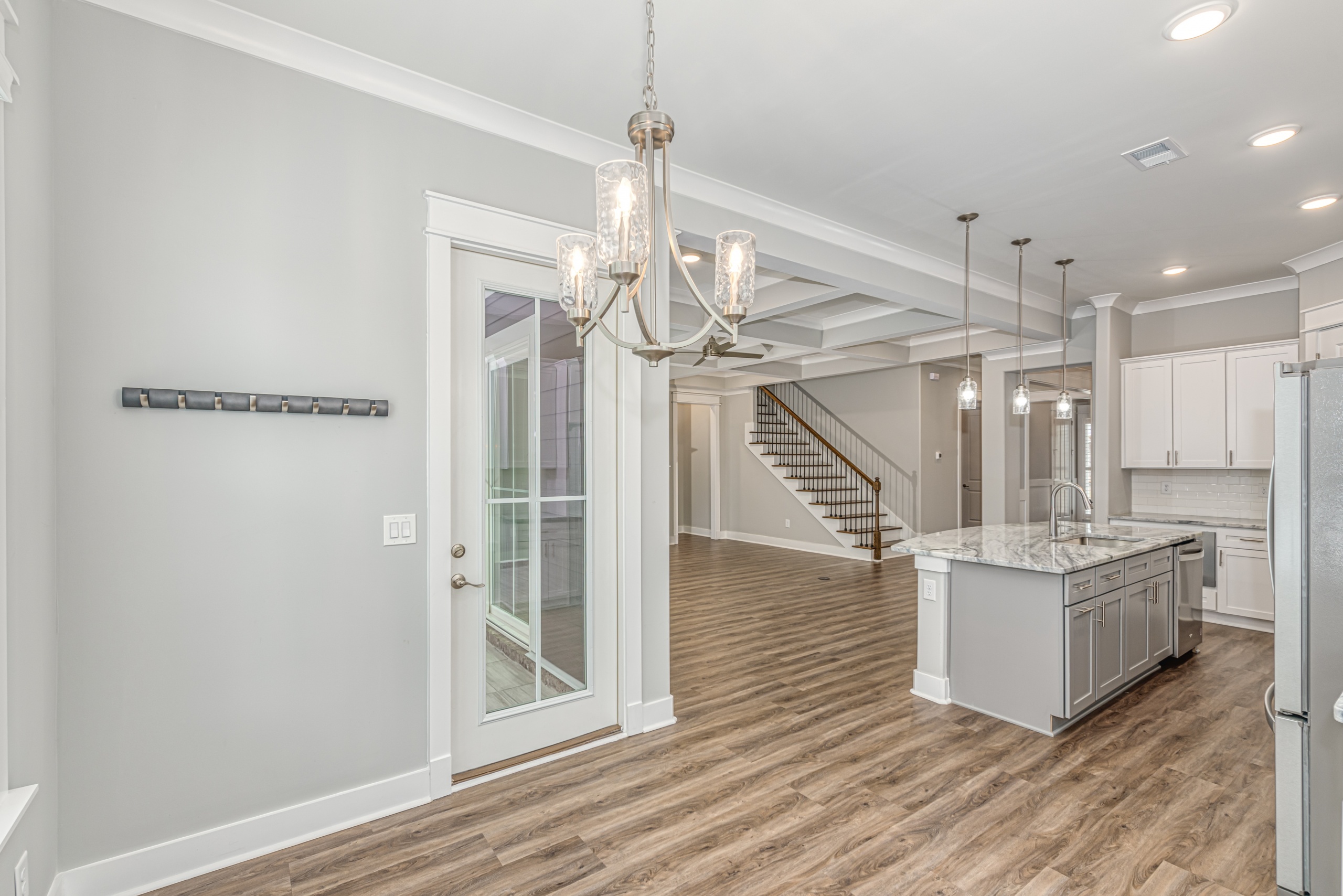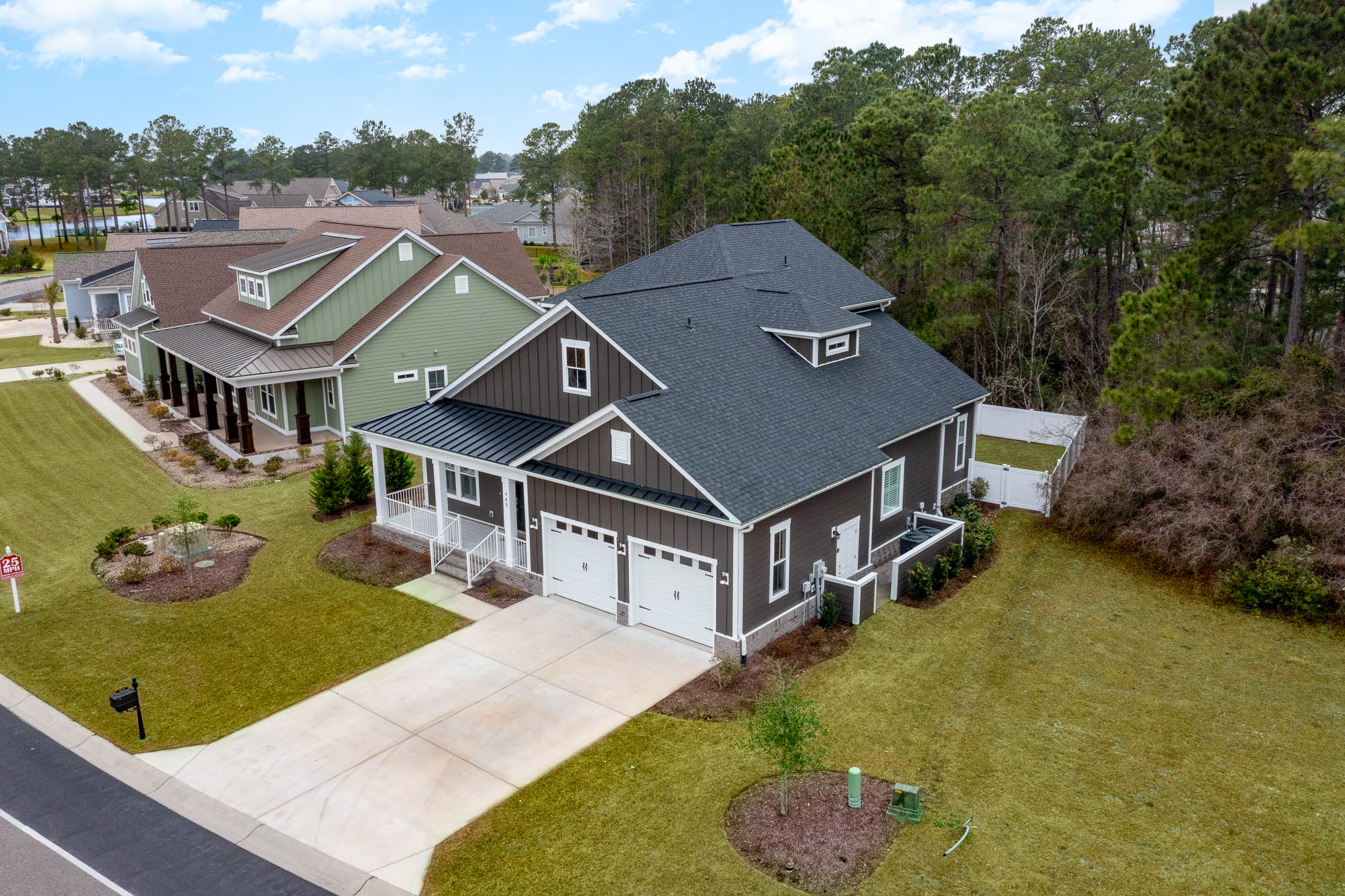 945 Waterbridge Blvd in Carolina Forests Waterbridge community is a fantastic home less than one-year-old. This custom-built home has a great open floor plan with natural light from all angles. Attention to detail is evident at every turn, with extensive moldings, tray ceilings, coffered ceilings, and many more up-market features. A large home office greets you with double glass doors greats you as you come through the front door. Beyond the office, you come to a spacious dining room that is flanked by the large open kitchen and living room. The kitchen has ample cabinet space, granite counters, a breakfast bar, and a breakfast nook with many windows. Tucked privately on the back side of the home is the Owners Retreat. This large bedroom has a to-die-for master bathroom with a freestanding tub, walk-in shower, and double vanity. Rounding out the main level is a laundry room and oversized screen porch with a tranquil natural wooded setting. Upstairs are three guest bedrooms, two bathrooms, and a loft area perfect for a sitting room, work desk, or gaming area.