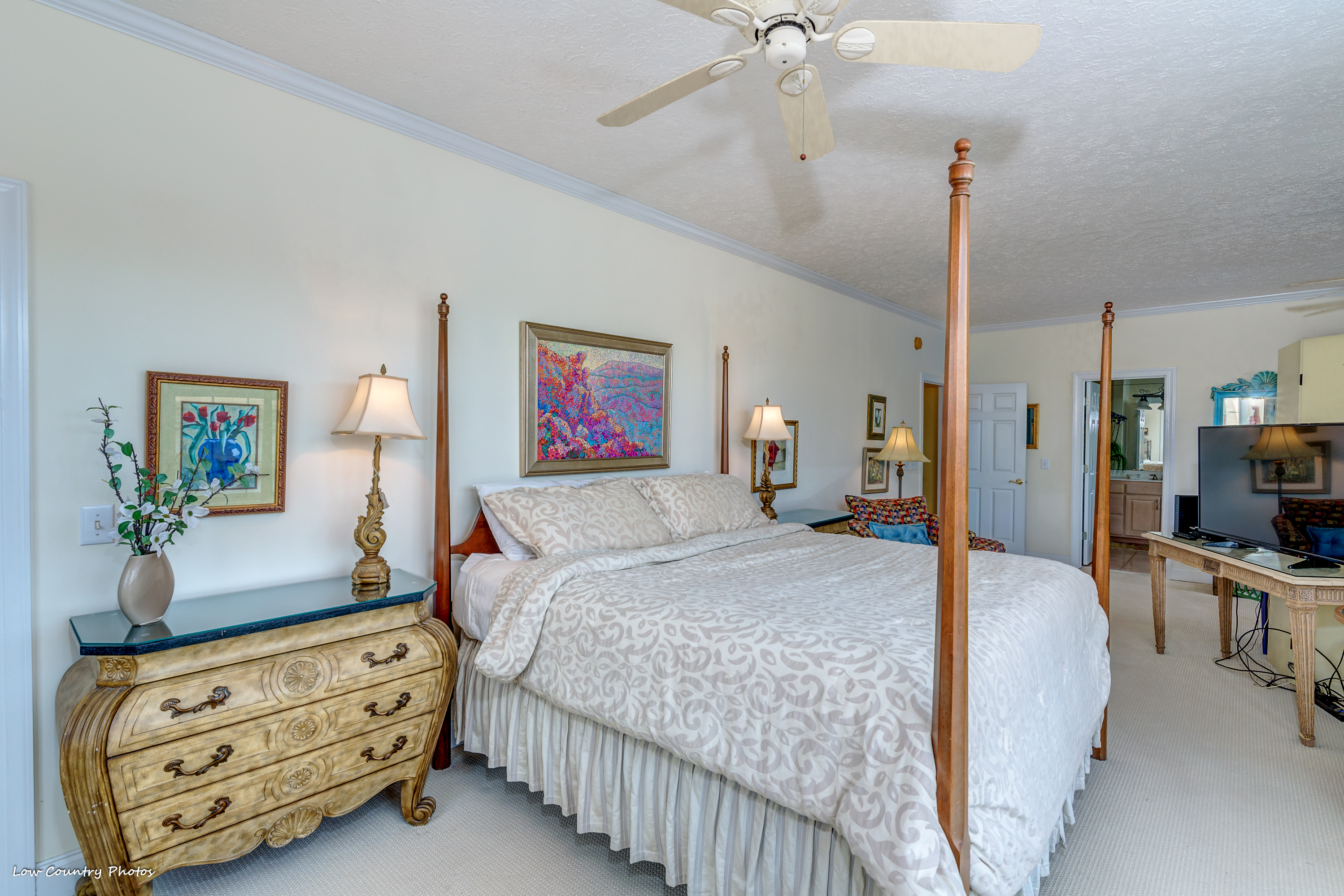 On the top level of the home, a master retreat encompasses the backside of the house. This oversized suite has a large sleeping area and a sitting area that have panoramic views rarely seen. With two walk-in closets and a master bathroom, this is genuinely an Owners Retreat. A private access screen porch is a romantic setting to watch the sunset. Additionally, on this level are two spacious guest bedrooms both with ensuite bathrooms.
