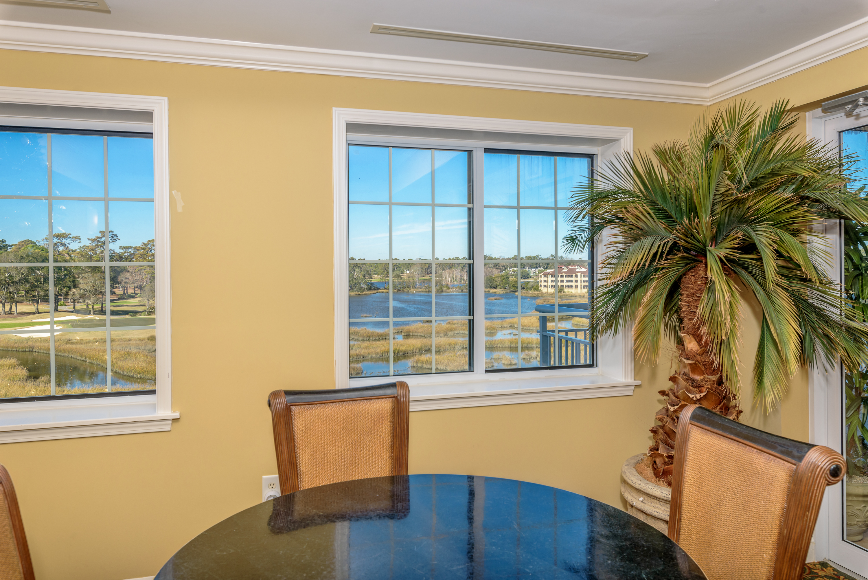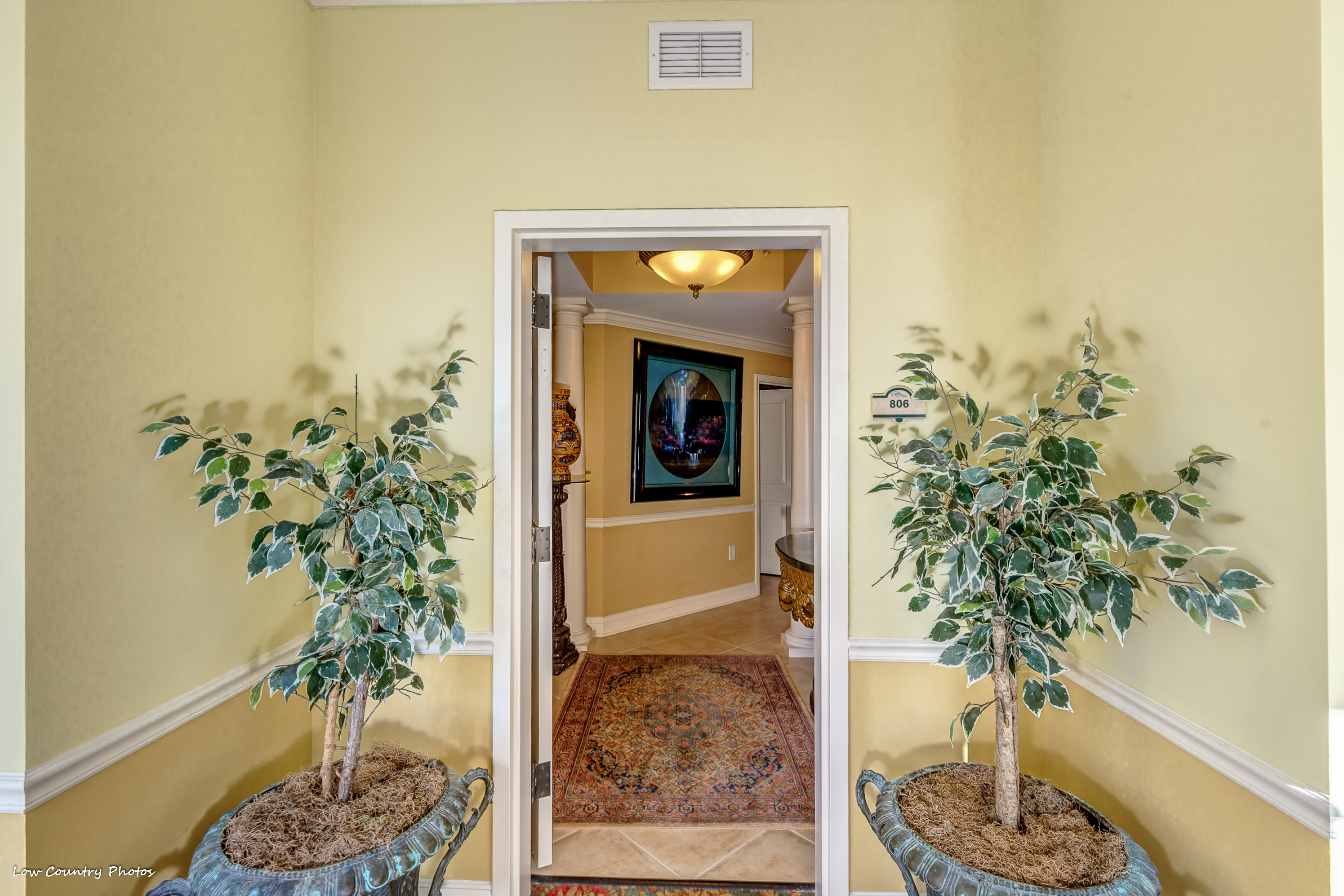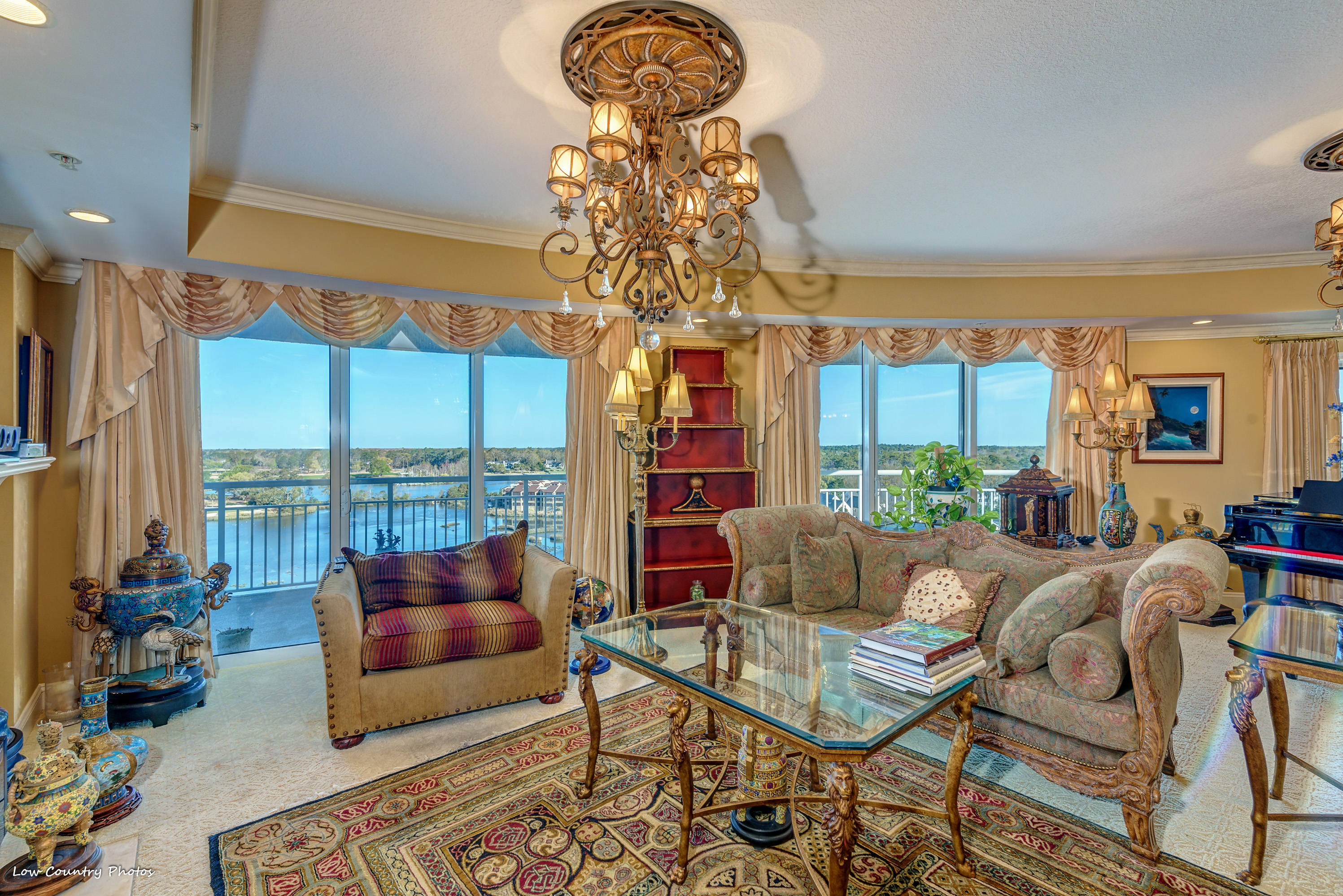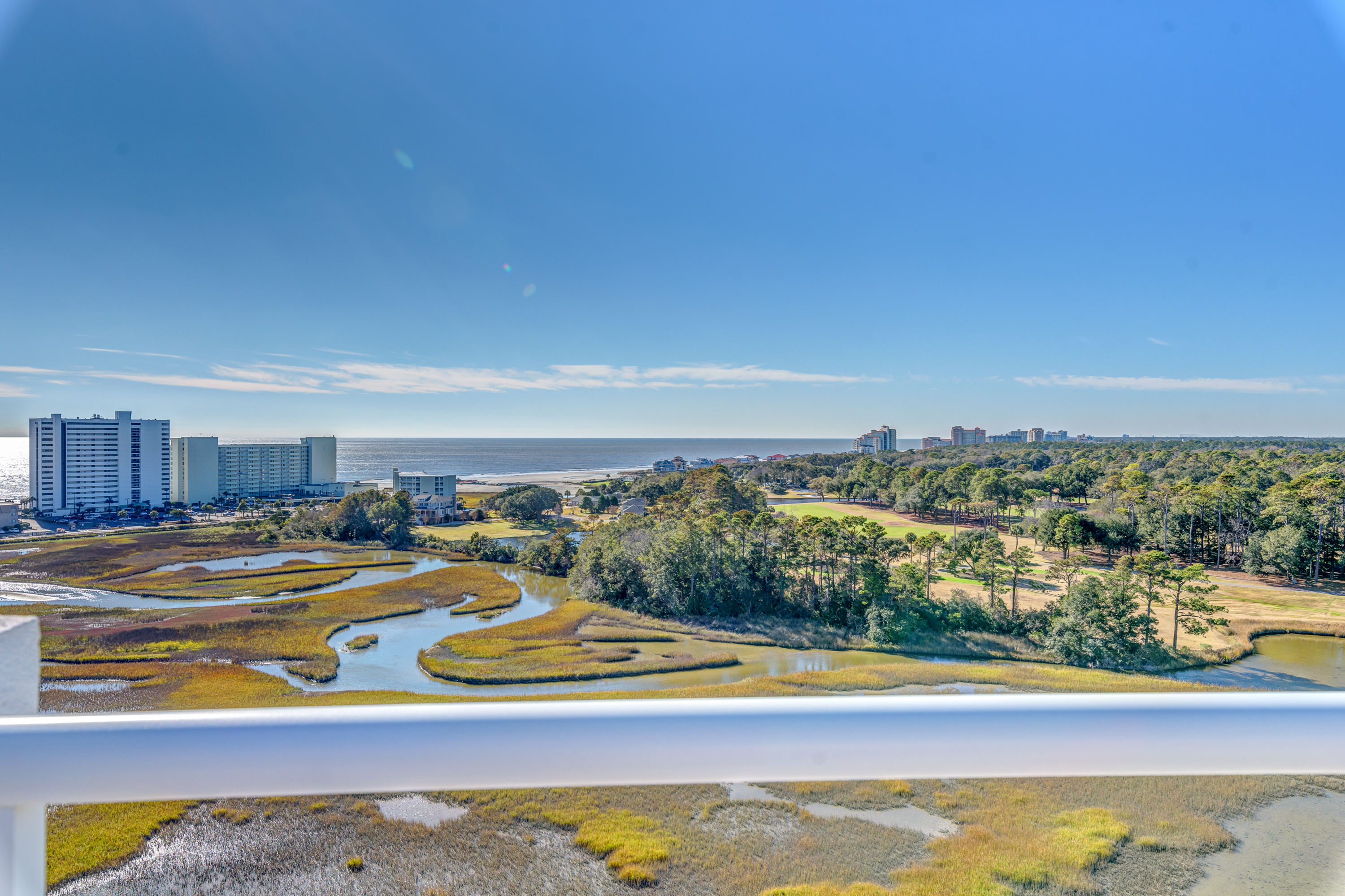 The serene sunrise and sunset views from your home will never get old. Unit 806, with its wrap-around balcony, provides you with unparalleled views of the marsh, golf course, and northern ocean views. With a host of upmarket appointments, this condo has all the requirements of the most discriminating homeowner. The Secure Front Entry Gate and Key-coded lobby entrance not only provides safety but adds a state of elegance comparable to a 5-Star Luxury Resort.