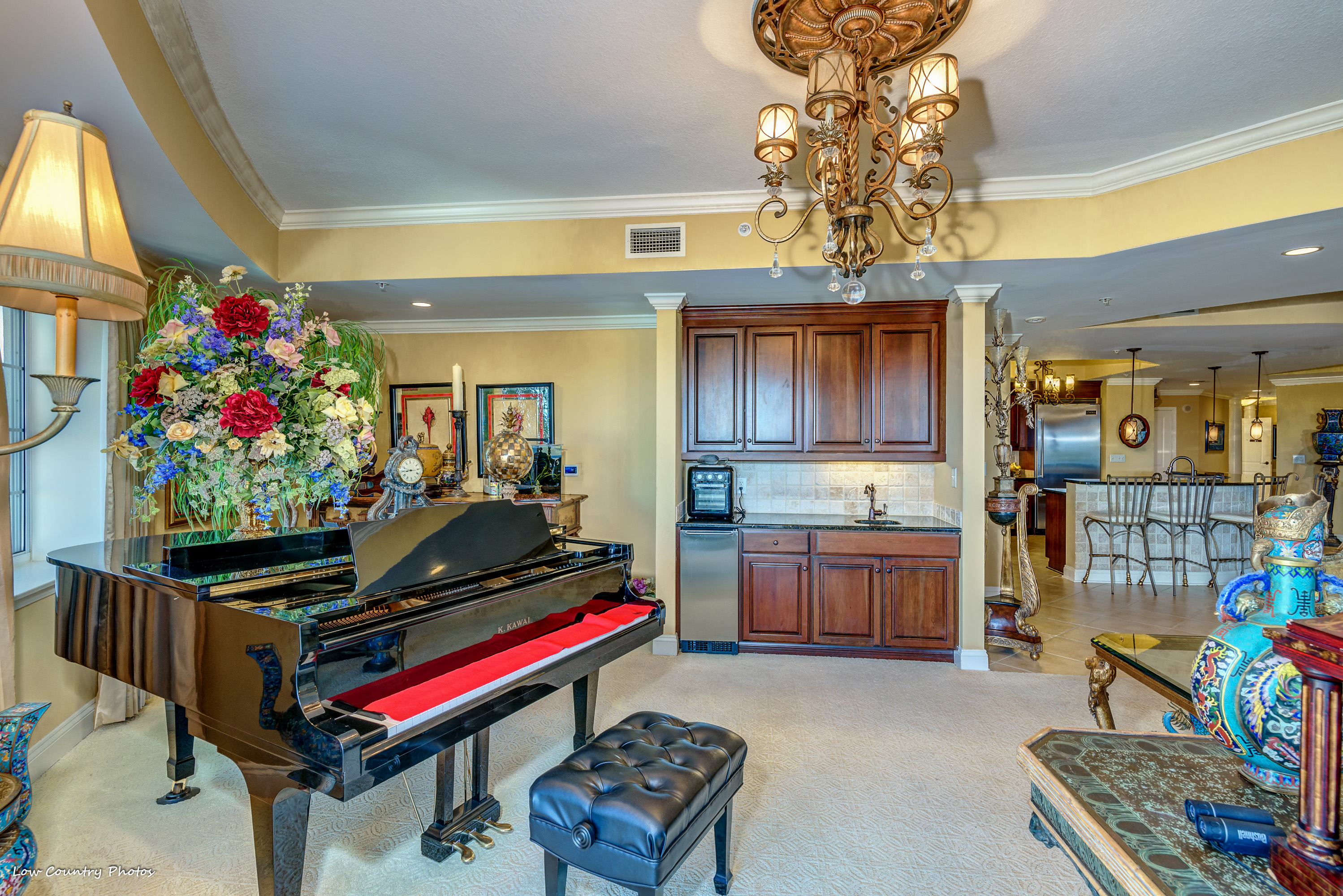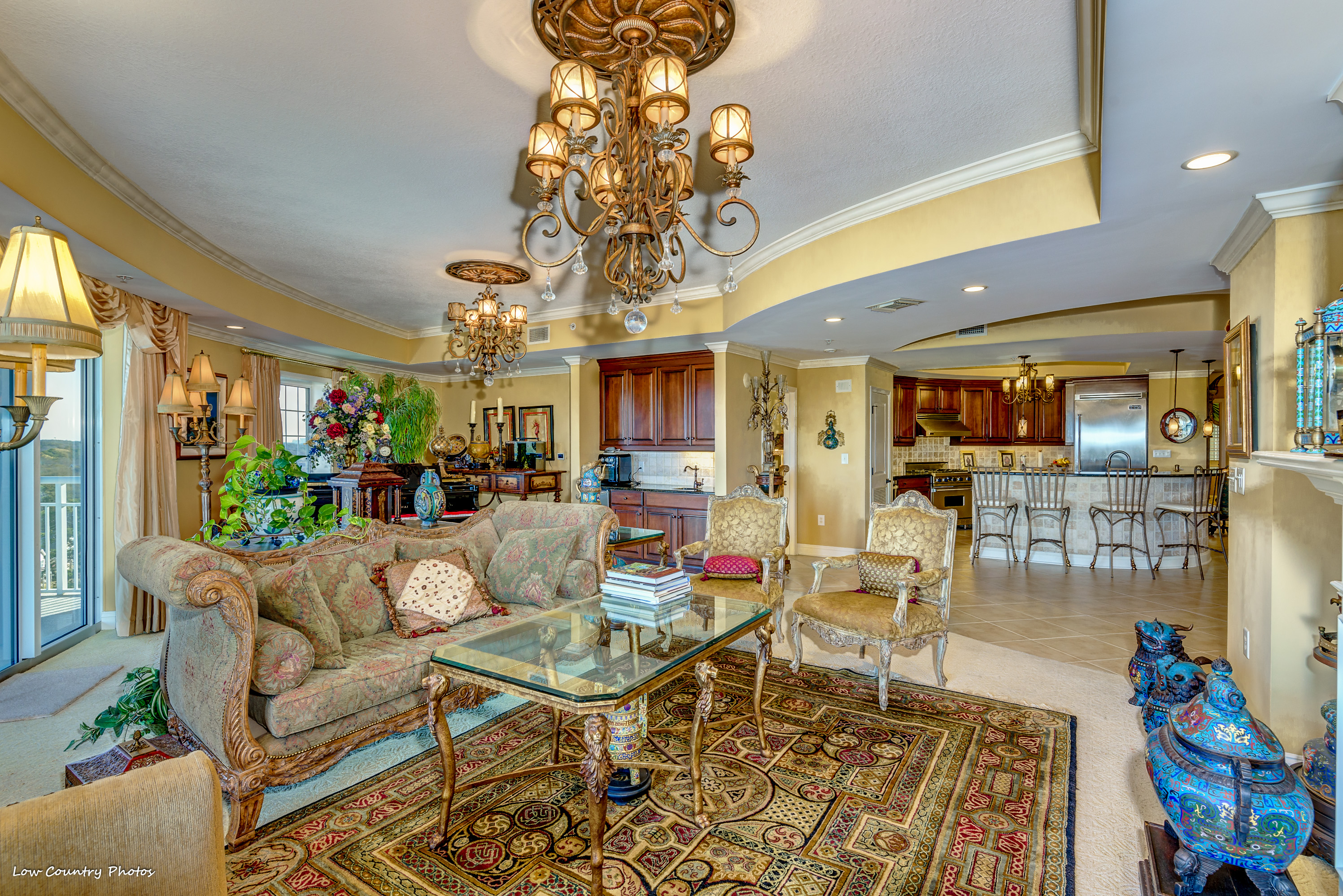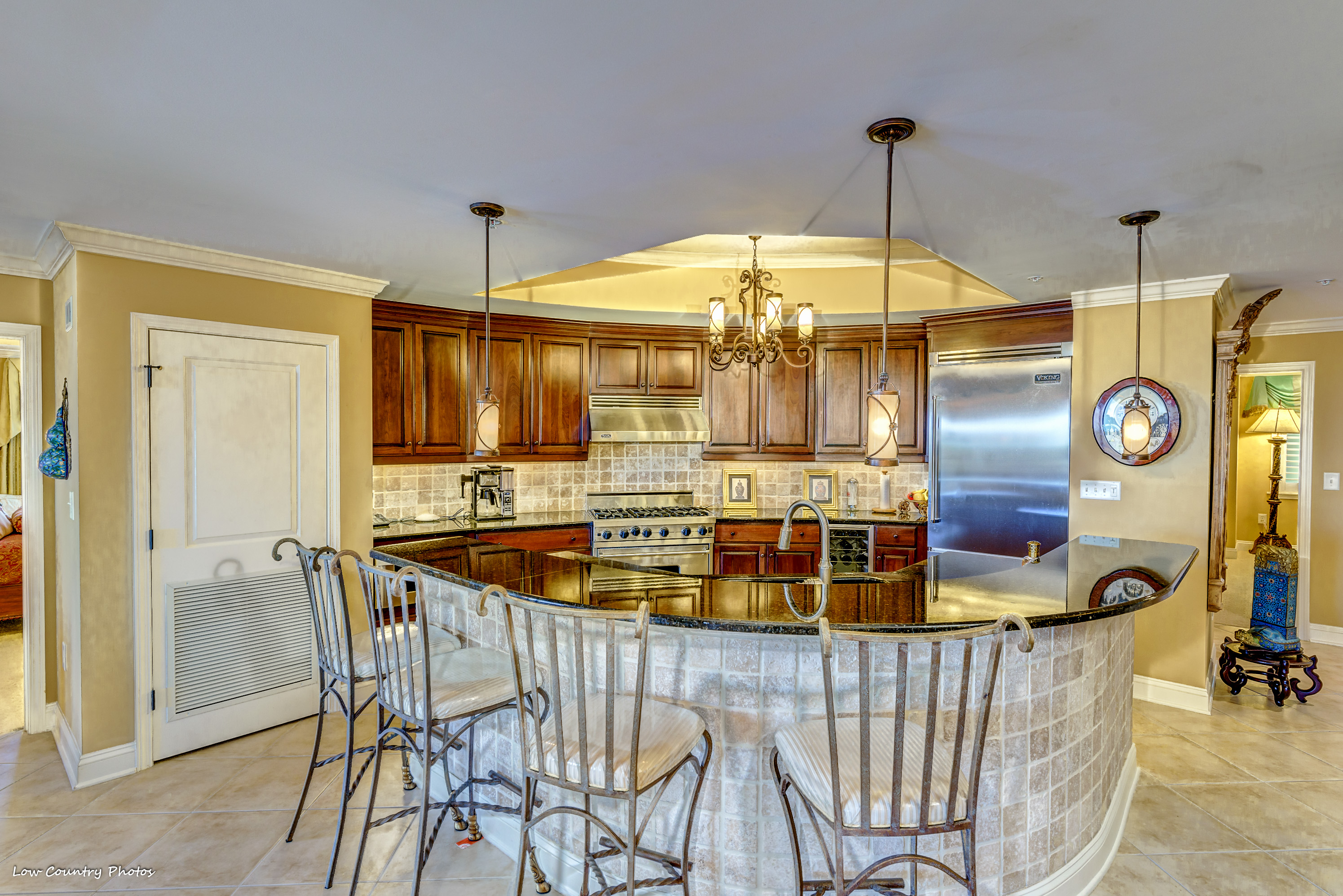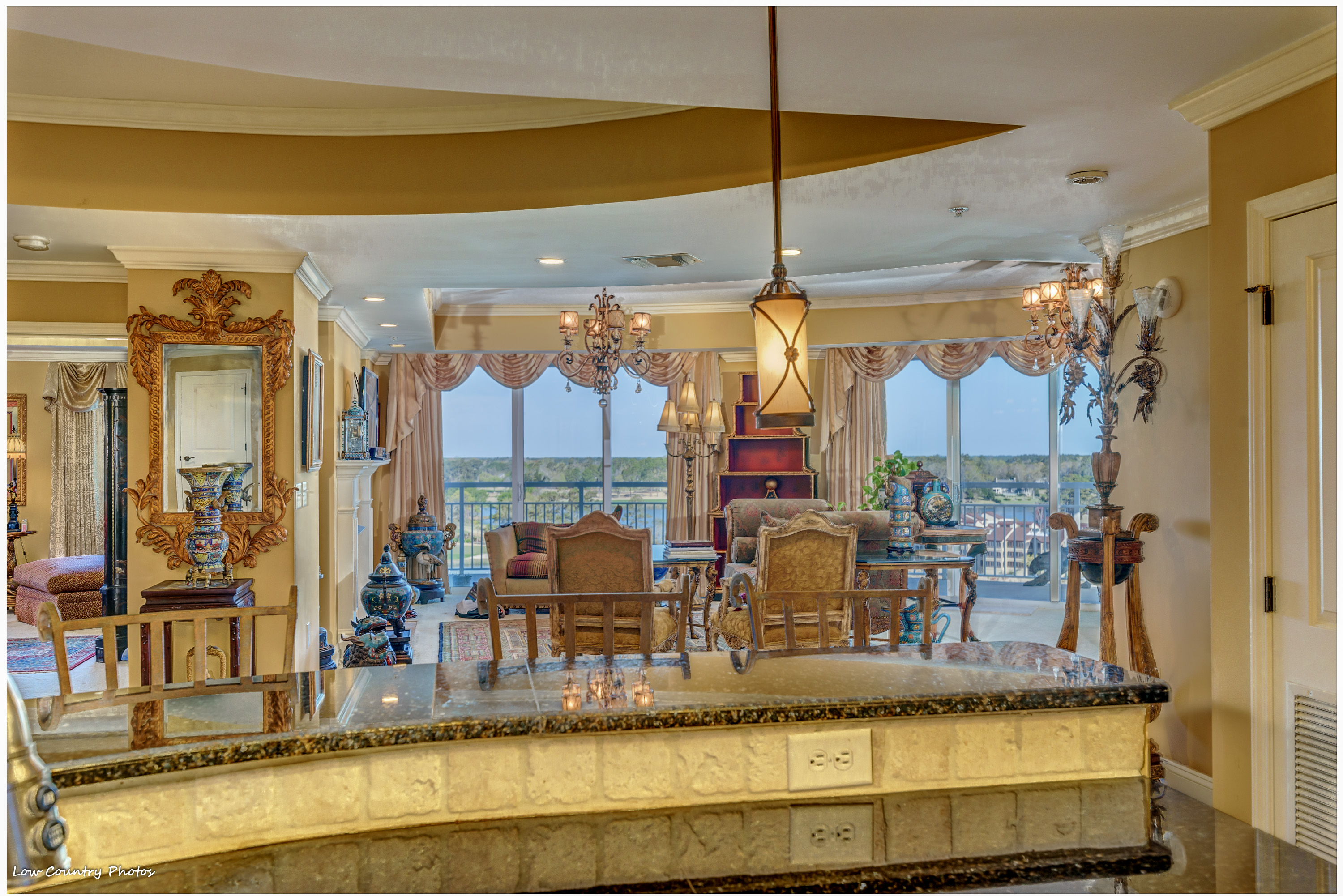 The serene sunrise and sunset views from your home will never get old. Unit 806, with its wrap-around balcony, provides you with unparalleled views of the marsh, golf course, and northern ocean views. With a host of upmarket appointments, this condo has all the requirements of the most discriminating homeowner. The Secure Front Entry Gate and Key-coded lobby entrance not only provides safety but adds a state of elegance comparable to a 5-Star Luxury Resort.