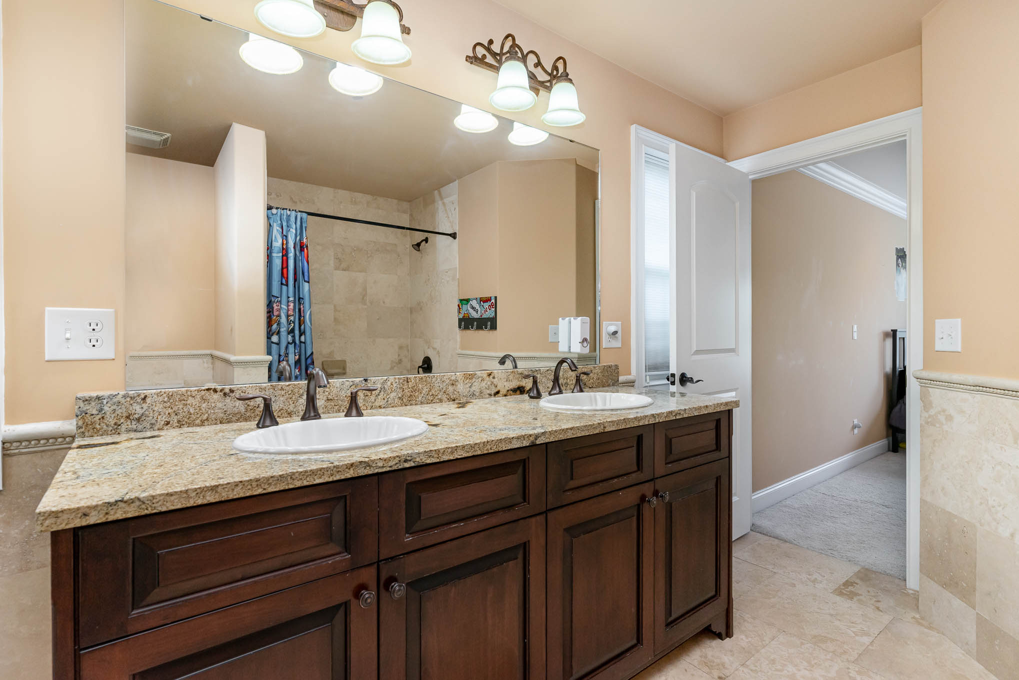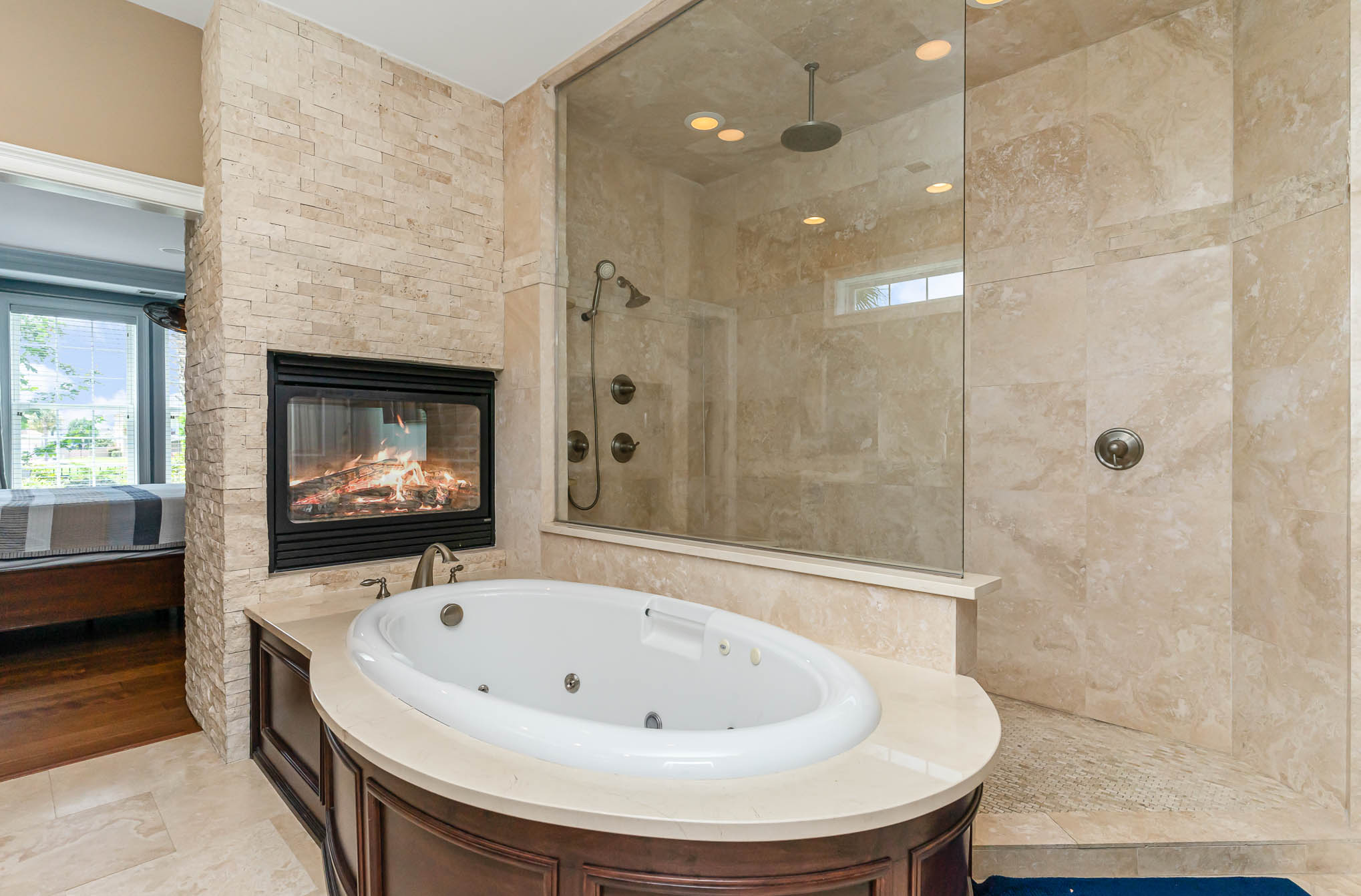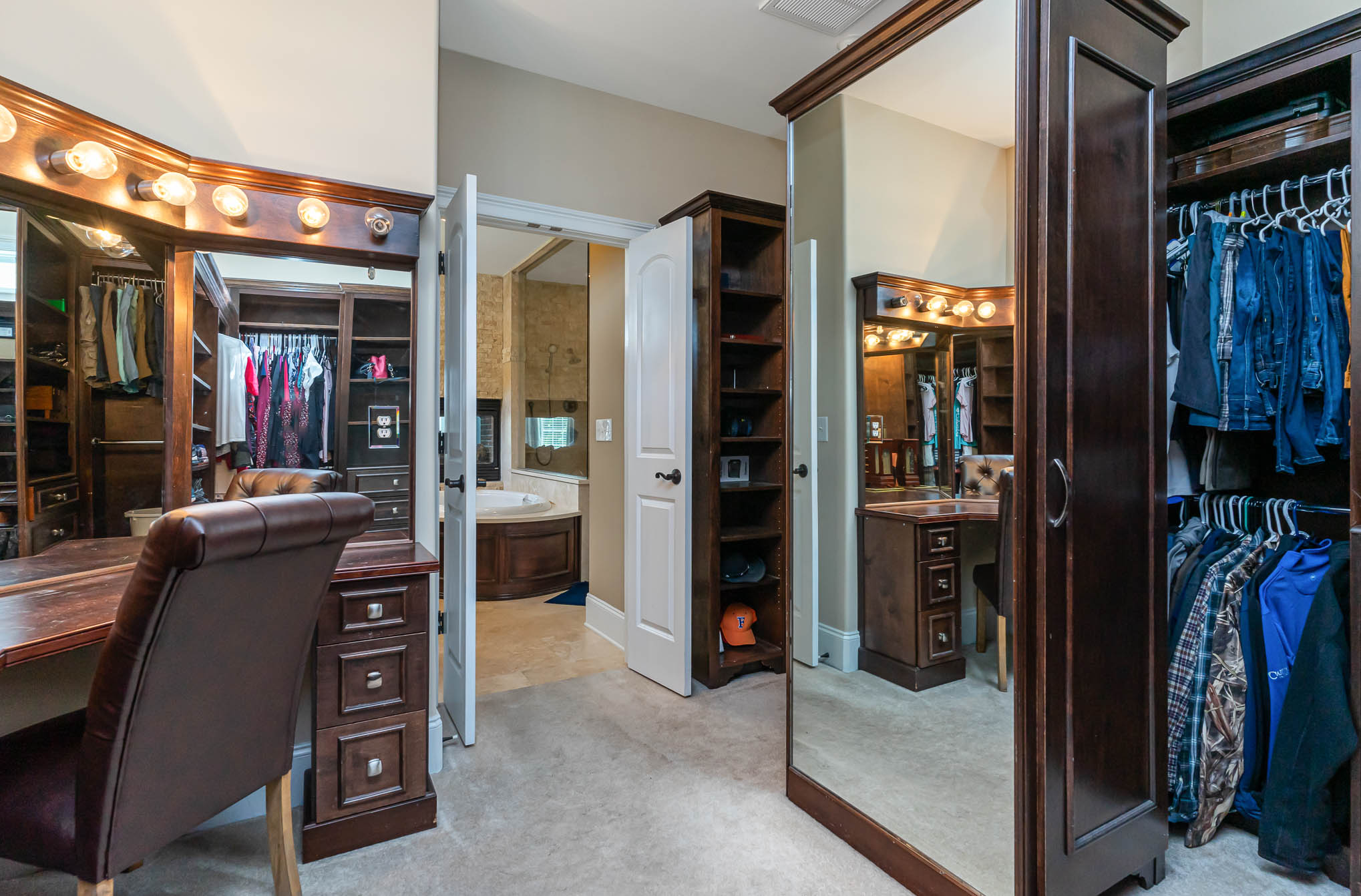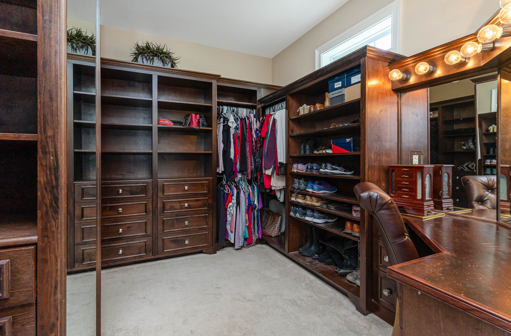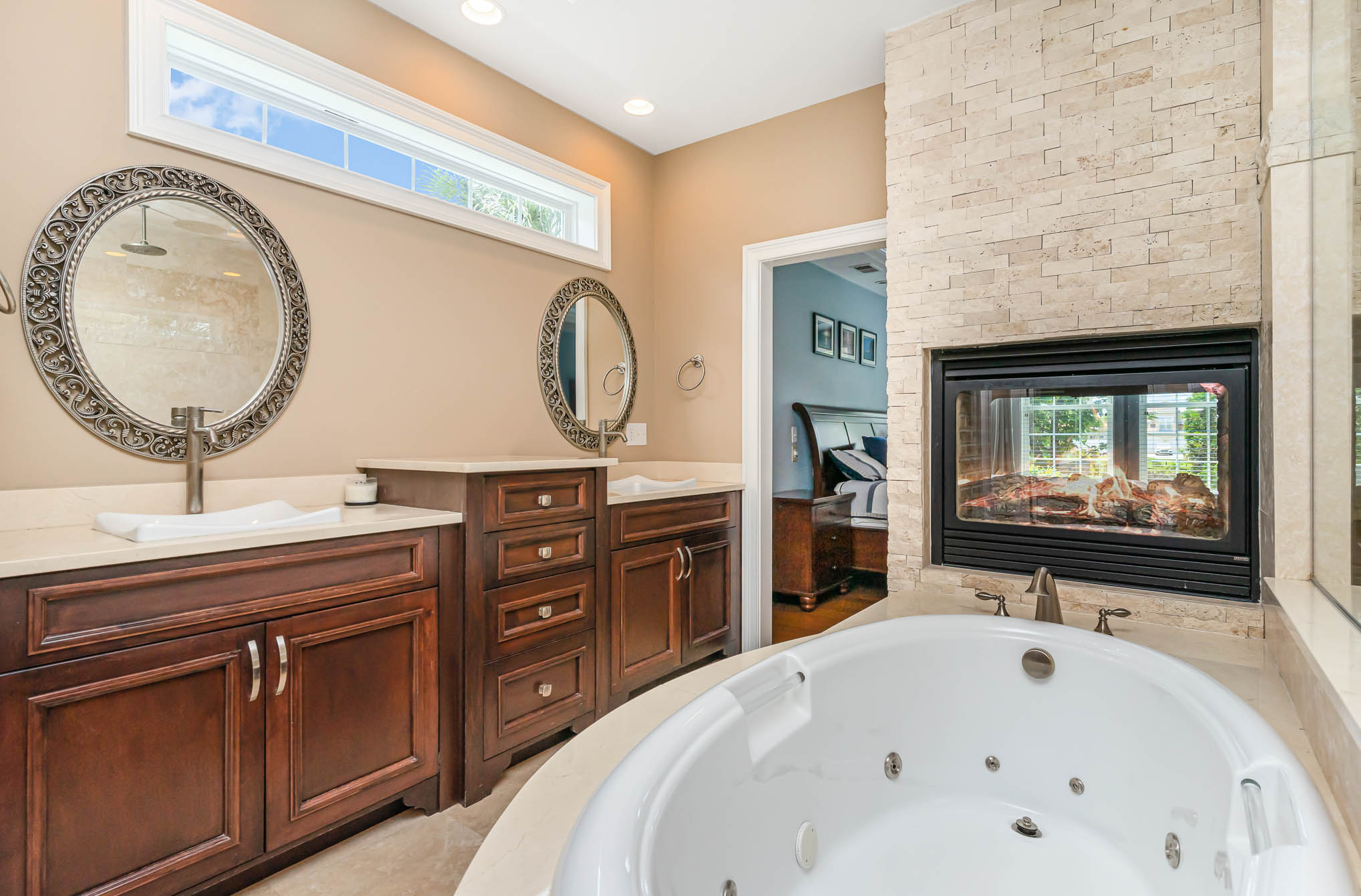 On the main level is a master retreat featuring a double-sided fireplace and en-suite bathroom with floor-to-ceiling travertine in the shower. In addition to vanity space, the master closet has full custom built-in cabinets and drawer space. Rounding out the first floor is a formal dining room and laundry room with a built-in cubby drop-off station.