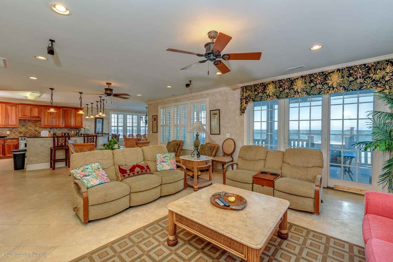 The "Big Kahuna" is located The Peninsula at Inlet Point. The Peninsula is the southernmost community of the Inlet Point communities. With sweeping porches and decks, you have your choice of breathtaking vistas. From the front decks, you have a fantastic creek and marsh view that will complement the tranquil sunsets. The back deck with provide endless hours of oceanfront beauty. The soothing sounds of the ocean waves will provide a much need respite from the rigors of daily life.