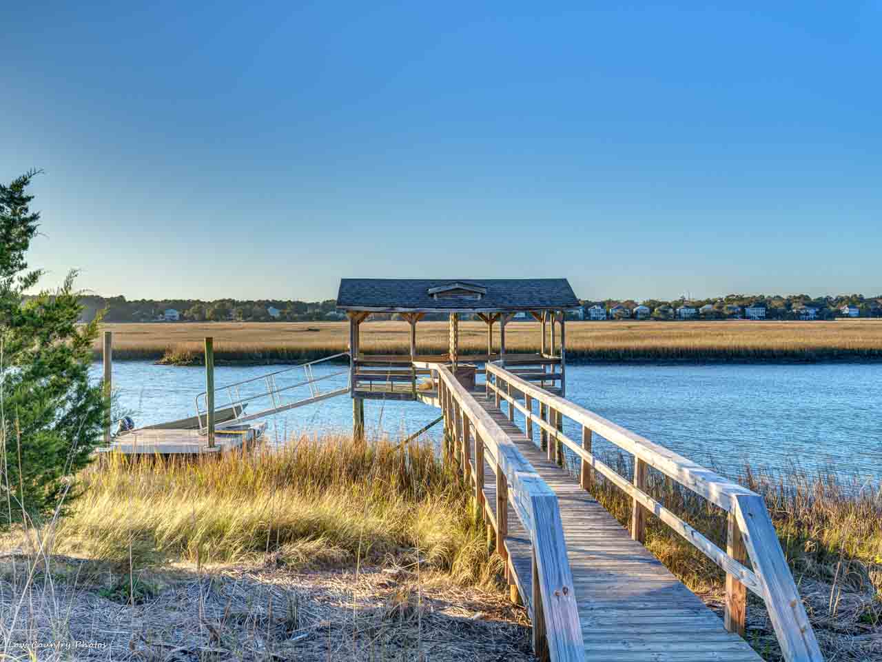 1229 Norris Drive is a sprawling multilevel home with all the upmarket features the most discriminating home buyers have come to expect. The main level consists of two creekside bedrooms both with en-suite bathrooms and porches. The large kitchen, breakfast nook, breakfast bar, and oceanside dining room make this an entertainers paradise. The second level has an additional living area and four more bedrooms all with en-suite bathrooms and porches. The third level is a suite all to its own with a private sun deck and is sure to be one of the favorite spots in the home. In addition to the community boat launch, this house does have a shared floating dock on the inlet.