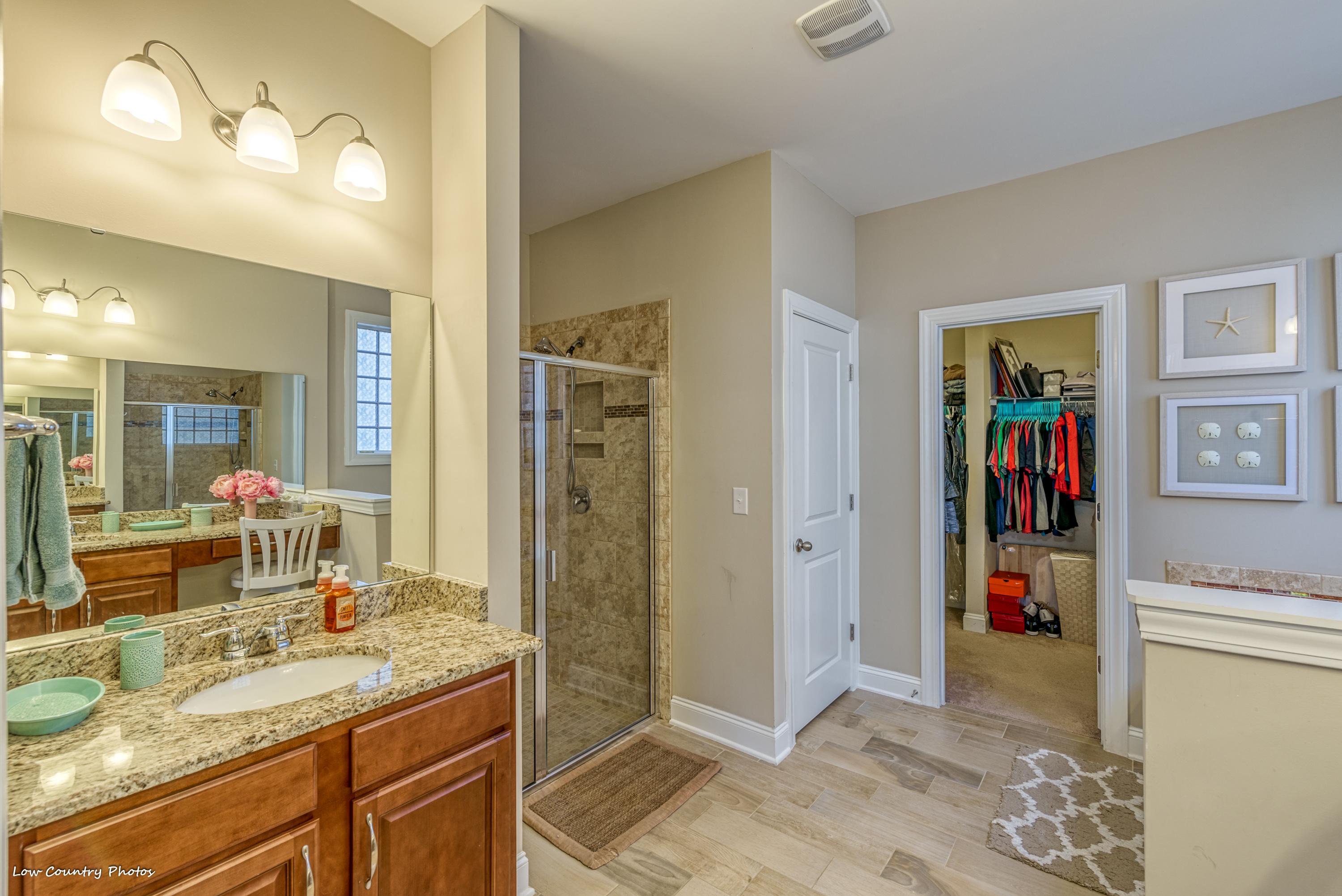 Greeted by wide hallways, high ceilings, and windows at every turn this open floor plan has many desirable upmarket features. The kitchen has a massive work island, walk-in pantry, natural gas range, tile backsplash, and a breakfast bar. A centrally located family room is perfect for entertaining or a quiet evening watching a movie. Flanking the family room is an oversized first-floor master suite with tray ceilings, walk-in closet, double sink, vanity, garden tub, and walk-in shower. A huge screen porch on the back side of the home will provide countless hours of relaxation. Rounding out the main level are two spacious guest bedrooms that share a "Jack & Jill" bathroom. Upstairs you will find two large bedrooms. The bedroom on the front side of the has dormer that is perfect for a desk or separate sitting area. The bedroom on the back side of the home can function as a fifth bedroom, media room, game room, or play area. Both bedrooms have walk-in closets and share a hall bathroom.