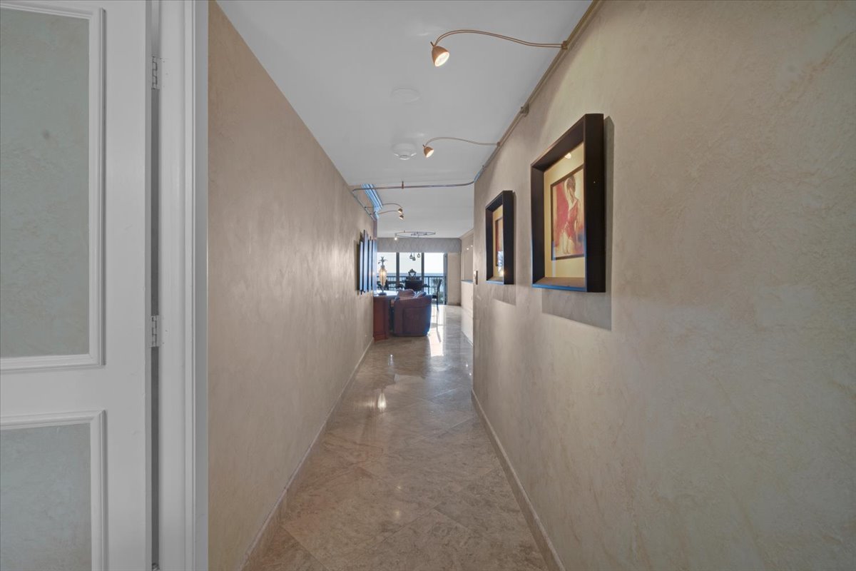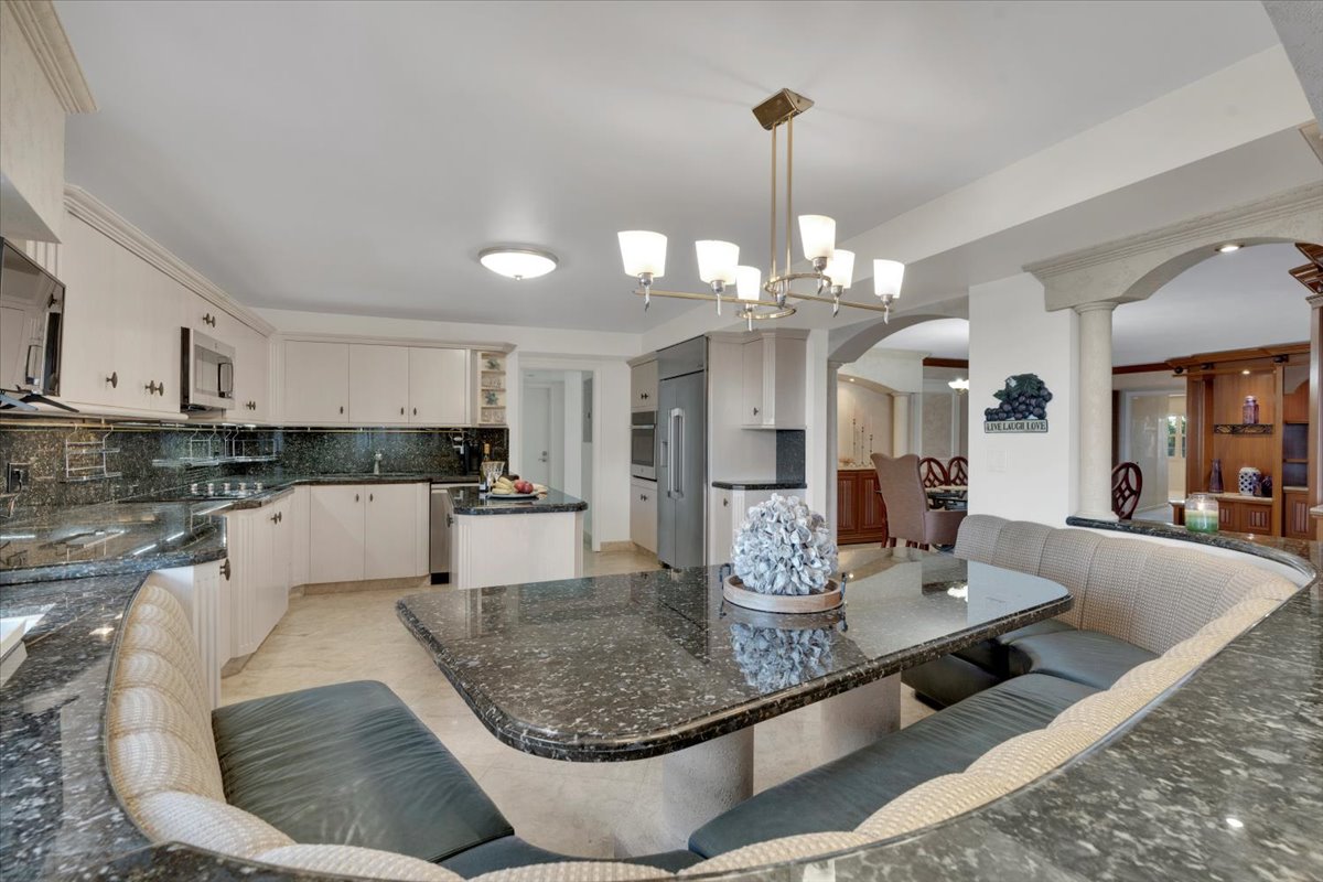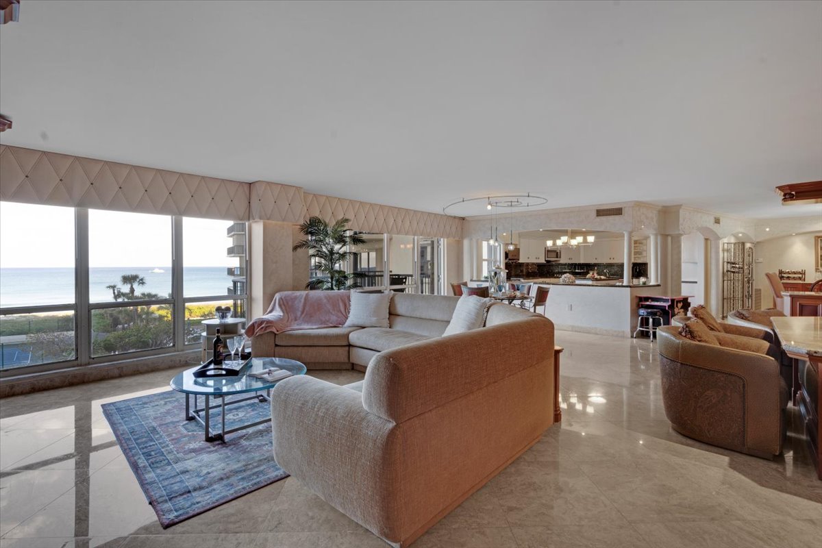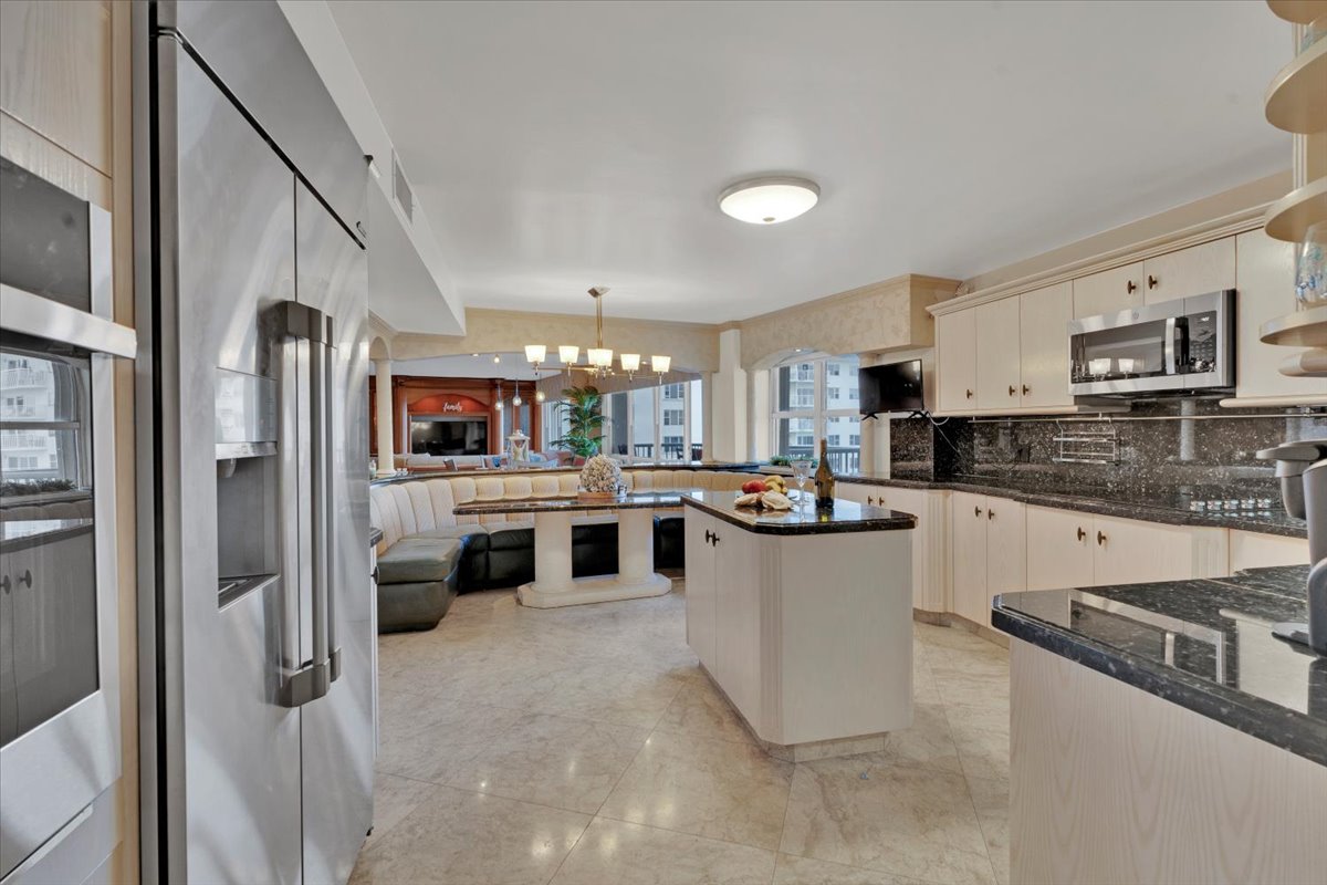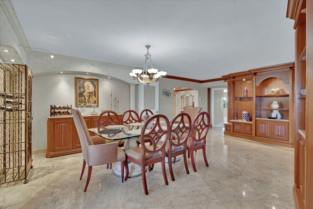 From the moment you step inside, you're greeted with a world of refined comfort. Large open floor plans are adorned with travertine flooring, setting a tone of understated elegance. The property, offered fully furnished, promises an effortless transition to coastal living. Extensive custom woodwork and built-ins throughout the condo highlight the unparalleled craftsmanship that defines every inch of the space. The spacious open kitchen and dining area, complete with built-in bench seating, offer the perfect backdrop for entertaining guests against the view of breathtaking ocean views.