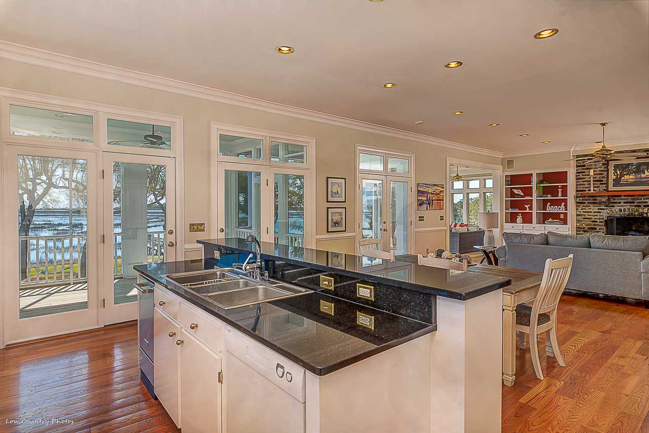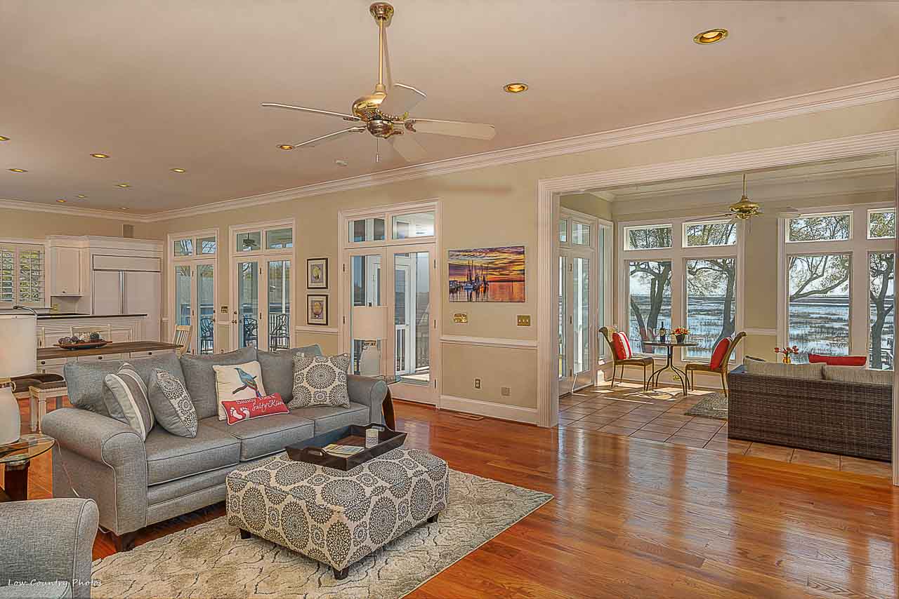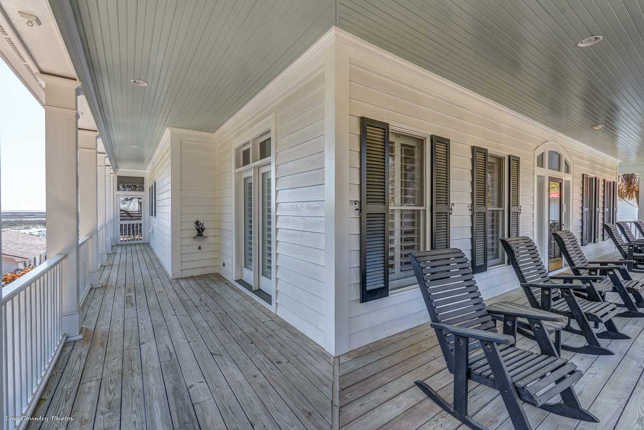 From the moment you enter your eyes become fixated on the breathtaking inlet, channel, and ocean views! These unparalleled views are afforded to you by the wall of glass on the rear side of the home. You will immediately appreciate this light open floor plan that is ideal for entertaining. Conversely, a cozy Carolina Room tucked on the backside of the house and is perfect for a lazy morning or an evening beverage. Beautiful hardwood flooring runs throughout the kitchen, dining, and central living space. Some of the kitchen features are granite counters, Sub-Zero refrigerator, double ovens, wine cooler, ice maker, and cooktop. The living area is accented by an amazing brick fireplace that was crafted from the brick of the original home that was formerly located on the property. Rounding out the main living area are two guest bedrooms with hardwood floors, private baths, and plantation shutters. Additionally, both guest bedrooms have doors leading to the wrap around porches.