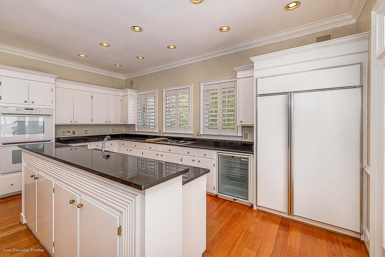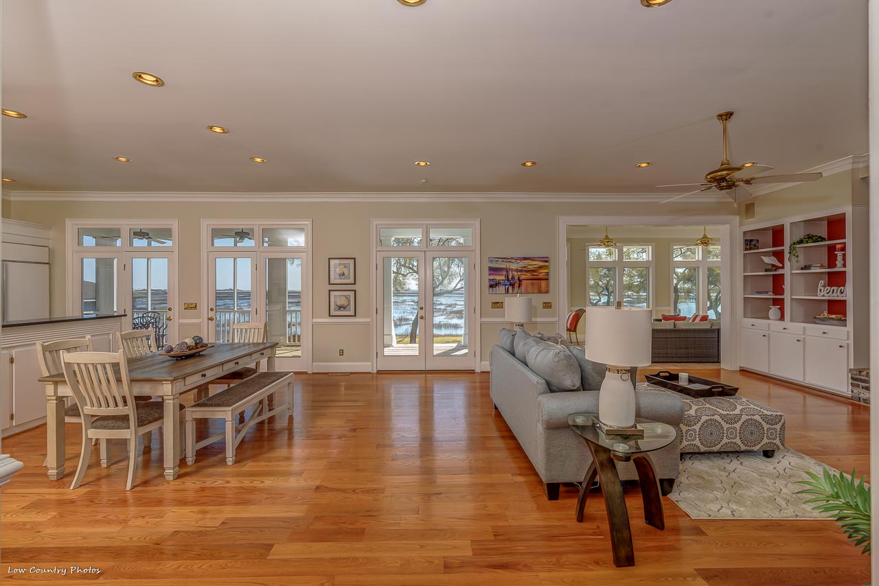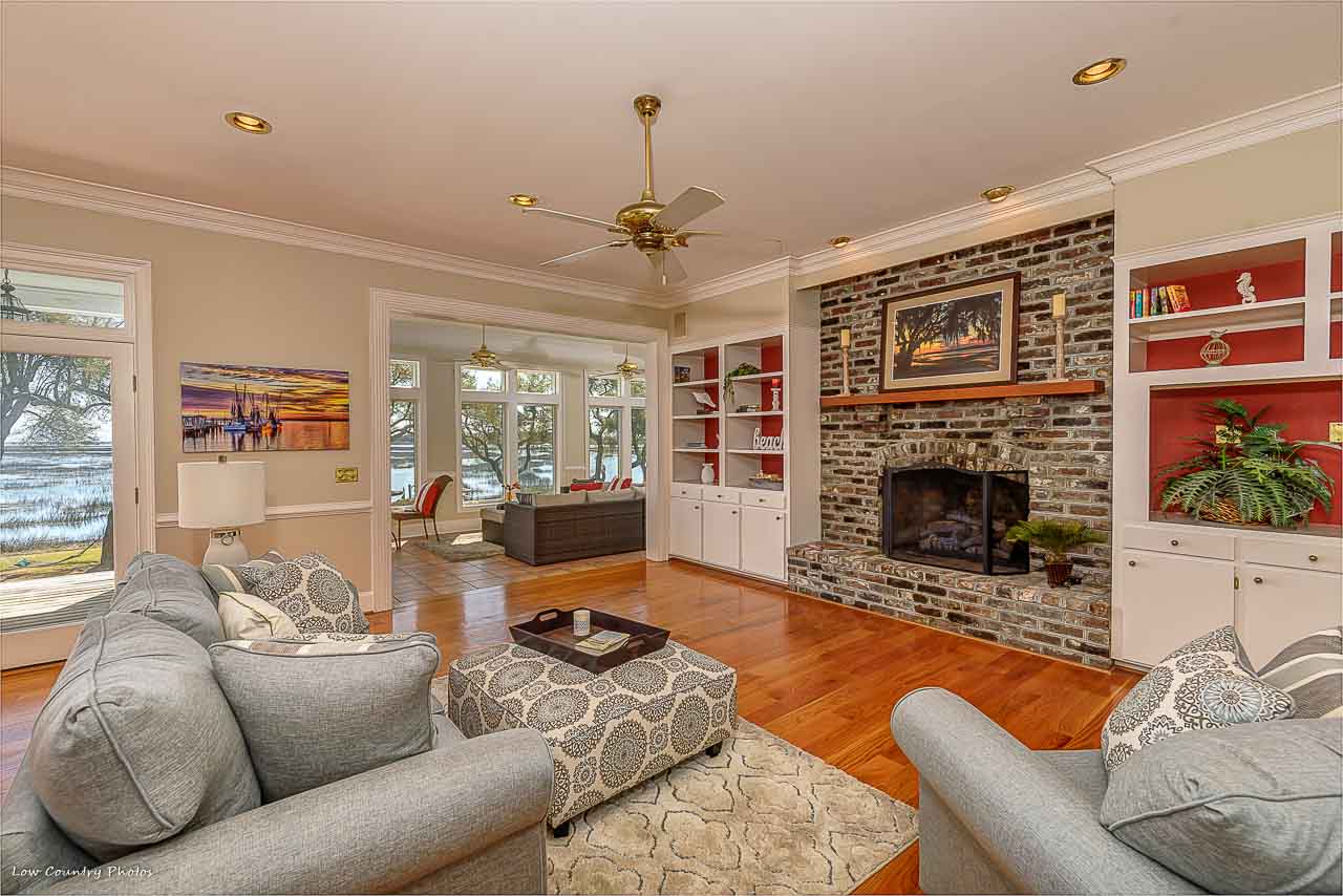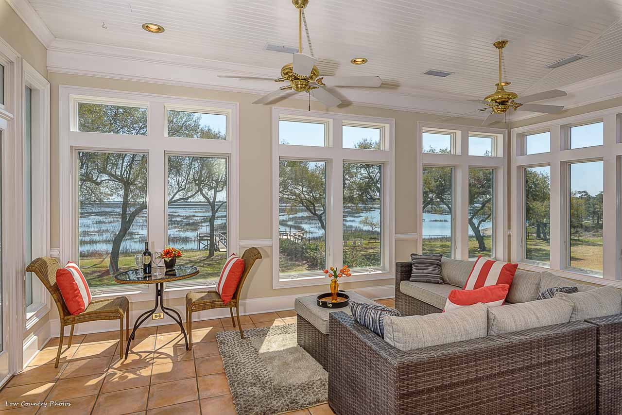 From the moment you enter your eyes become fixated on the breathtaking inlet, channel, and ocean views! These unparalleled views are afforded to you by the wall of glass on the rear side of the home. You will immediately appreciate this light open floor plan that is ideal for entertaining. Conversely, a cozy Carolina Room tucked on the backside of the house and is perfect for a lazy morning or an evening beverage. Beautiful hardwood flooring runs throughout the kitchen, dining, and central living space. Some of the kitchen features are granite counters, Sub-Zero refrigerator, double ovens, wine cooler, ice maker, and cooktop. The living area is accented by an amazing brick fireplace that was crafted from the brick of the original home that was formerly located on the property. Rounding out the main living area are two guest bedrooms with hardwood floors, private baths, and plantation shutters. Additionally, both guest bedrooms have doors leading to the wrap around porches.