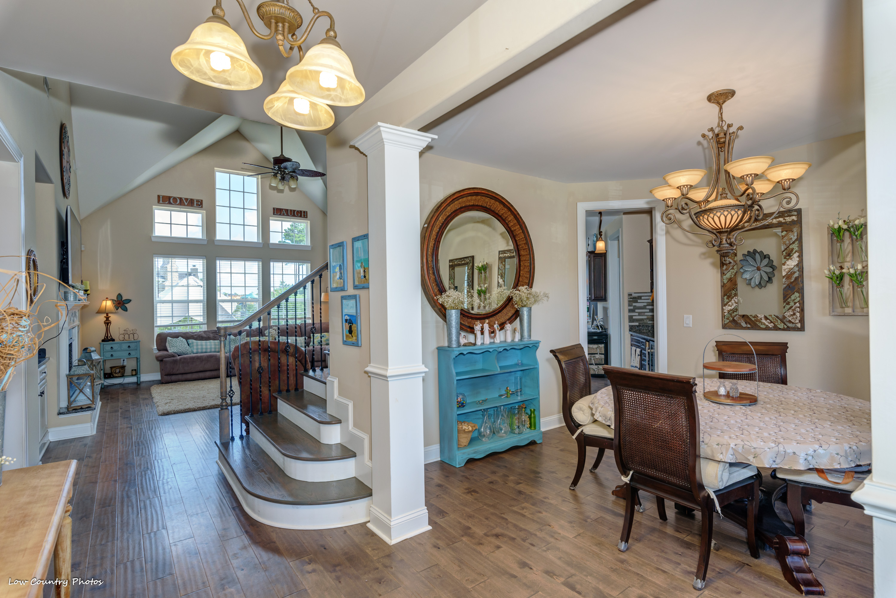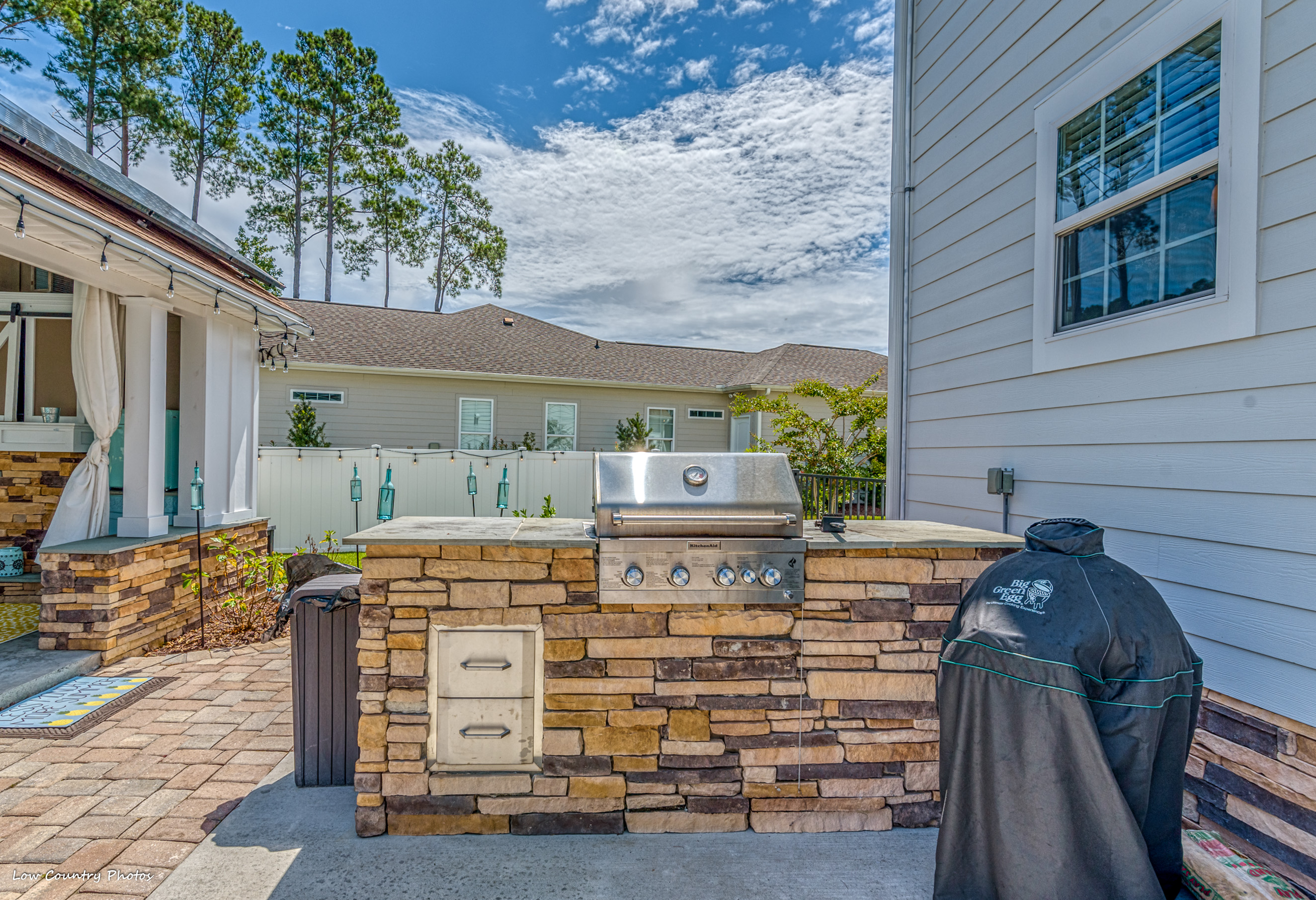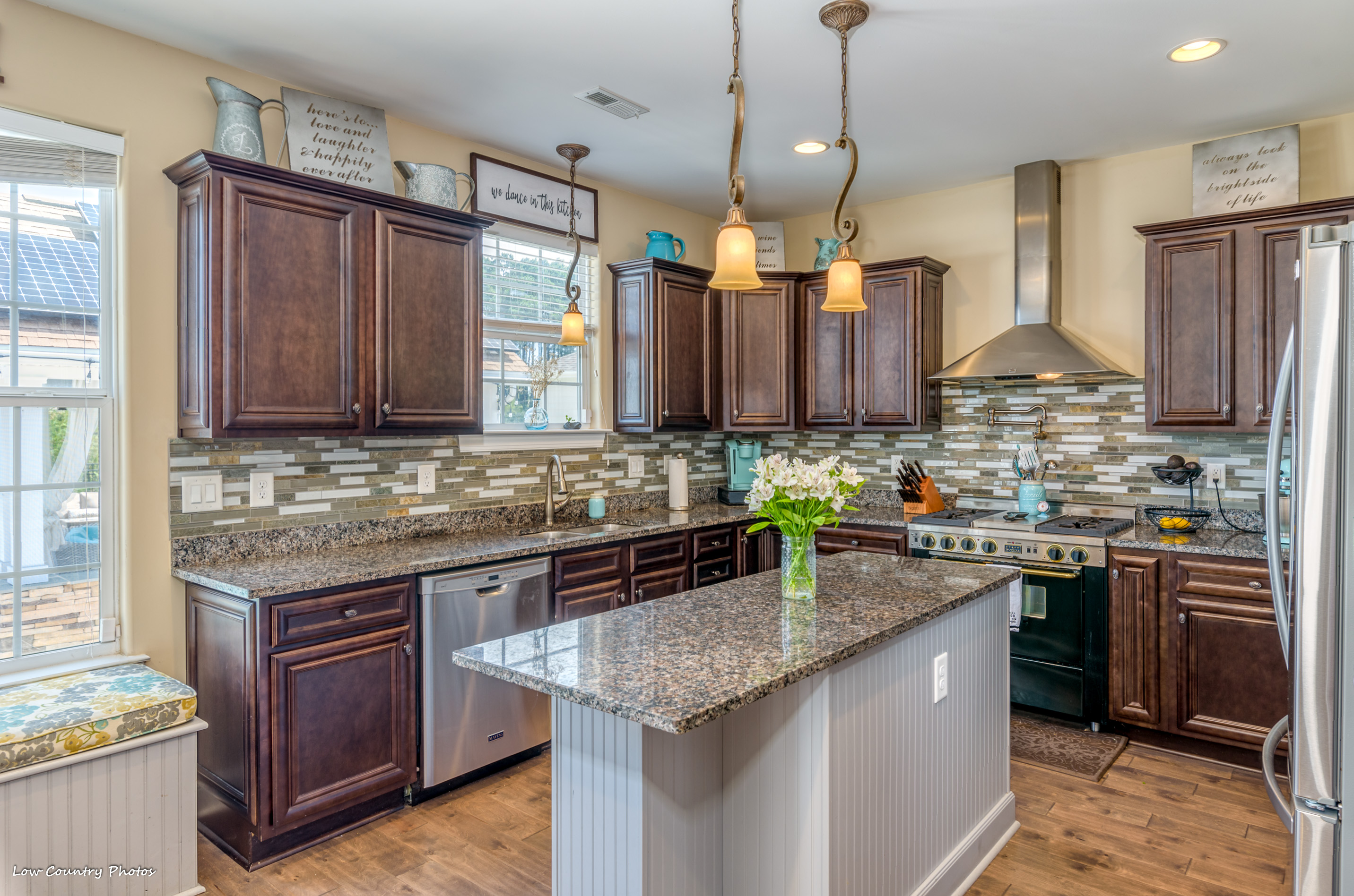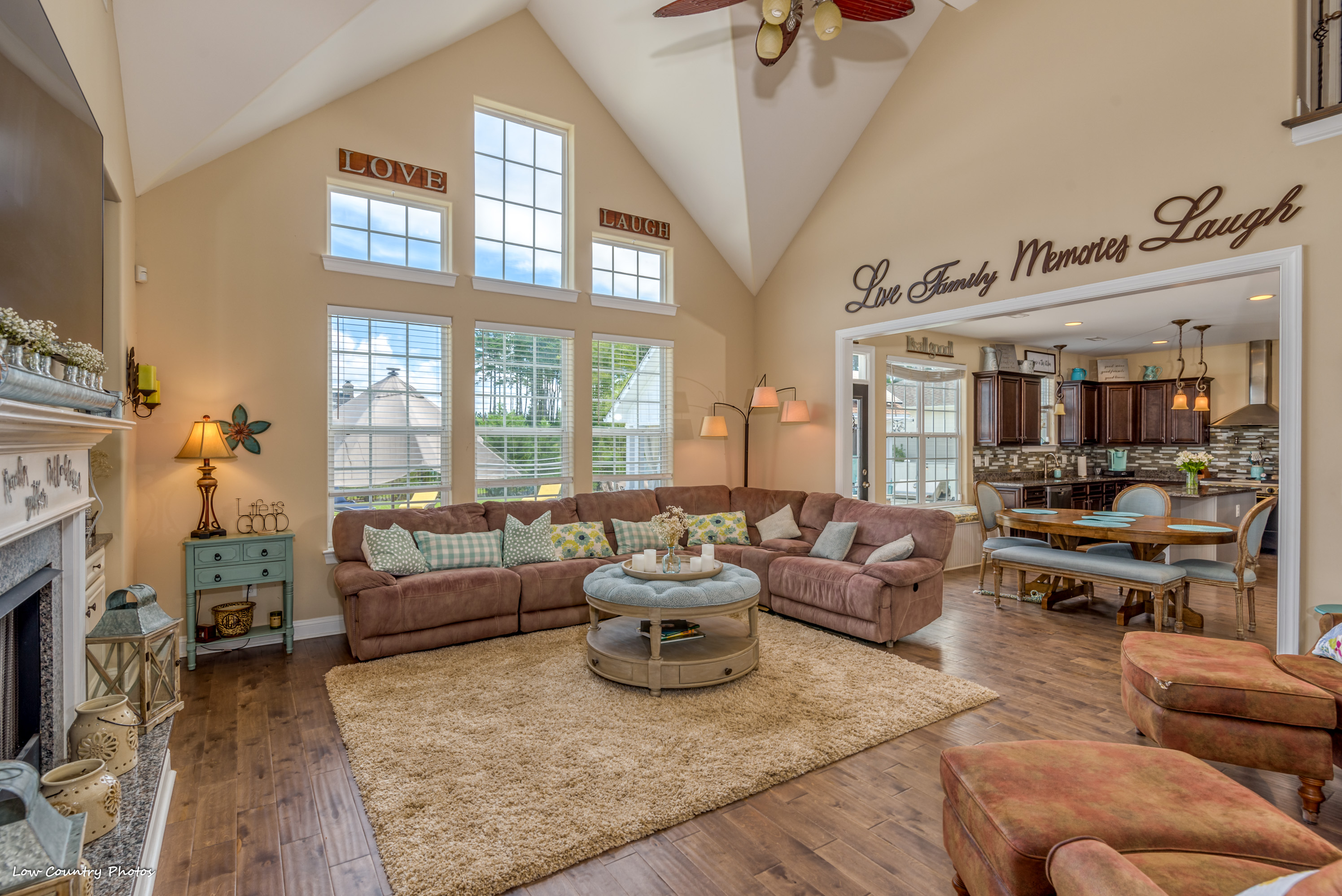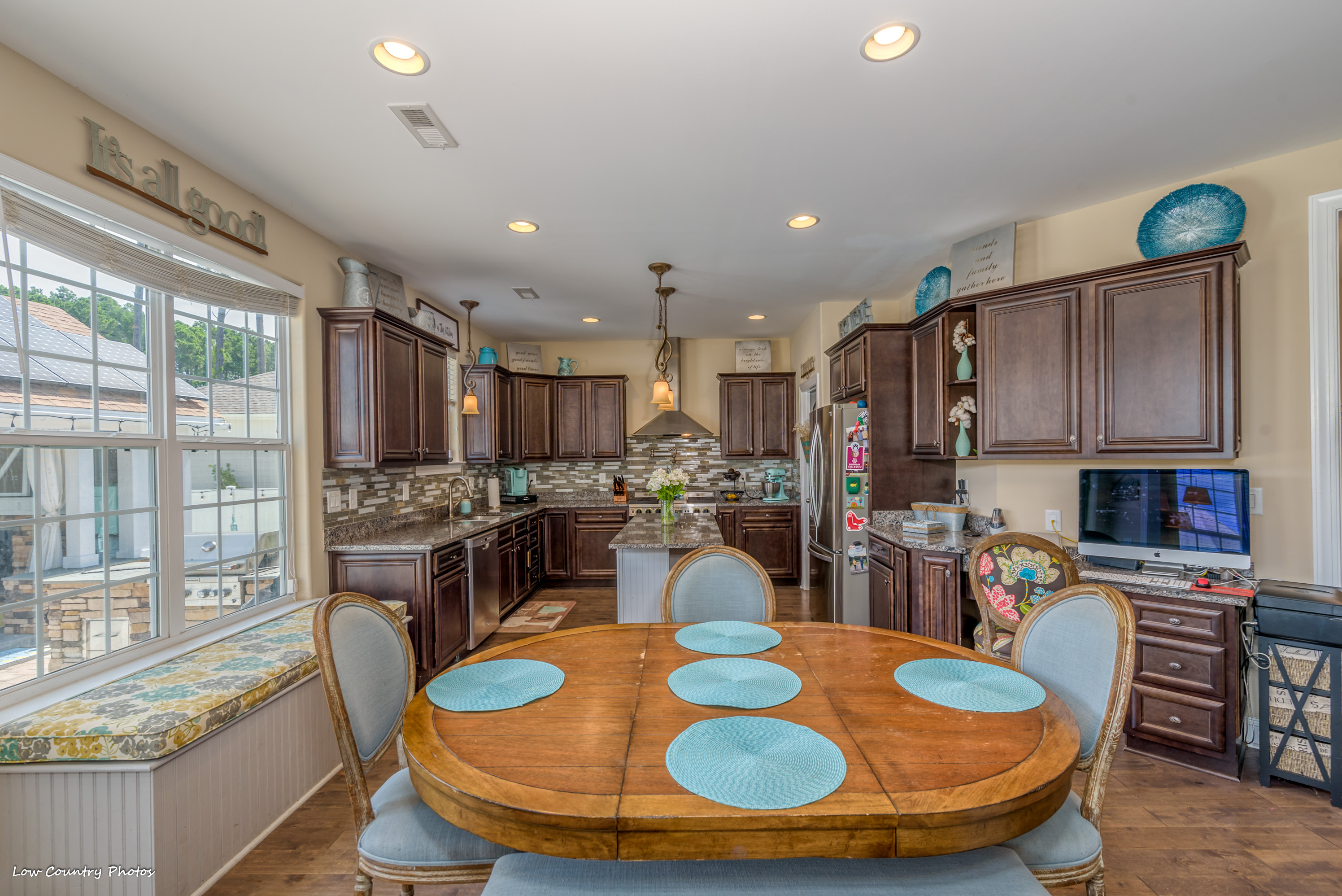 Only four years young, this modified Frank Betz floor plan is the epitome of coastal living. From the southern front porch to the poolside cabana and everything in between, the rest of your life is waiting for you at 3945 Lark Hill Drive.