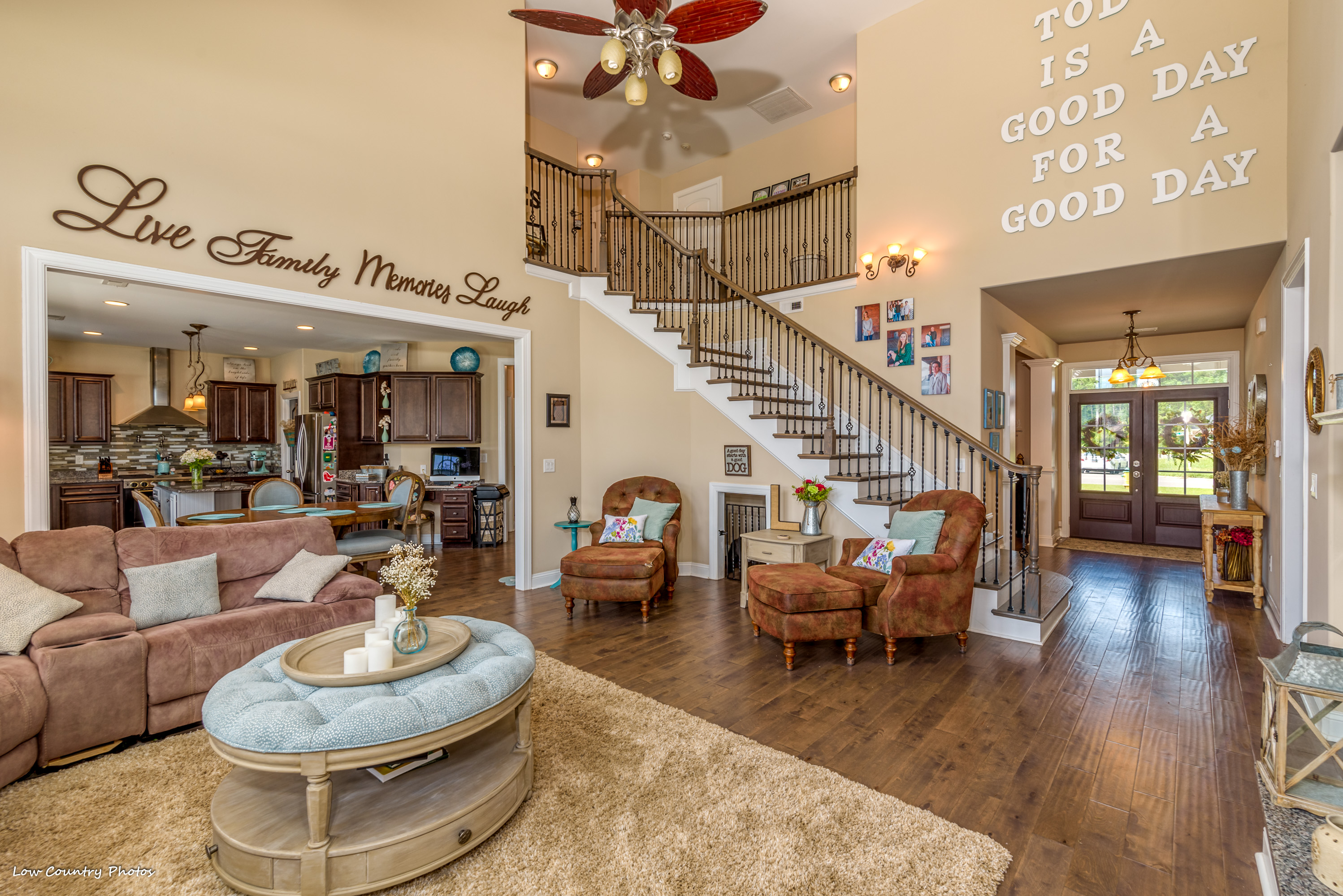 Just through the double door entry is a massive two-story great room. This gathering area, positioned perfectly off a spacious kitchen, will be the center of many memories yet to come. The work island accents the kitchen and large breakfast nook. A butler pantry will provide a staging area for dinner parties or a beverage center for informal gatherings. Conveniently located adjacent to the kitchen and connected by the butler pantry is a large traditional dining room.