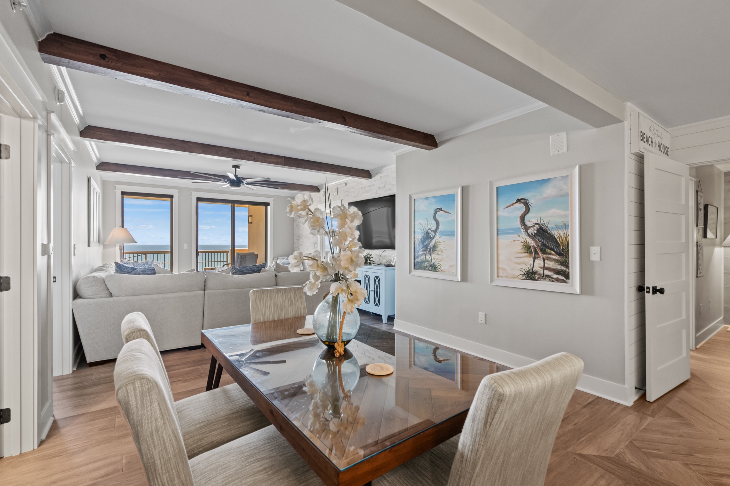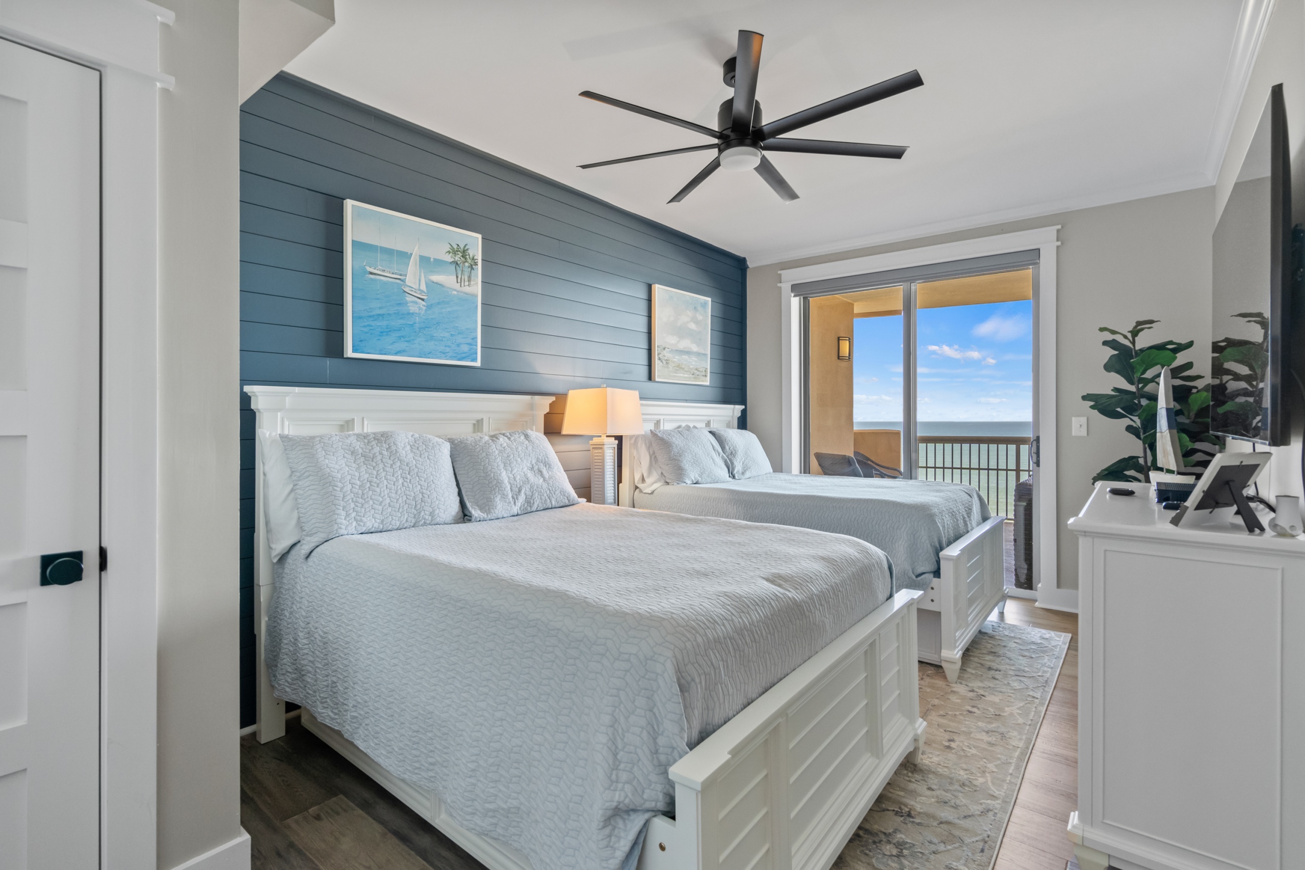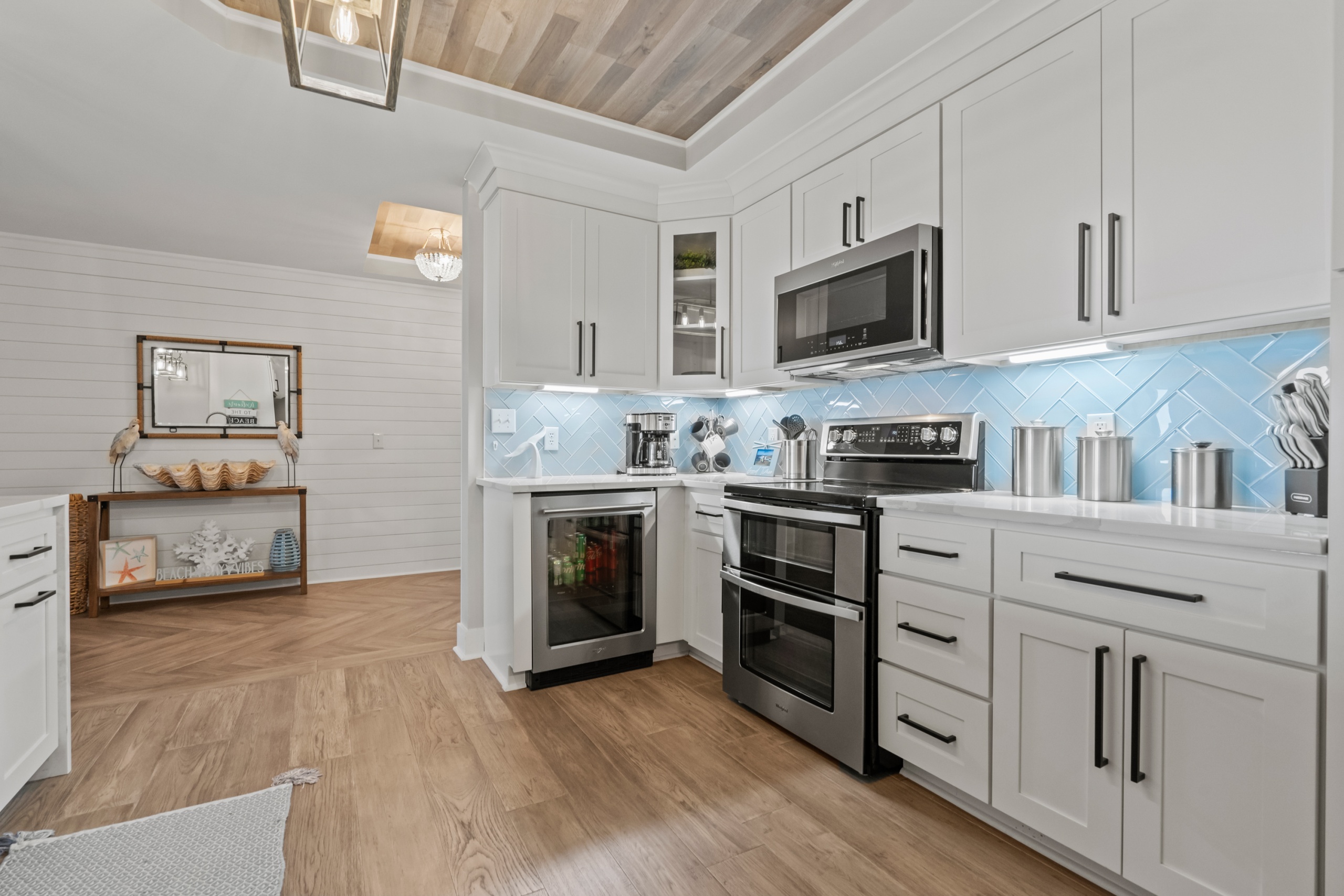 Every detail has been considered, from new electrical and plumbing features to Woodtrac shelving in the closets. The home also comes equipped with brand-new, top-tier appliances and wall-mounted TVs in each room. The condo is fully furnished with new furniture, including the patio set, and it's all tastefully accented by freshly painted walls, added shiplap, and faux beams in the living rooms.