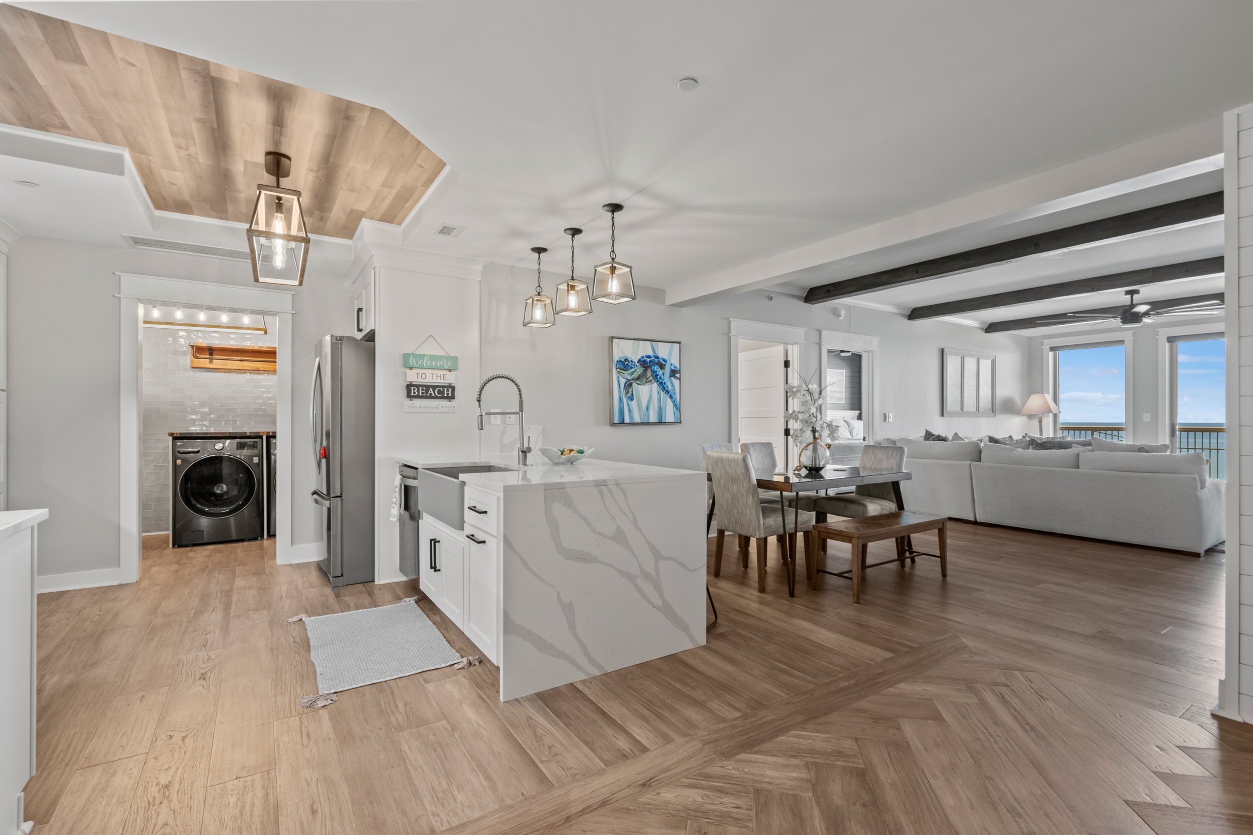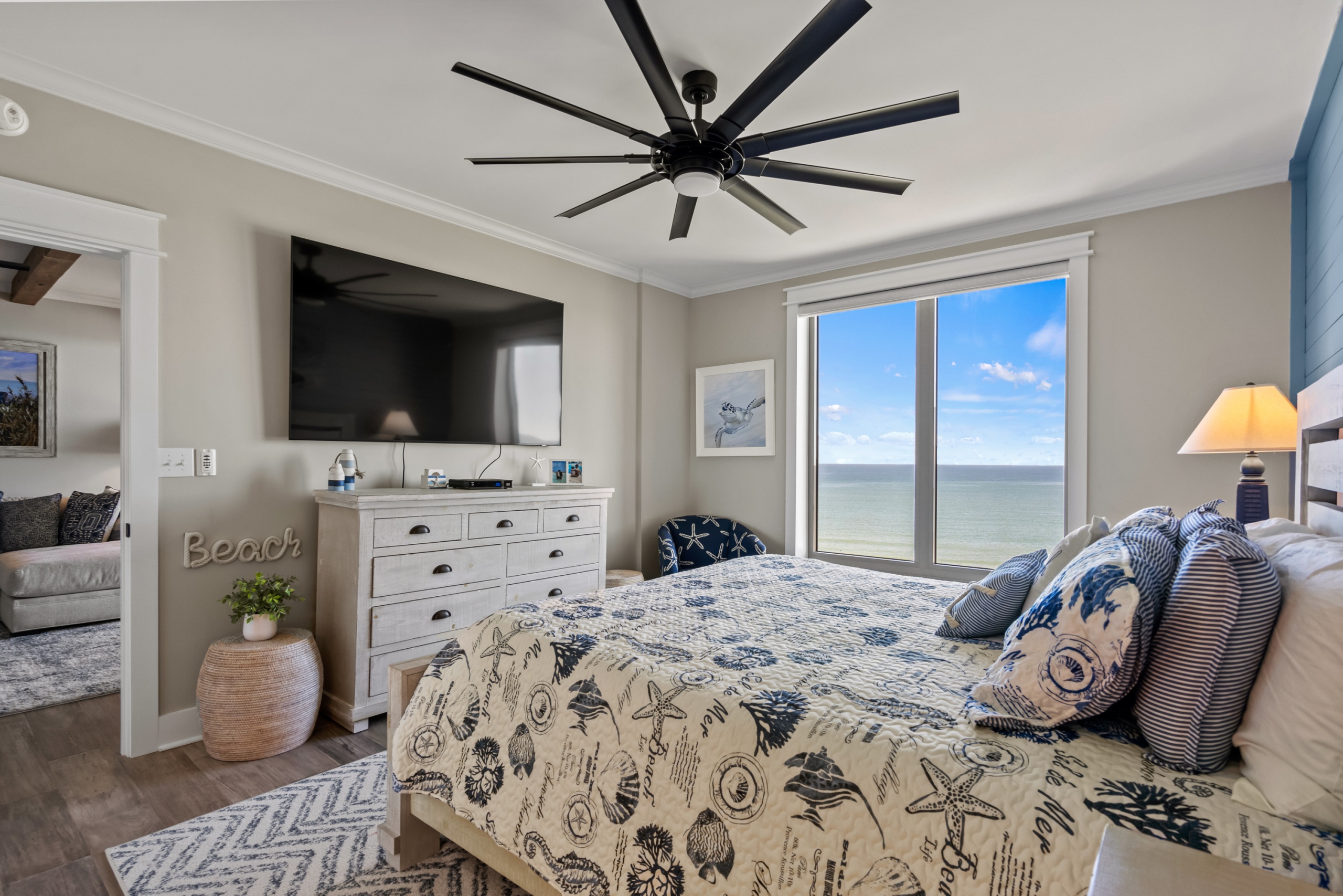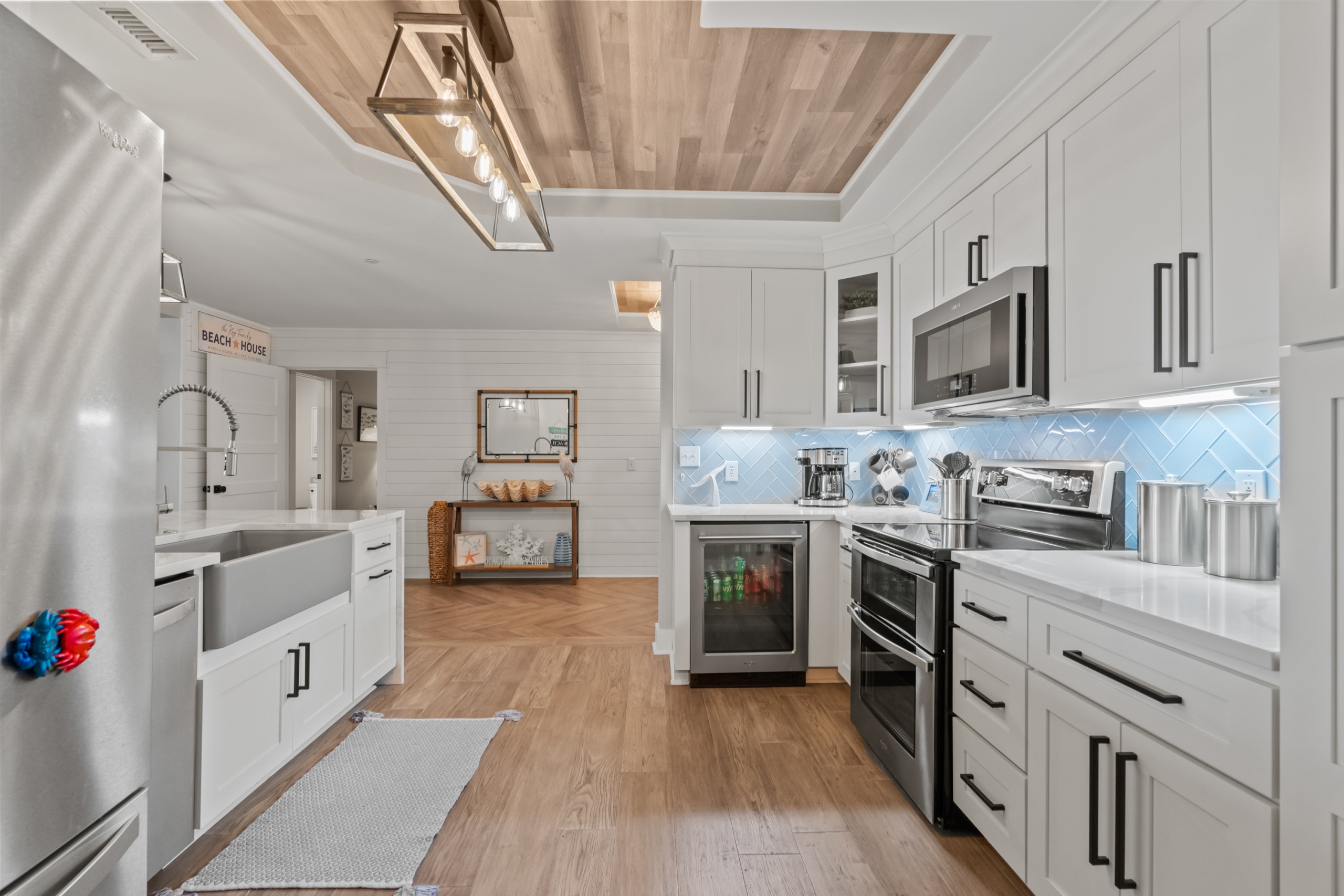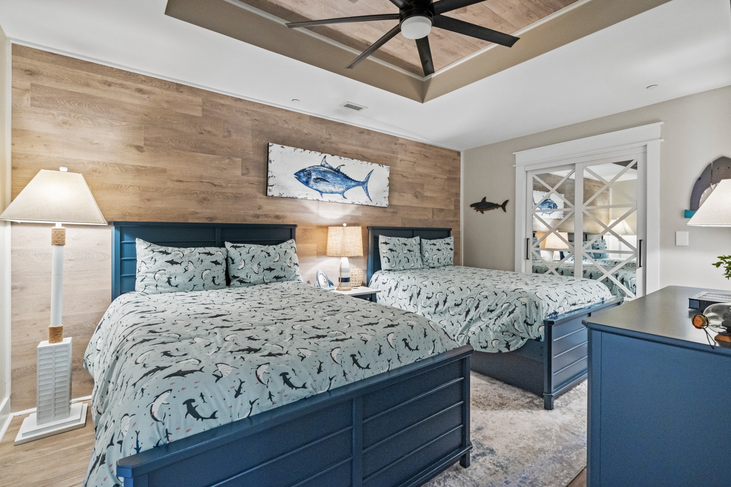 Every detail has been considered, from new electrical and plumbing features to Woodtrac shelving in the closets. The home also comes equipped with brand-new, top-tier appliances and wall-mounted TVs in each room. The condo is fully furnished with new furniture, including the patio set, and it's all tastefully accented by freshly painted walls, added shiplap, and faux beams in the living rooms.