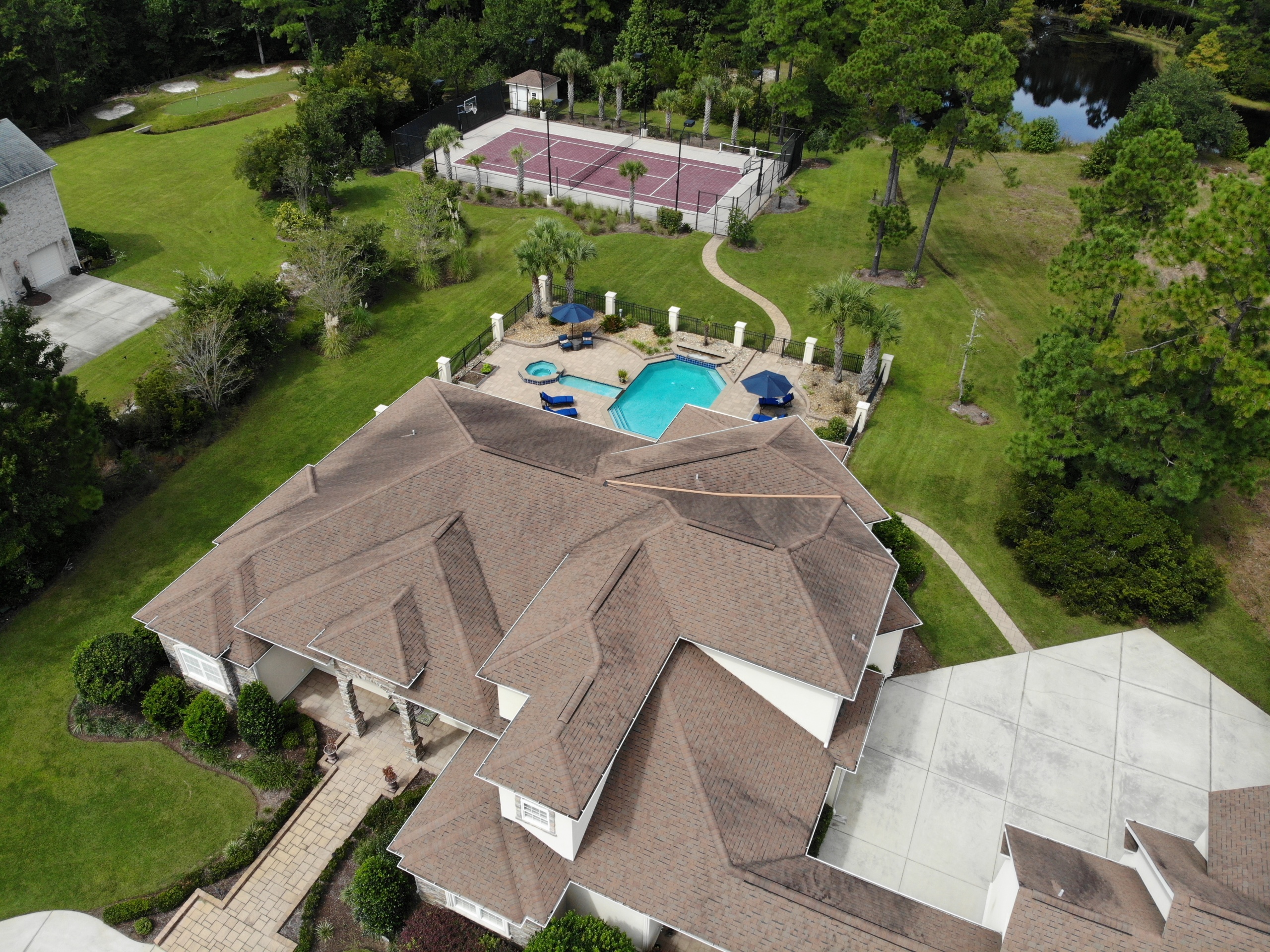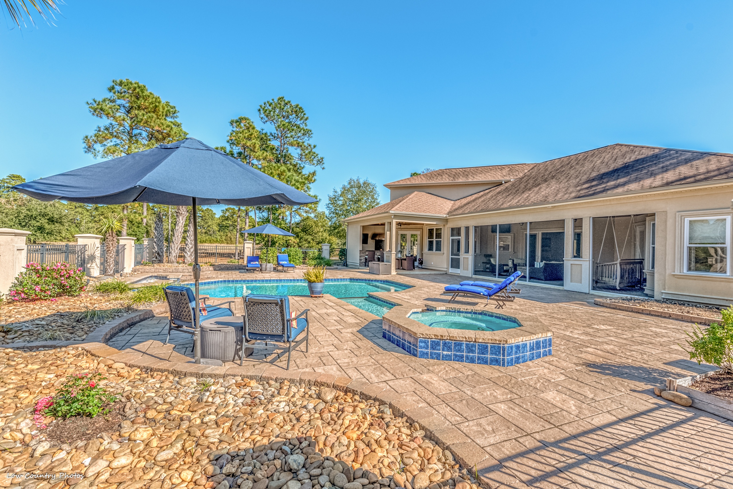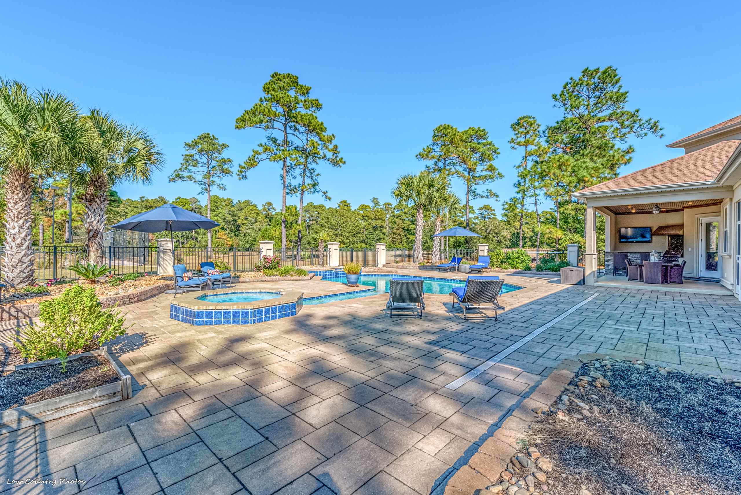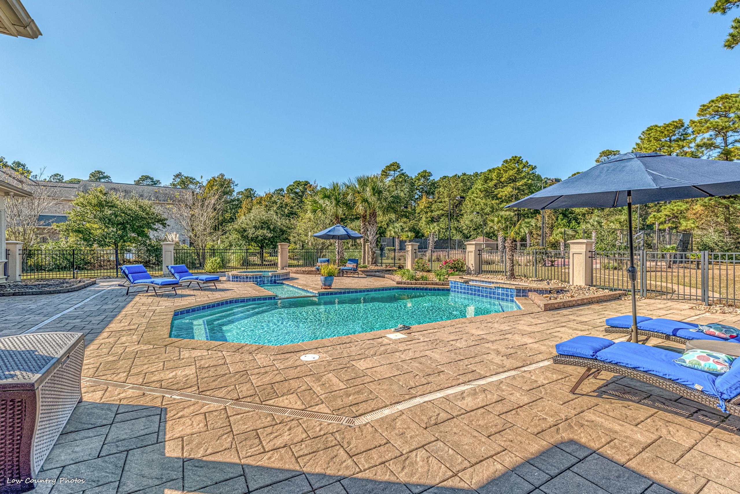 The angled three-bay garage is attached to the home with a breezeway. Above the garage are separate living quarters perfect for a home office, live-in Aupair, or an adult child living at home. Once you step outside, you feel like you are in a private resort. The pool, lush landscaping, and sports court will make your everyday feel like a vacation day. This luxury home has it all and is only a short 3.7-mile drive to the vast sandy white beaches that have made Myrtle Beach World Famous. The life you deserve is waiting for you at 115 Redwolf Trail.