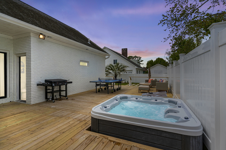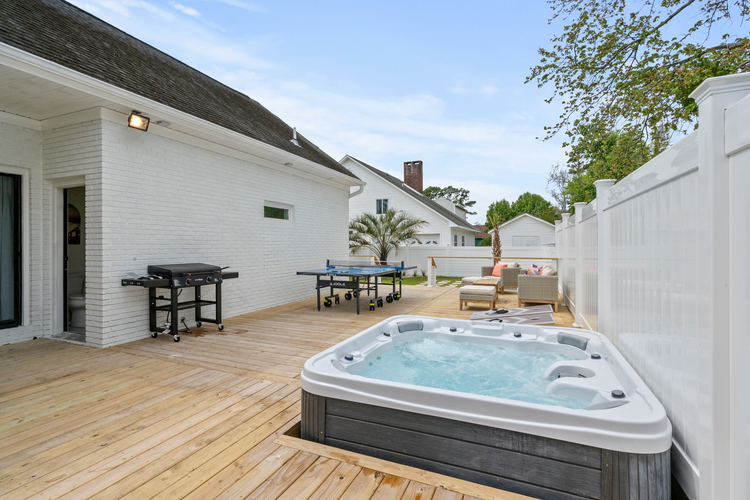 The exterior of the home has been equally transformed to maximize your enjoyment of the coastal climate. A larger wraparound deck, perfect for hosting gatherings, now features a hot tub for ultimate relaxation. The newly added driveway offers ample parking, while the fully redone backyard includes new fencing, providing both privacy and a safe space for pets or children.