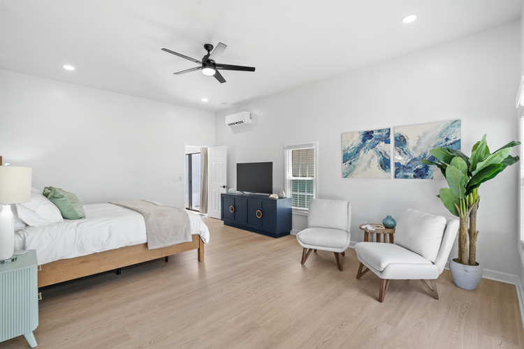 The 2024 renovation introduced a 450 square-foot addition, transforming this home into a spacious retreat. The new master bedroom features an en suite bathroom and a generous closet, providing a private oasis within your home. Modern conveniences abound, including a Bosch three-way mini split system for efficient heating and cooling, a brand new half bath, and a completely remodeled upstairs bathroom.
